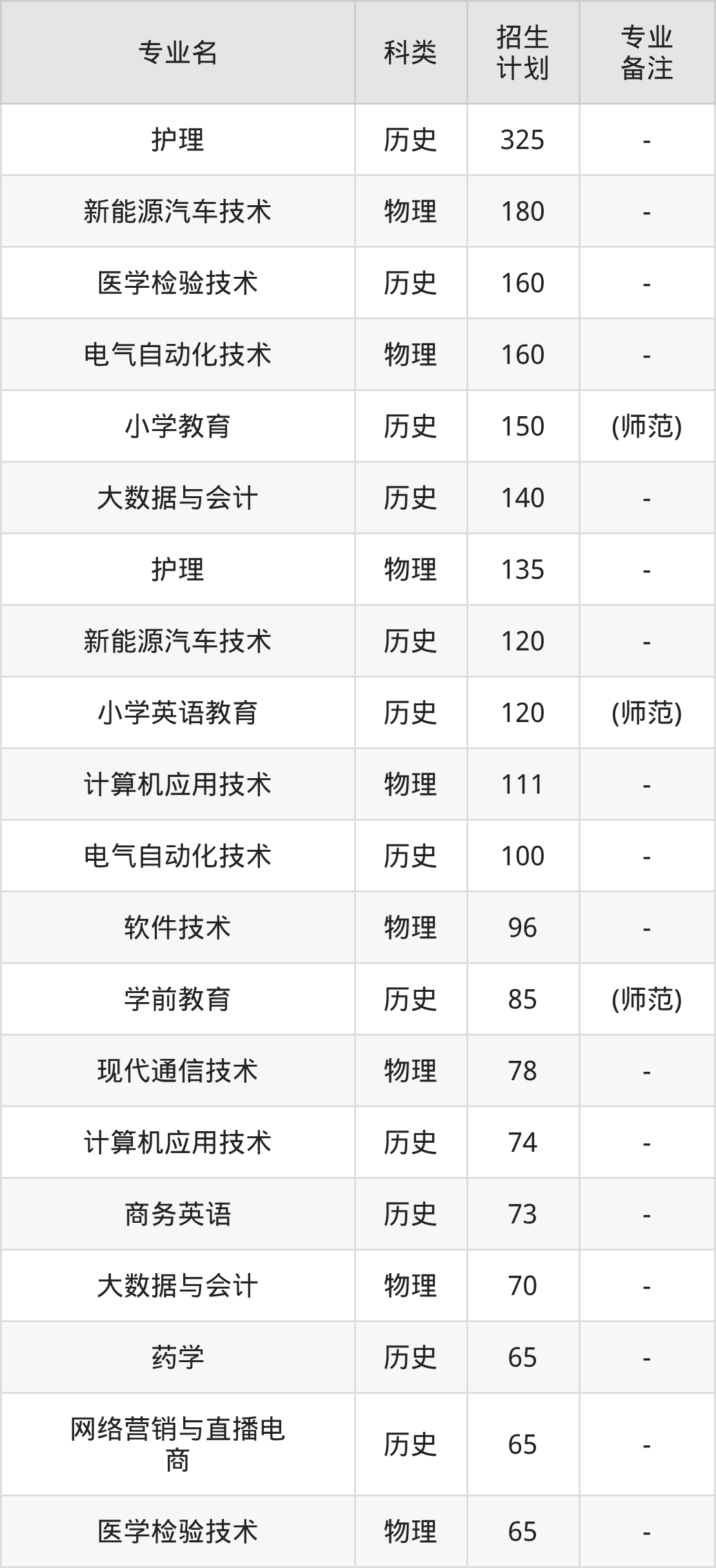 第二名:广东(251人),招生人数最多的专业是医疗器械维护与管理(20人、历史类)。