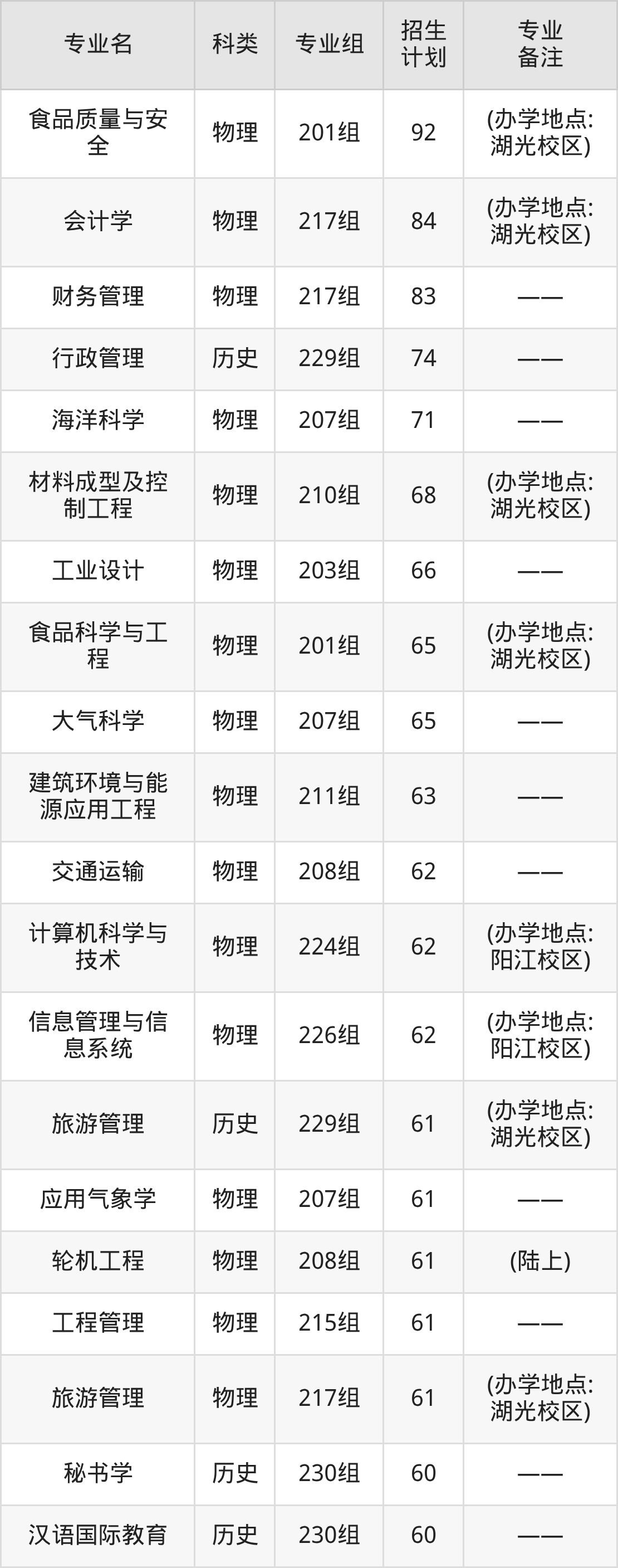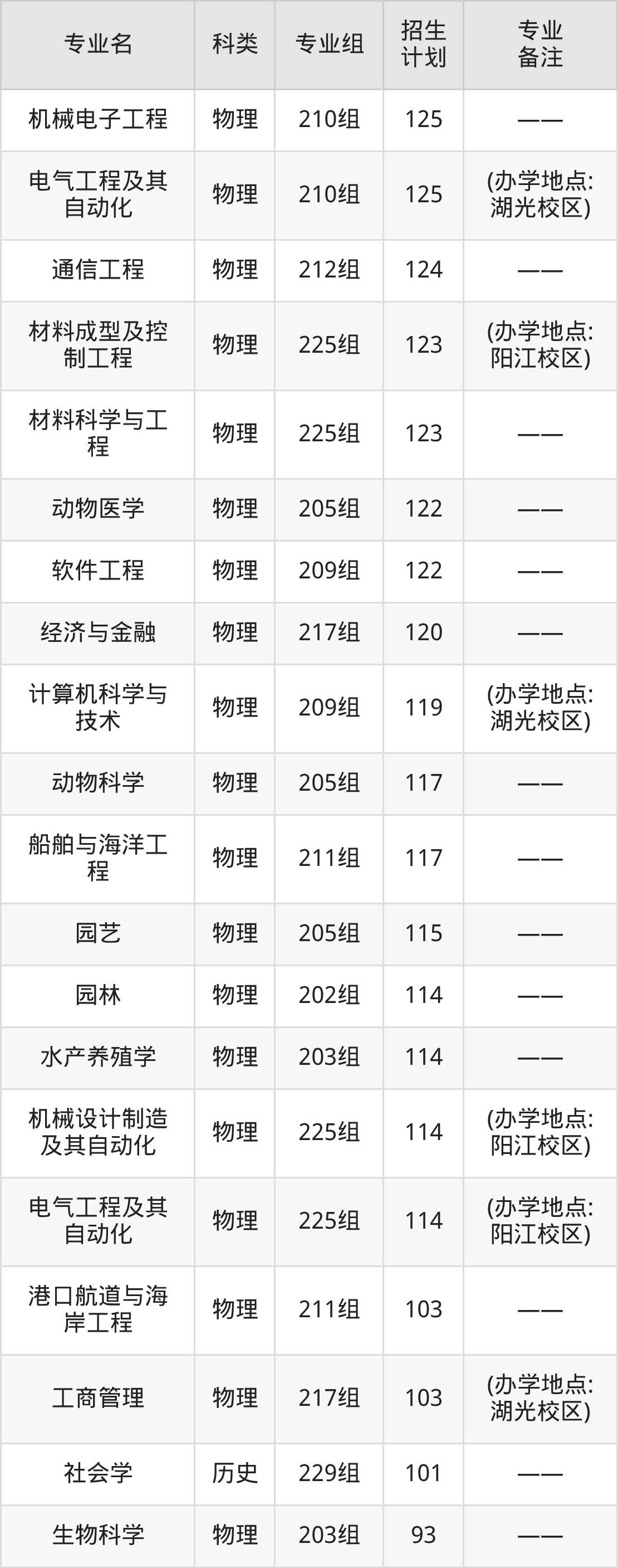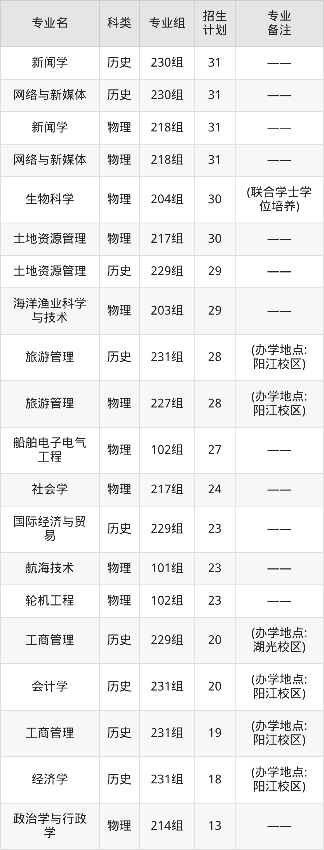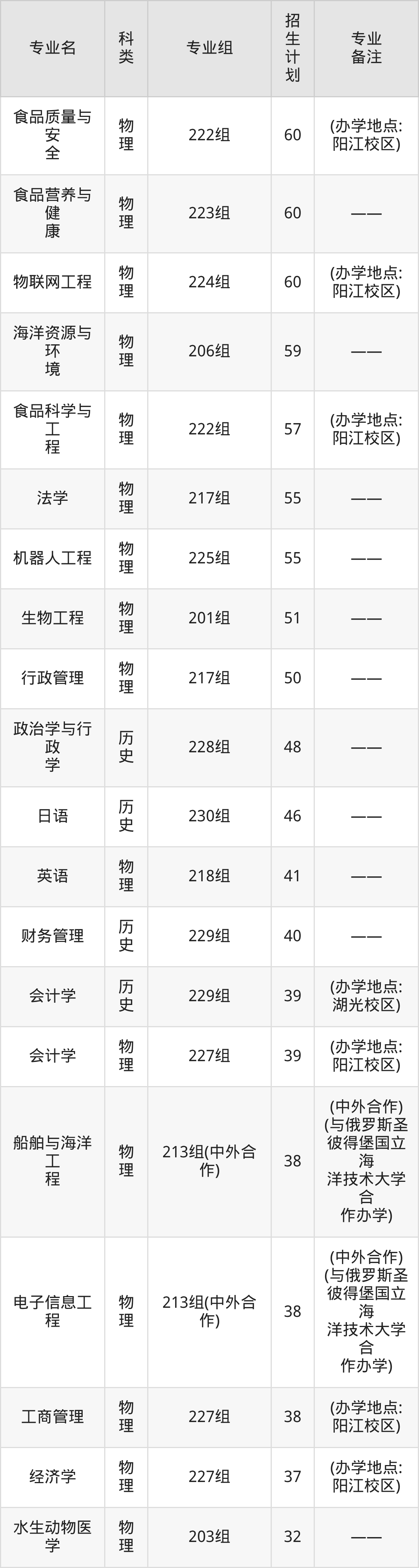 值得注意的是,广东海洋大学在本科批、本科提前批招生,招生类型为历史类、物理类。篇幅有限,这里仅附上广东海洋大学在广东省内招生计划详情:
