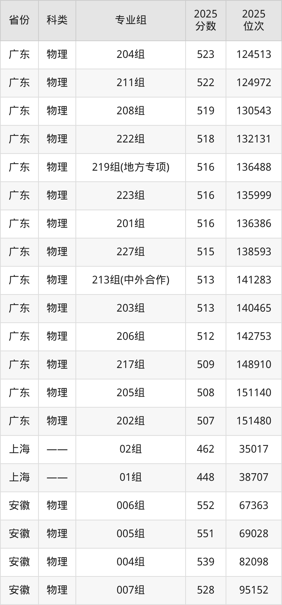 3、上海:最低分448分,对应最低分专业组为01组,位次38707名;