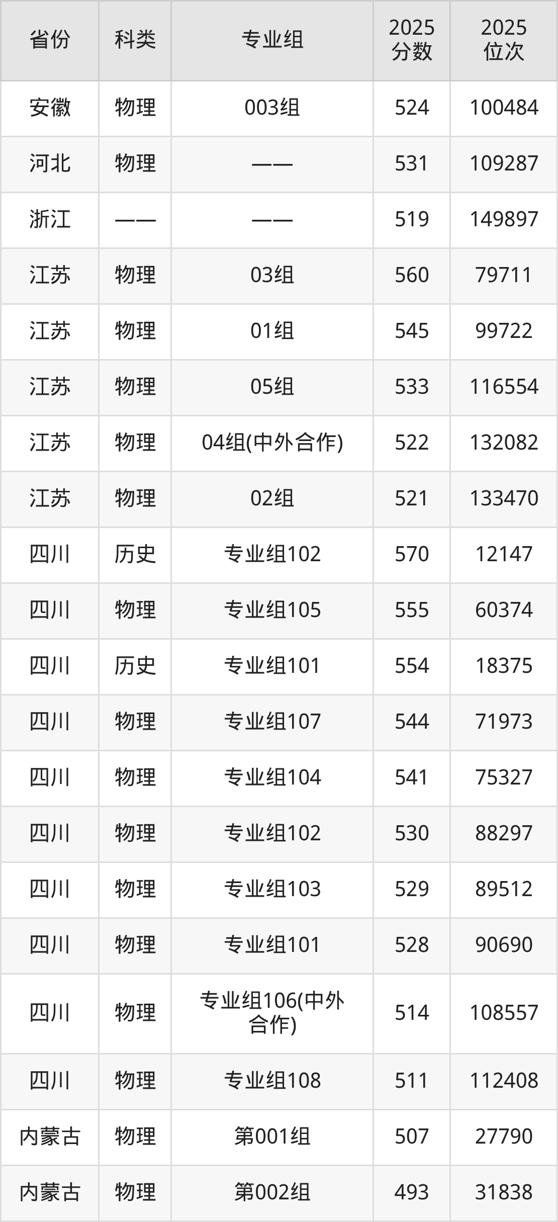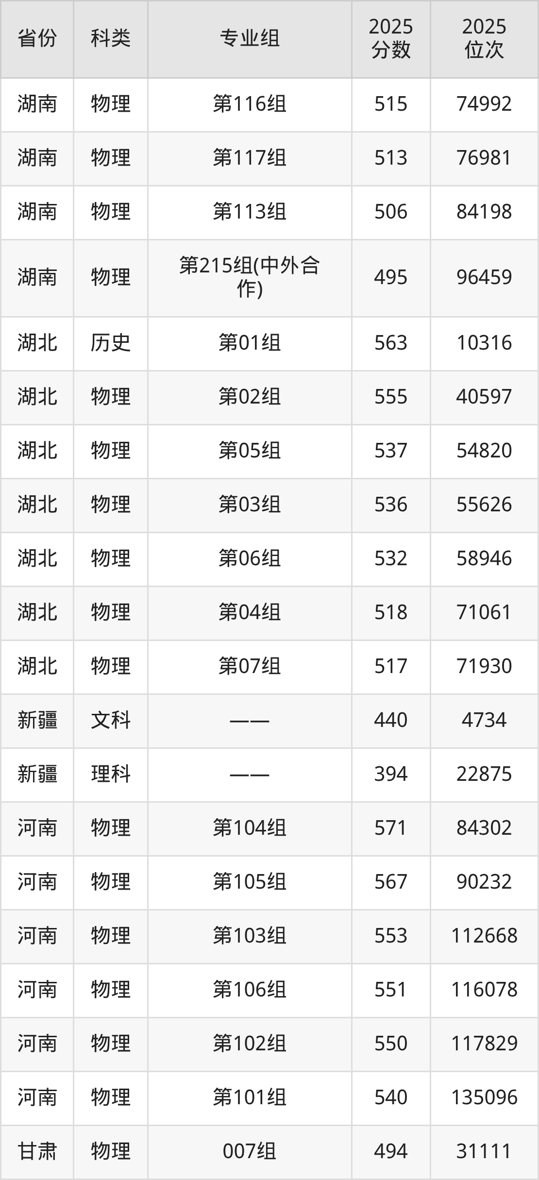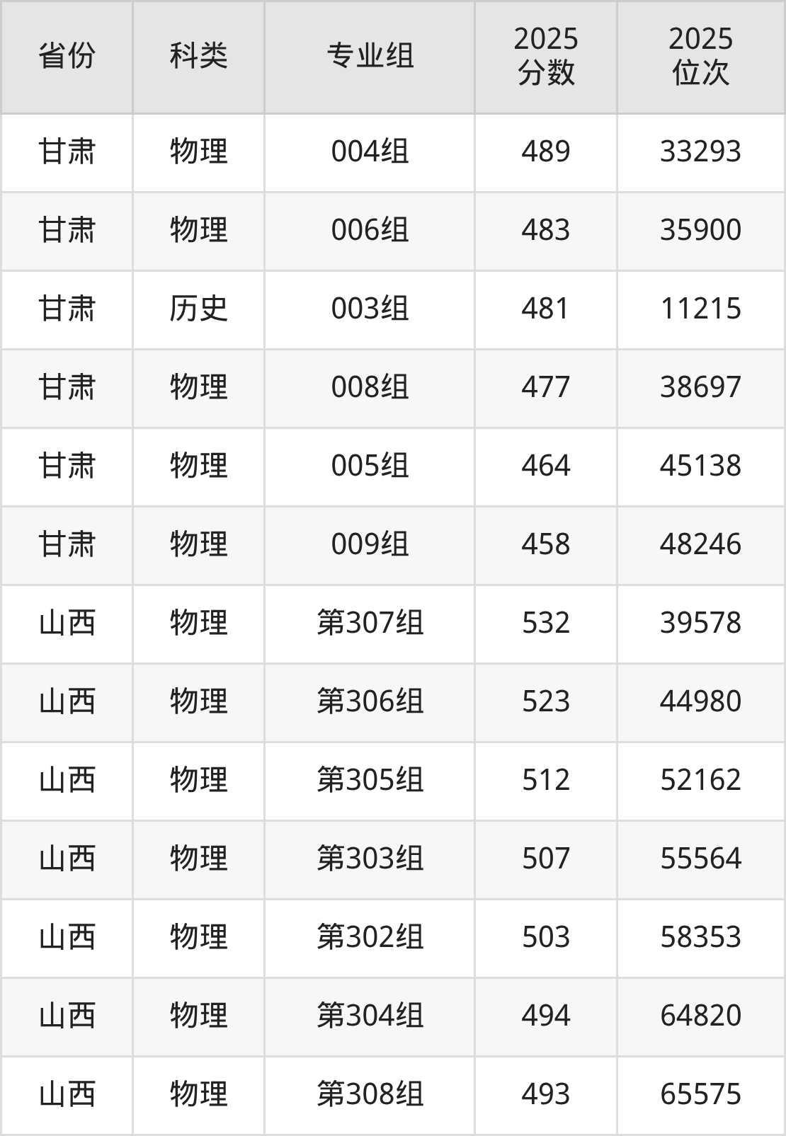 4、甘肃:最低分458分,对应最低分专业组为物理类009组,位次48246名;