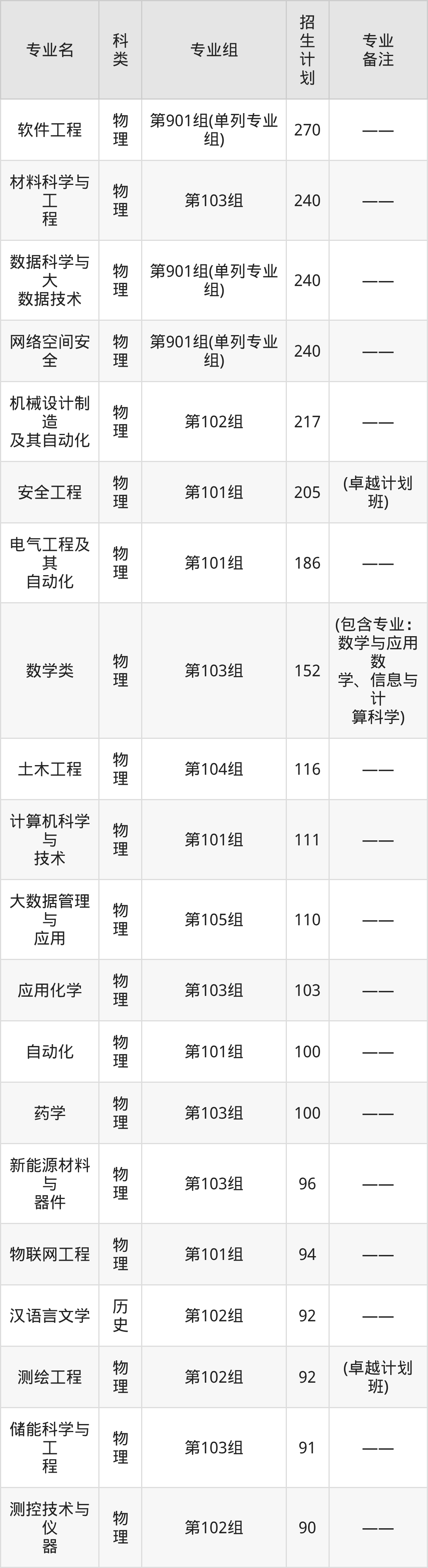 值得注意的是,河南理工大学在本科批、专科批招生,招生类型为物理类、历史类。篇幅有限,这里仅附上河南理工大学在河南省内招生计划详情: