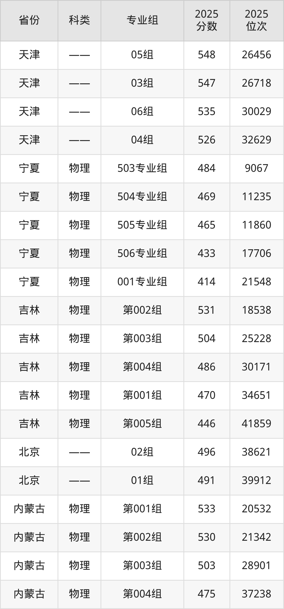 3、宁夏:最低分414分,对应最低分专业组为物理类001专业组,位次21548名;