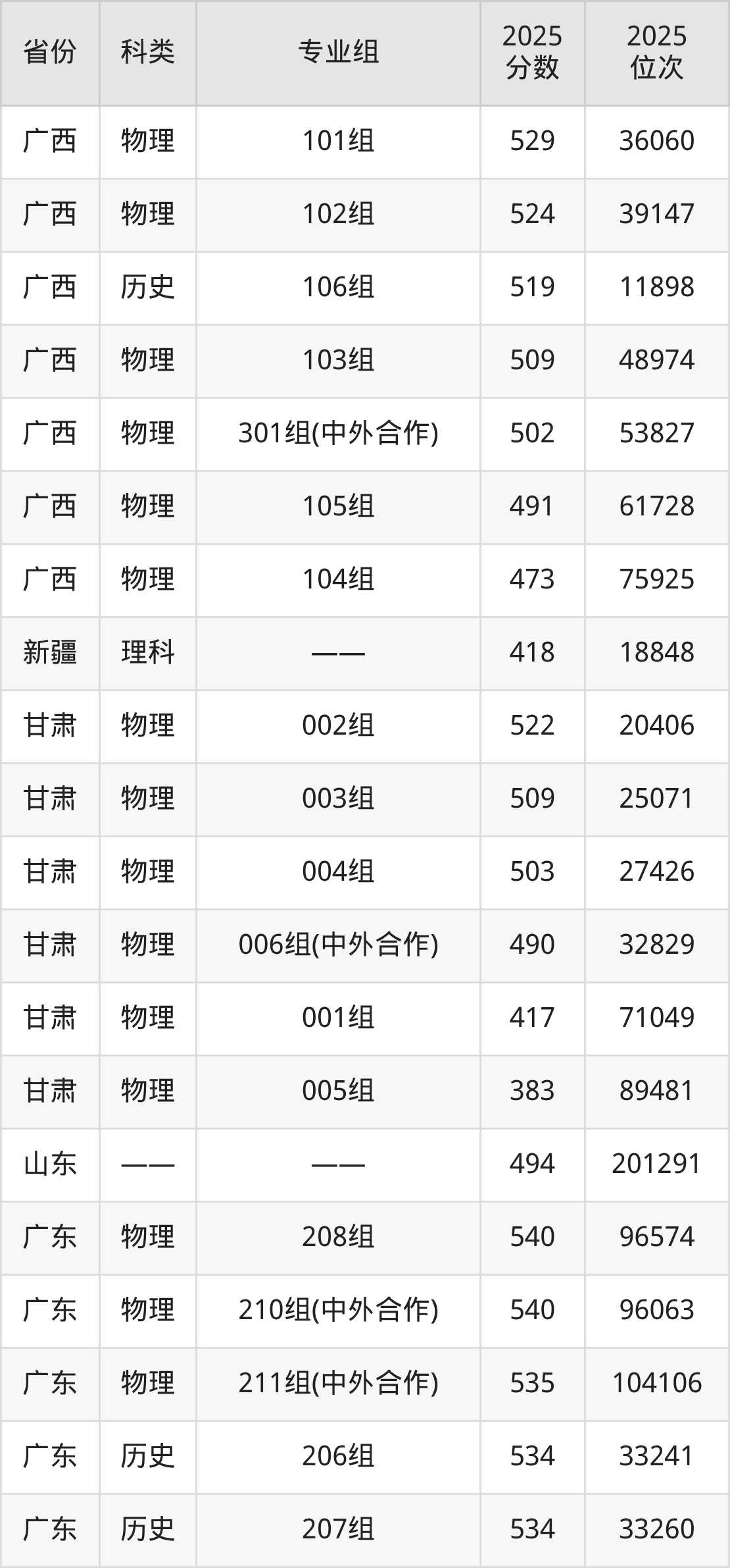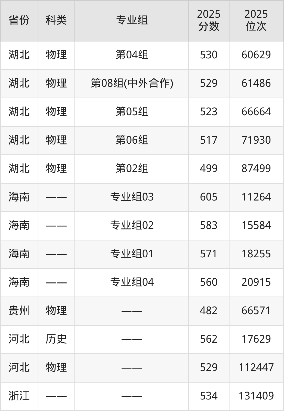 除上述省份外,河南理工大学2025各省录取最低分详情见下: