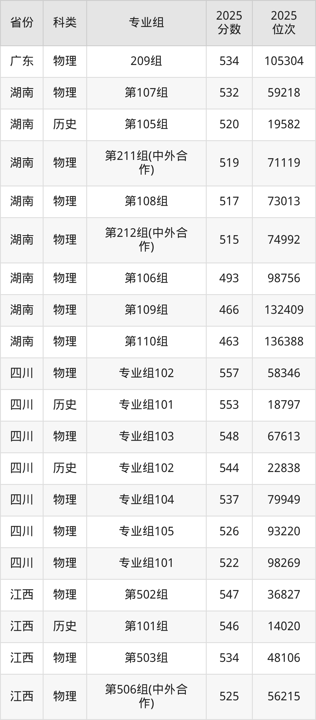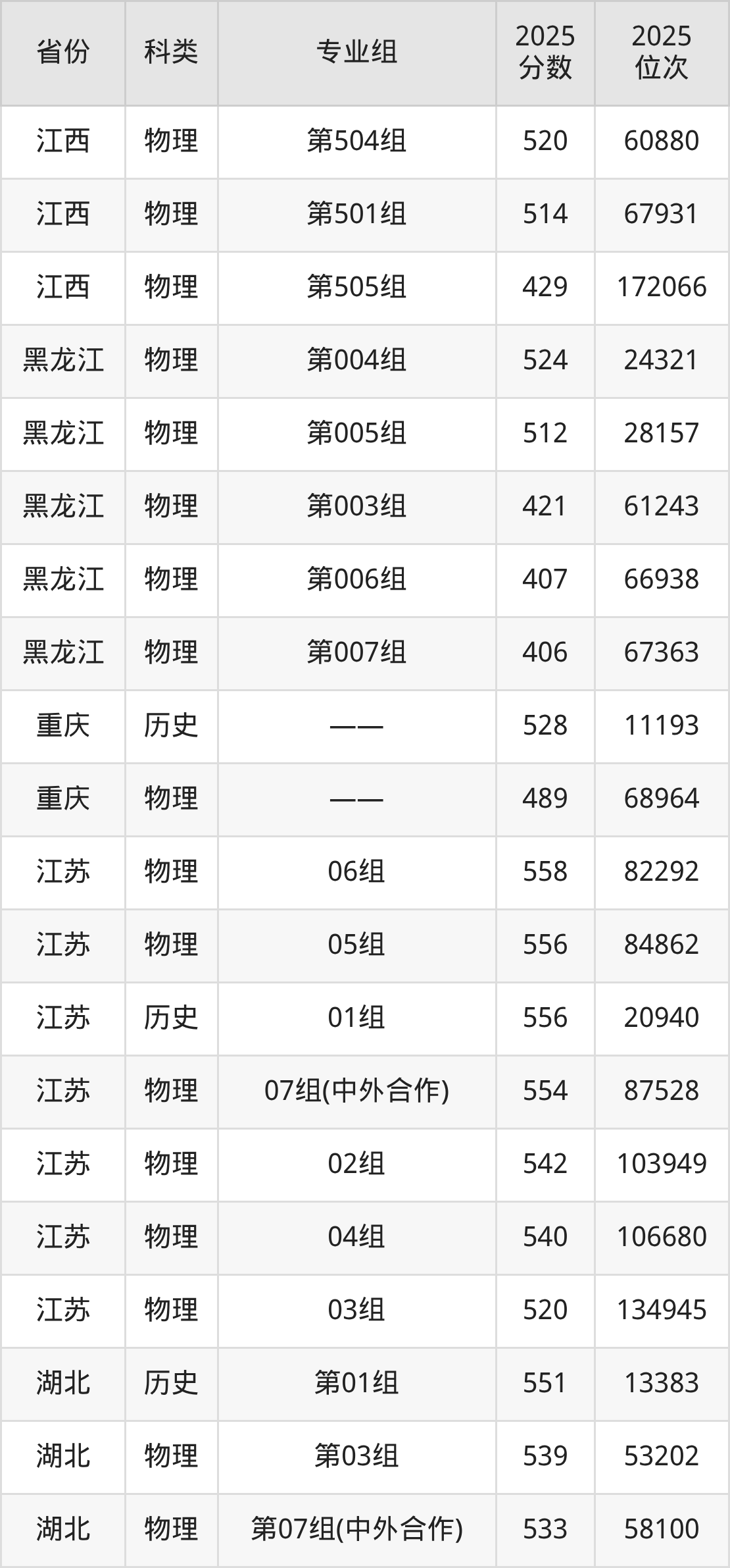 5、江西:最低分429分,对应最低分专业组为物理类第505组,位次172066名;