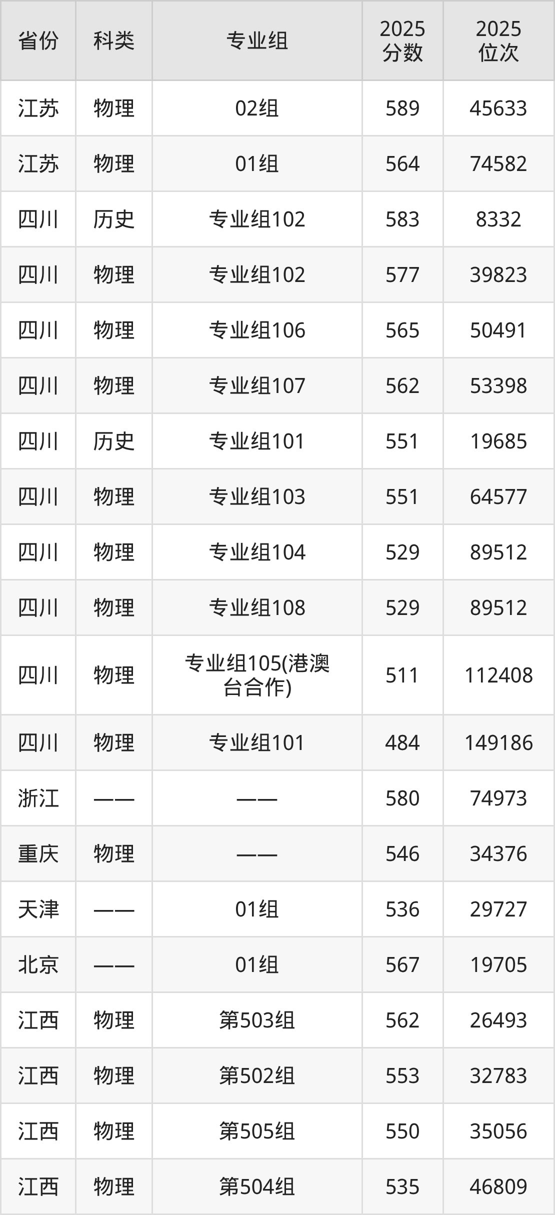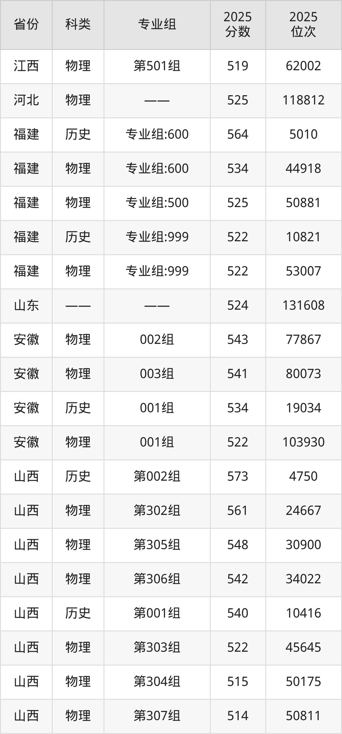 3、甘肃:最低分458分,对应最低分专业组为物理类002组,位次48246名;