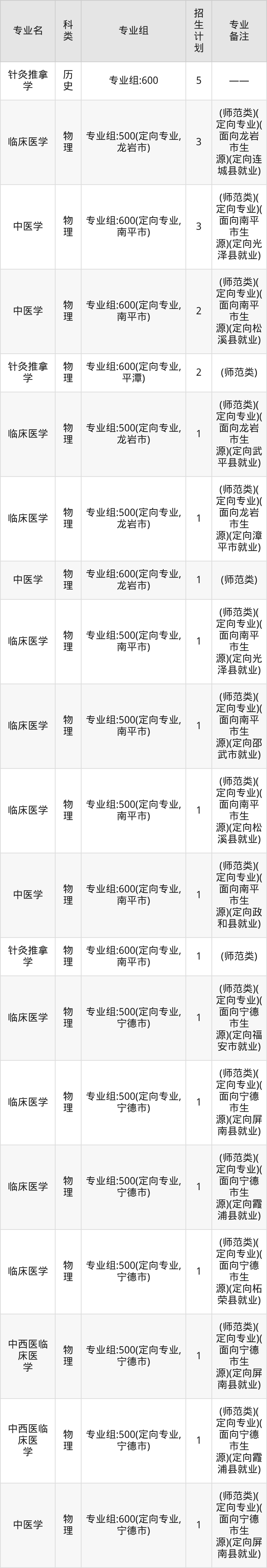 值得注意的是,福建中医药大学在本科批、本科提前批招生,招生类型为物理类、历史类。篇幅有限,这里仅附上福建中医药大学在福建省内招生计划详情: