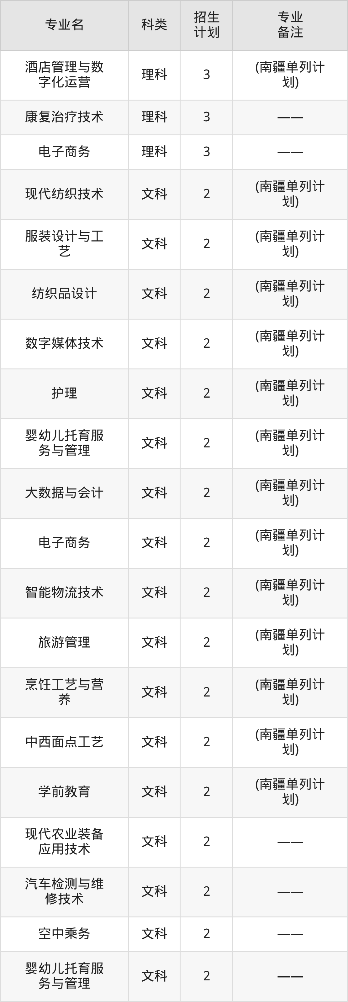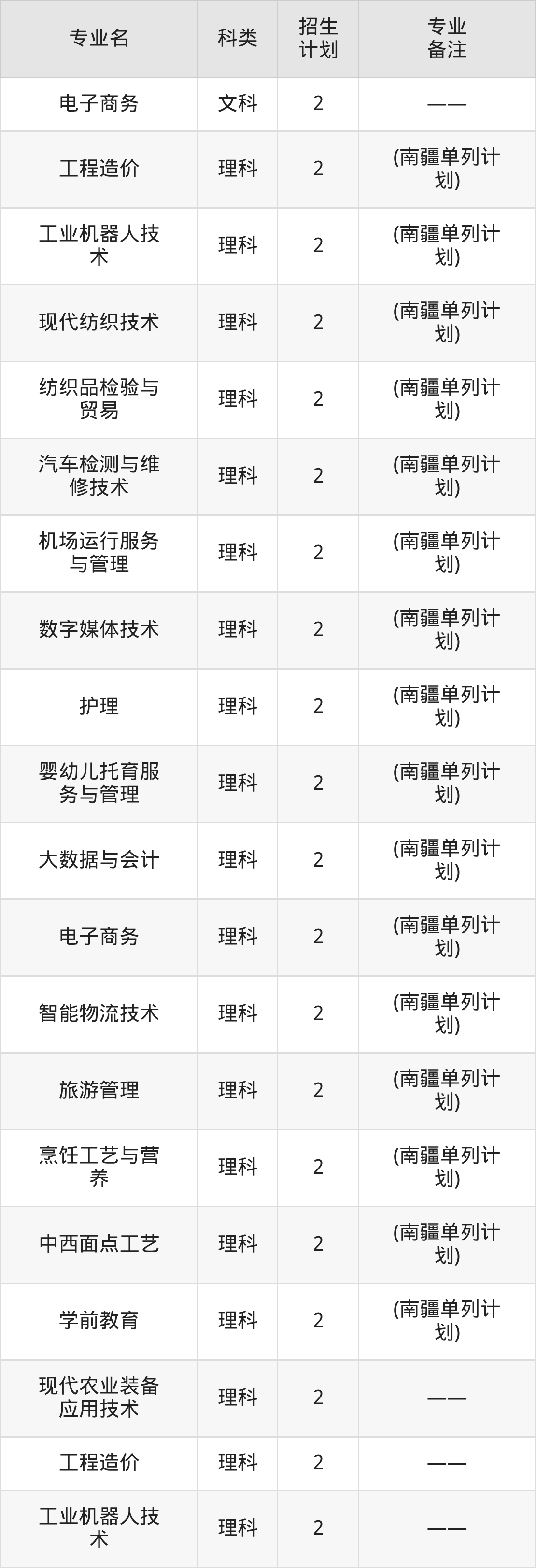 值得注意的是,塔里木职业技术学院在专科批、专科提前批招生,招生类型为文科、理科。篇幅有限,这里仅附上塔里木职业技术学院在新疆维吾尔自治区内招生计划详情: