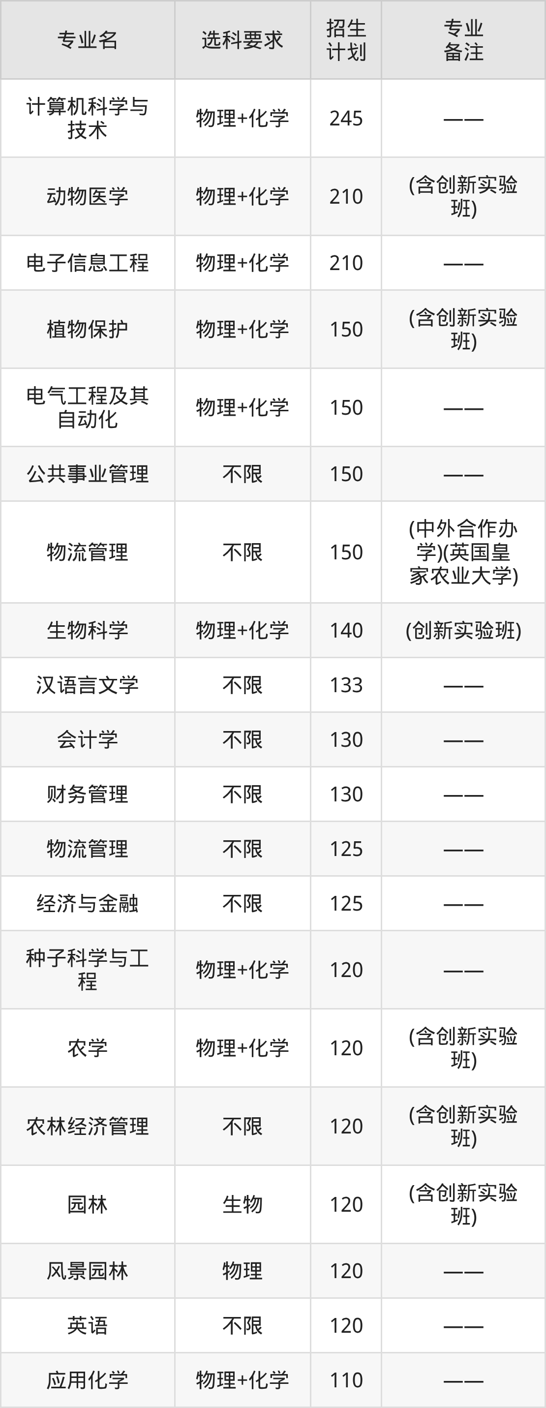 第二名:河北(125人),招生人数最多的专业是动物科学(15人、物理类,(含创新实验班30人))。