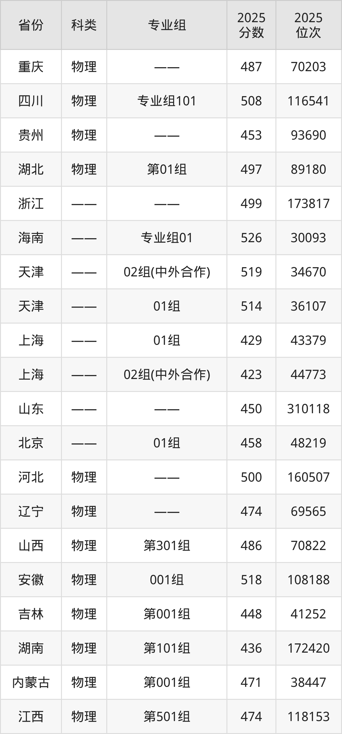 3、广西:最低分423分,对应最低分专业组为物理类101组,位次121395名;