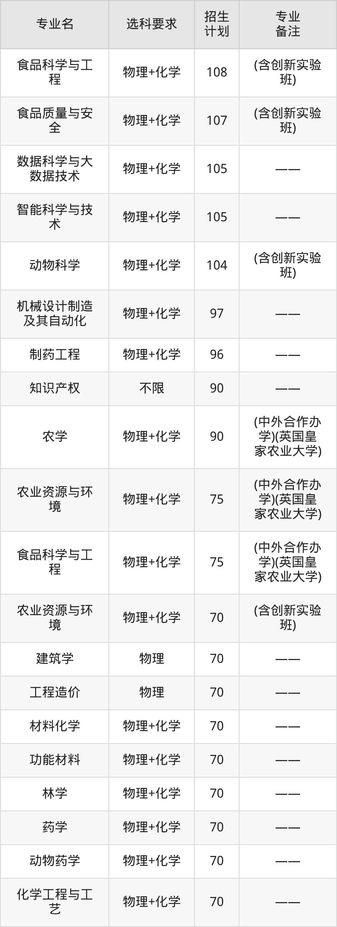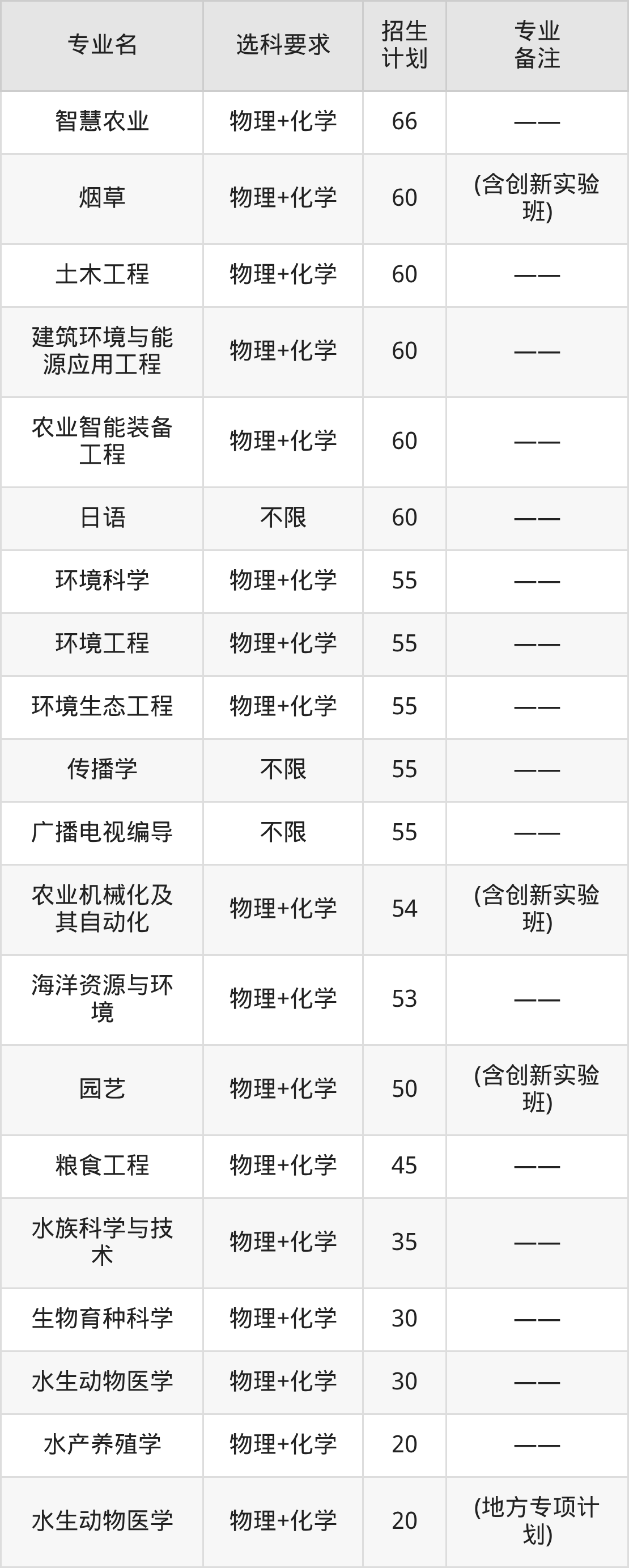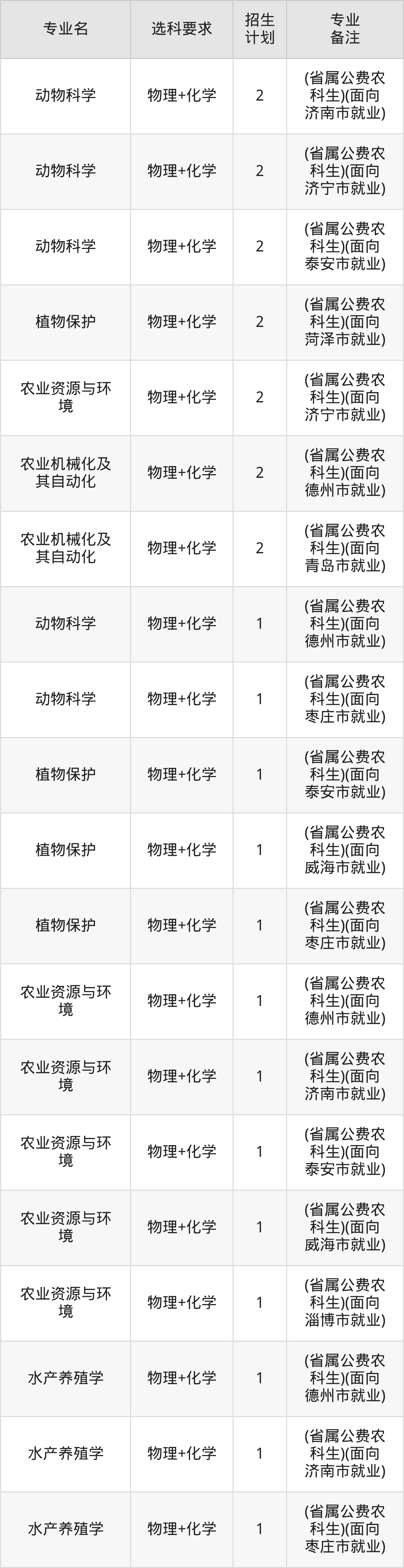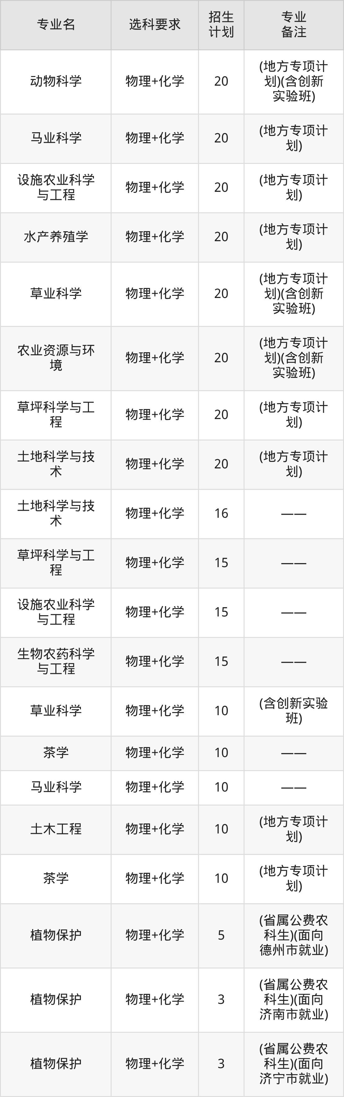 值得注意的是,青岛农业大学在本科批、本科提前批招生,招生类型为普通类。篇幅有限,这里仅附上青岛农业大学在山东省内招生计划详情: