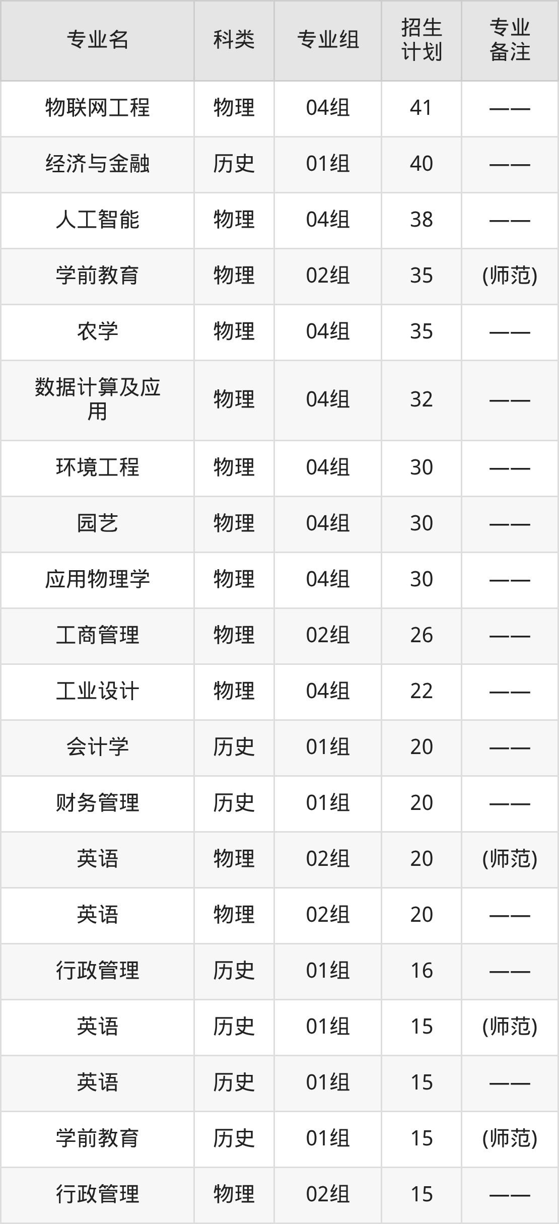值得注意的是,淮安大学在本科批招生,招生类型为物理类、历史类。篇幅有限,这里仅附上淮安大学在江苏省内招生计划详情: