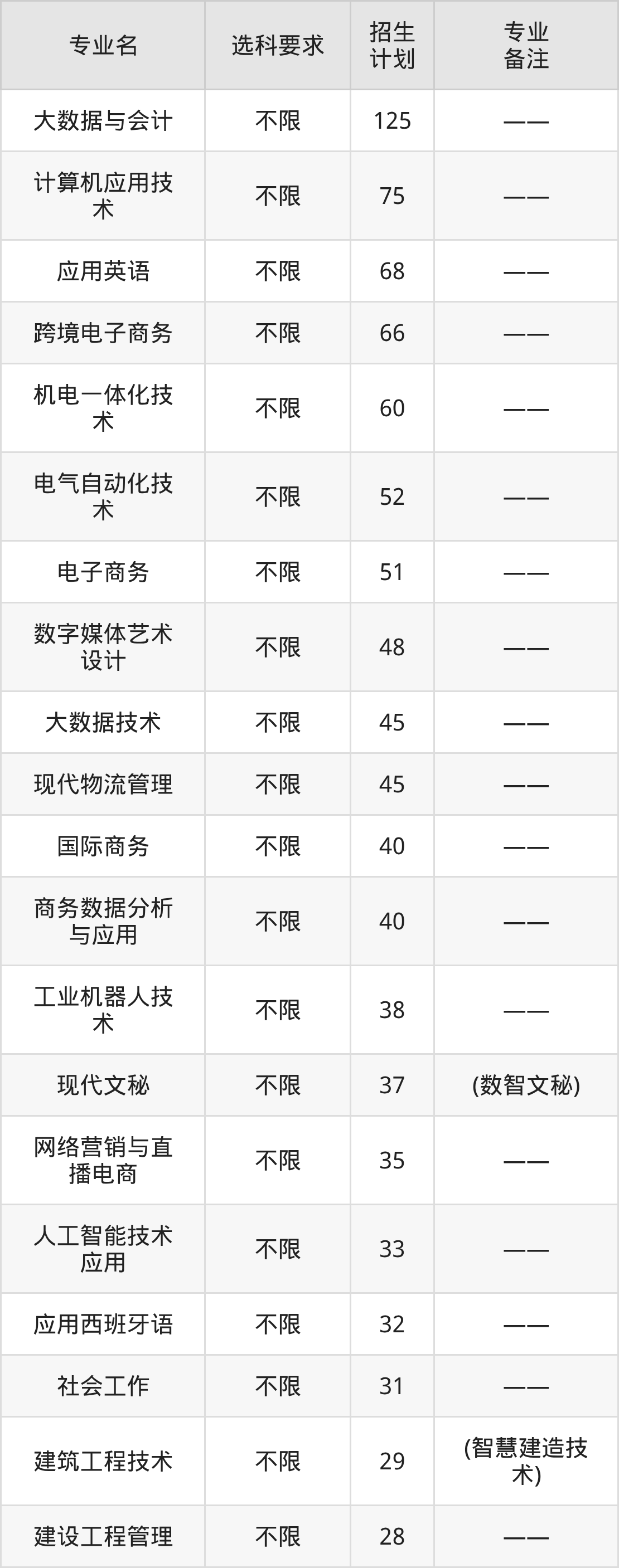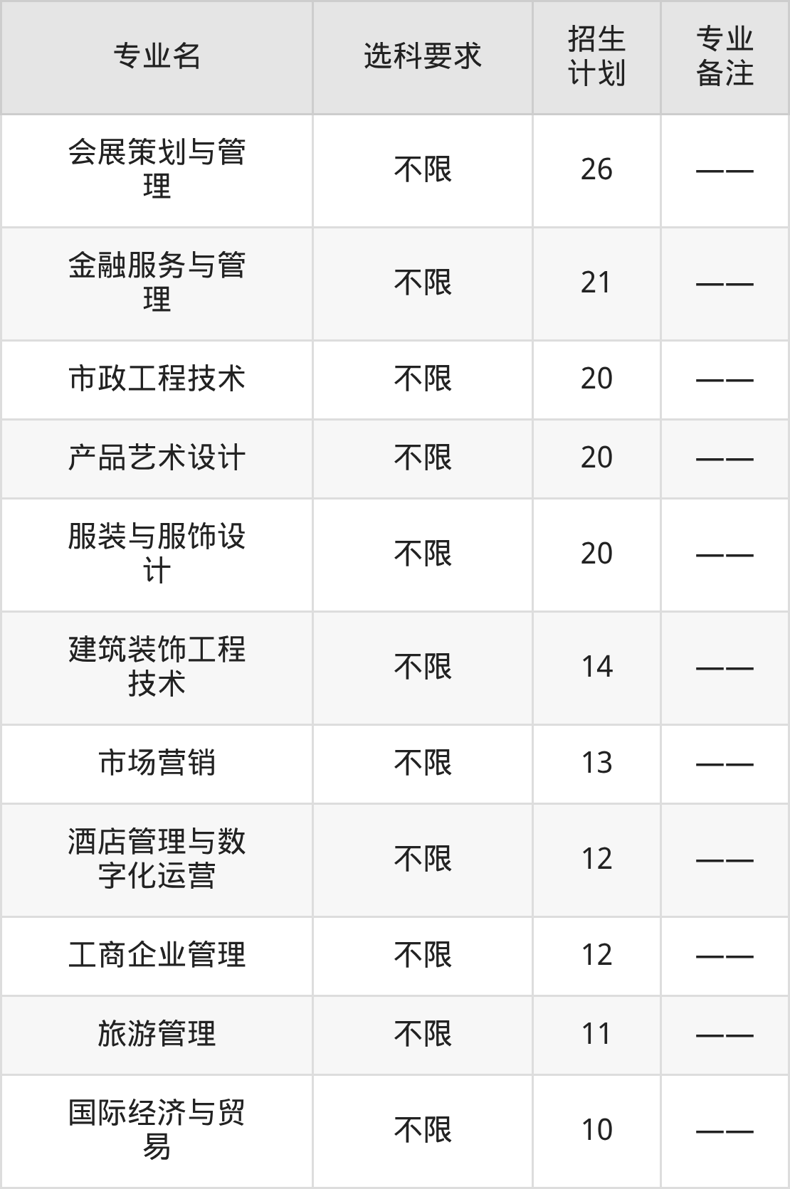 义乌工商职业技术学院2025全国各省招生计划详情见下: