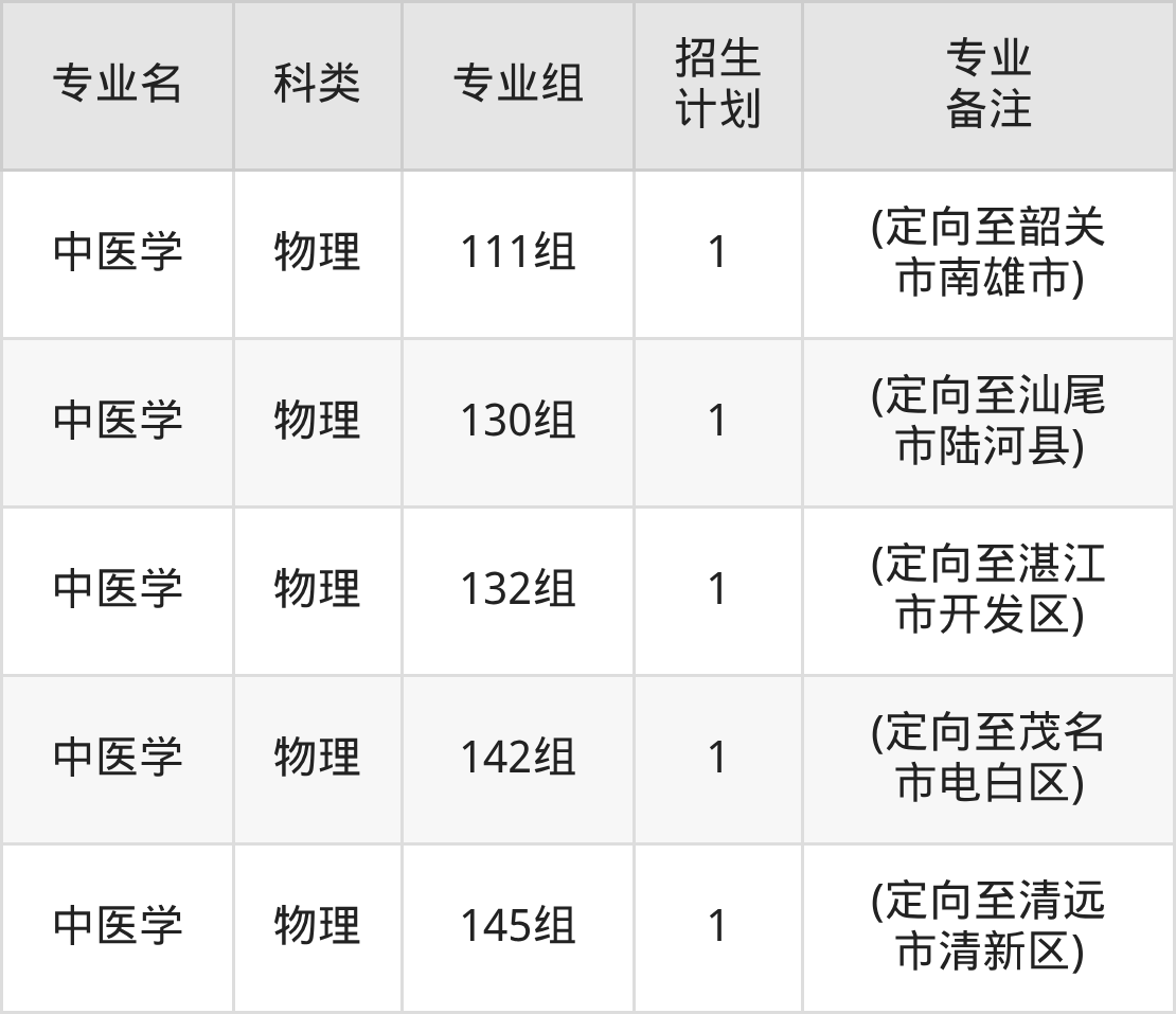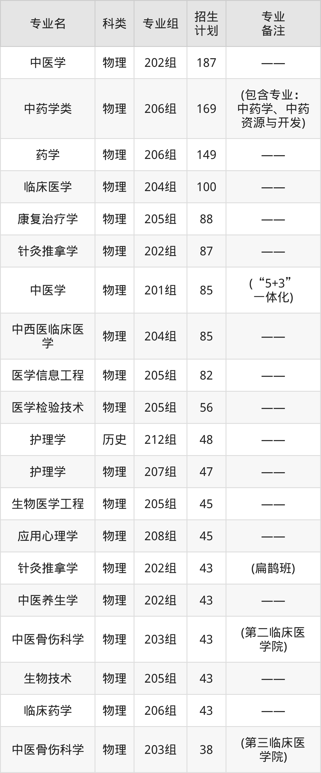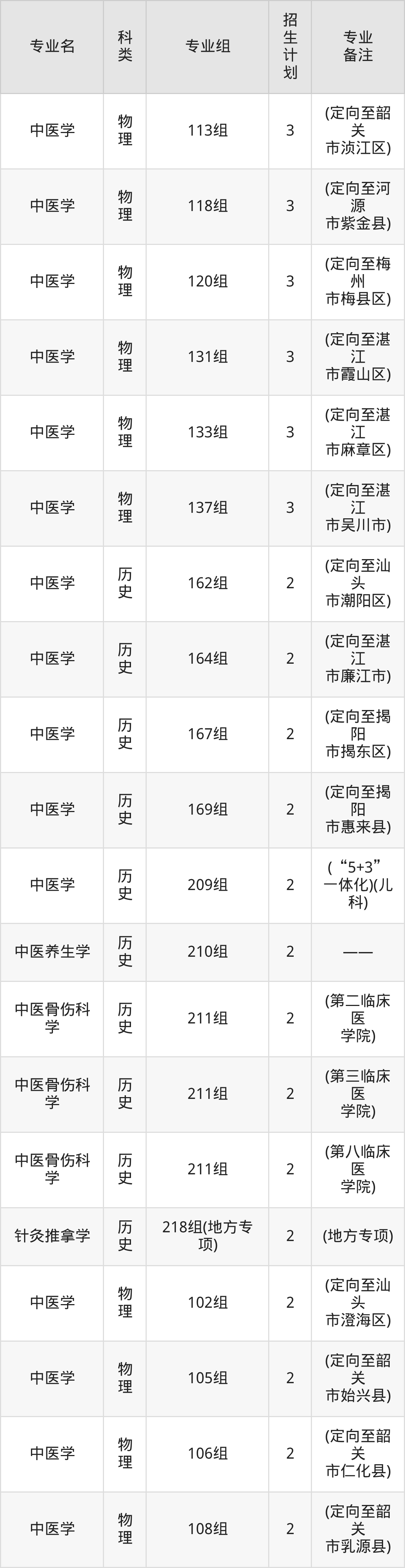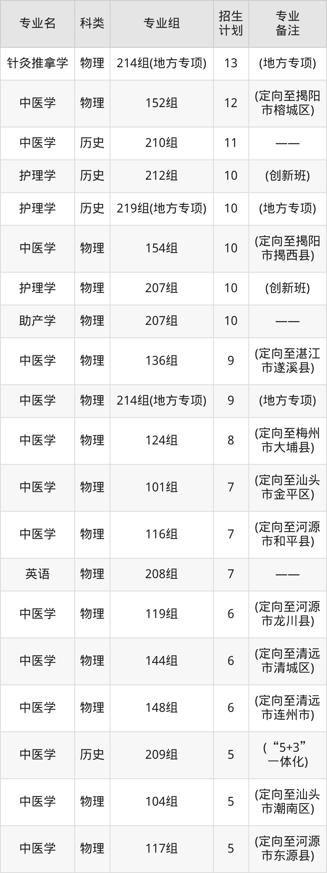 值得注意的是,广州中医药大学在本科批、本科提前批招生,招生类型为物理类、历史类。篇幅有限,这里仅附上广州中医药大学在广东省内招生计划详情:
