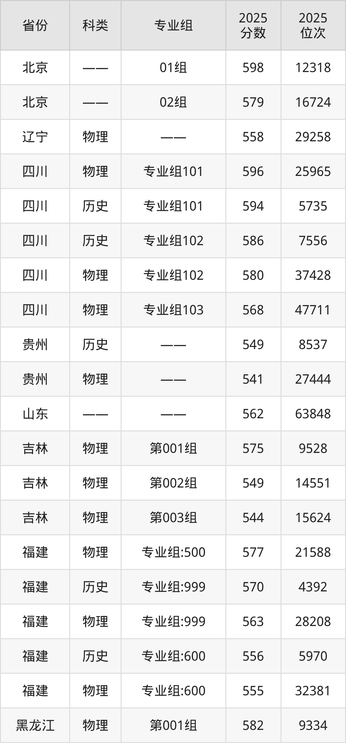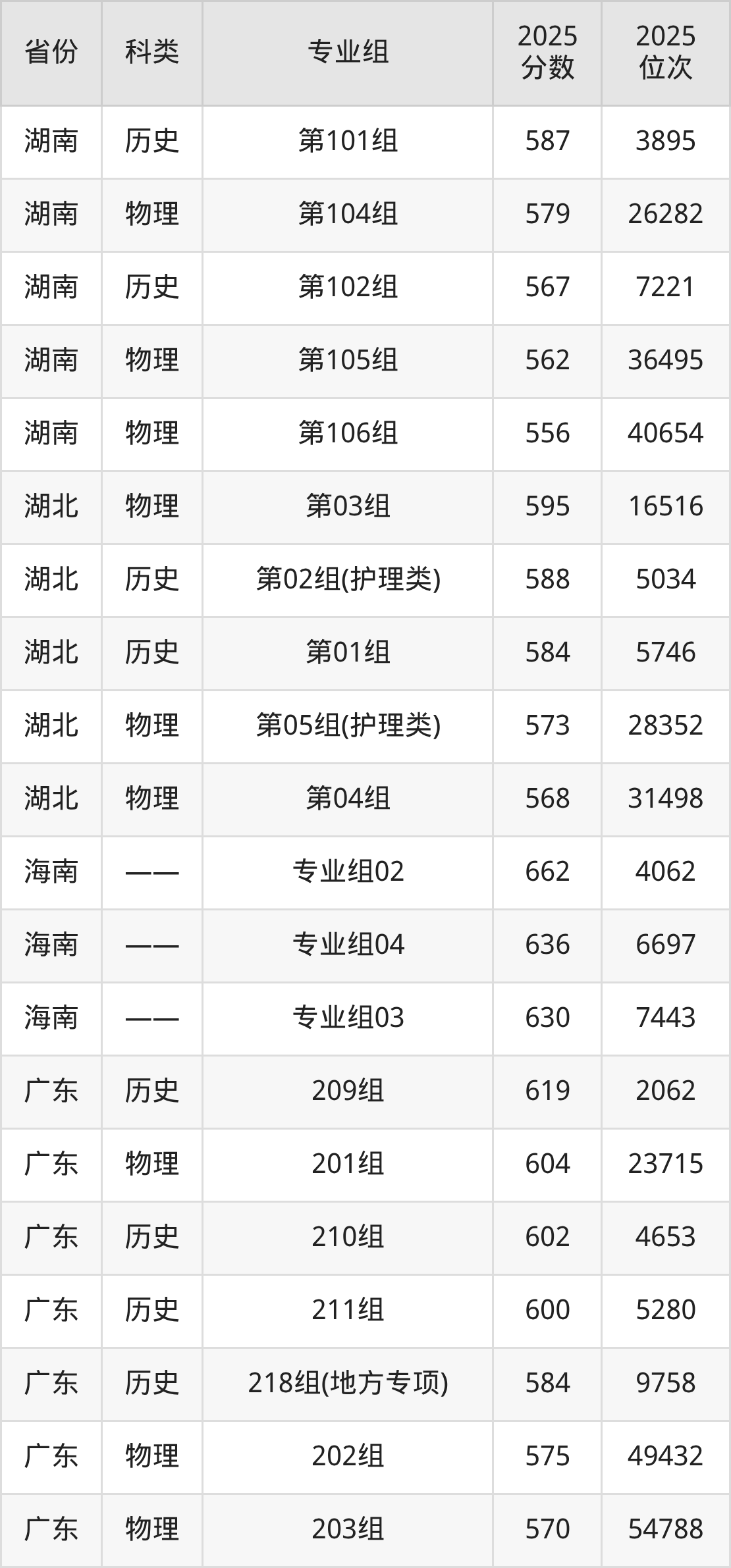 除上述省份外,广州中医药大学2025各省录取最低分详情见下: