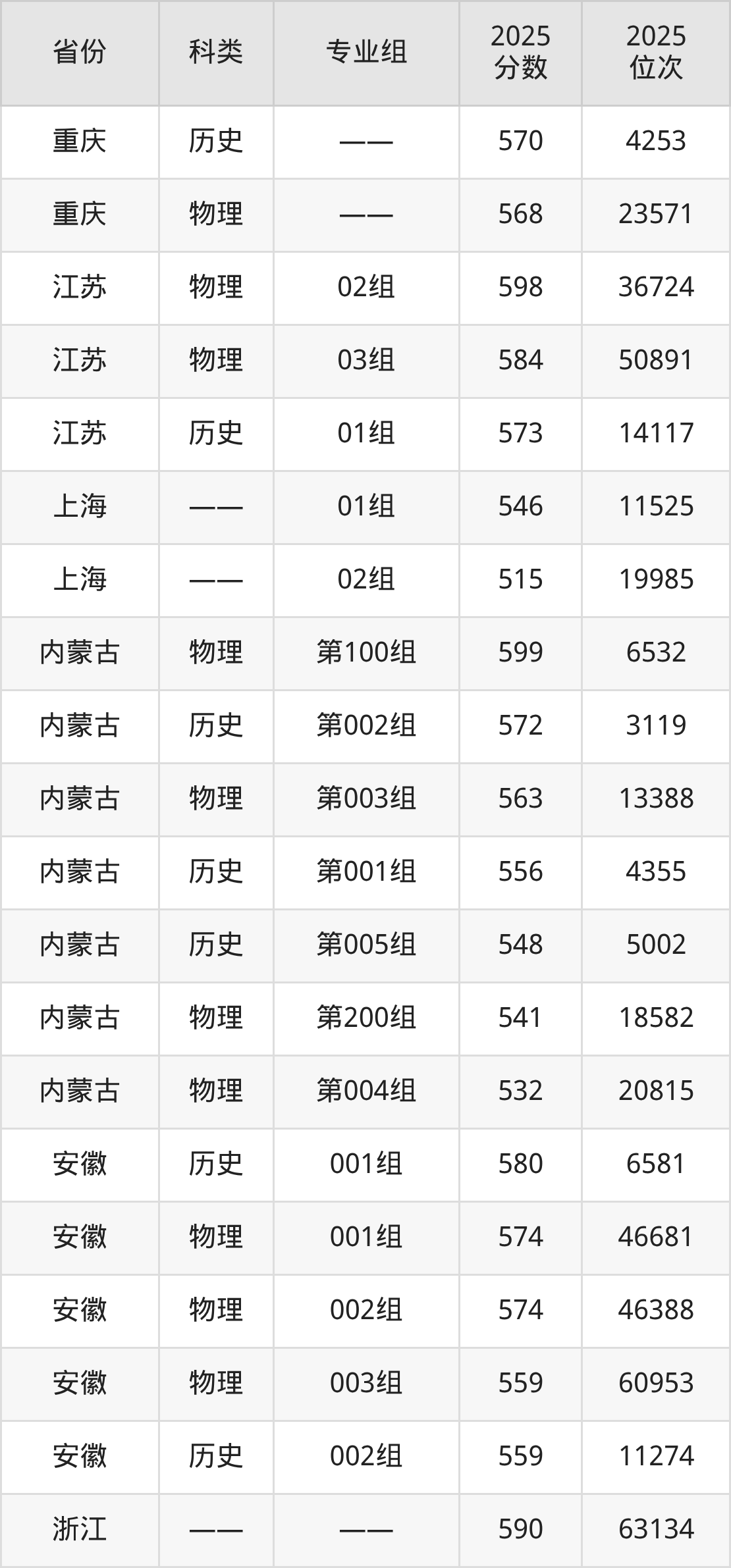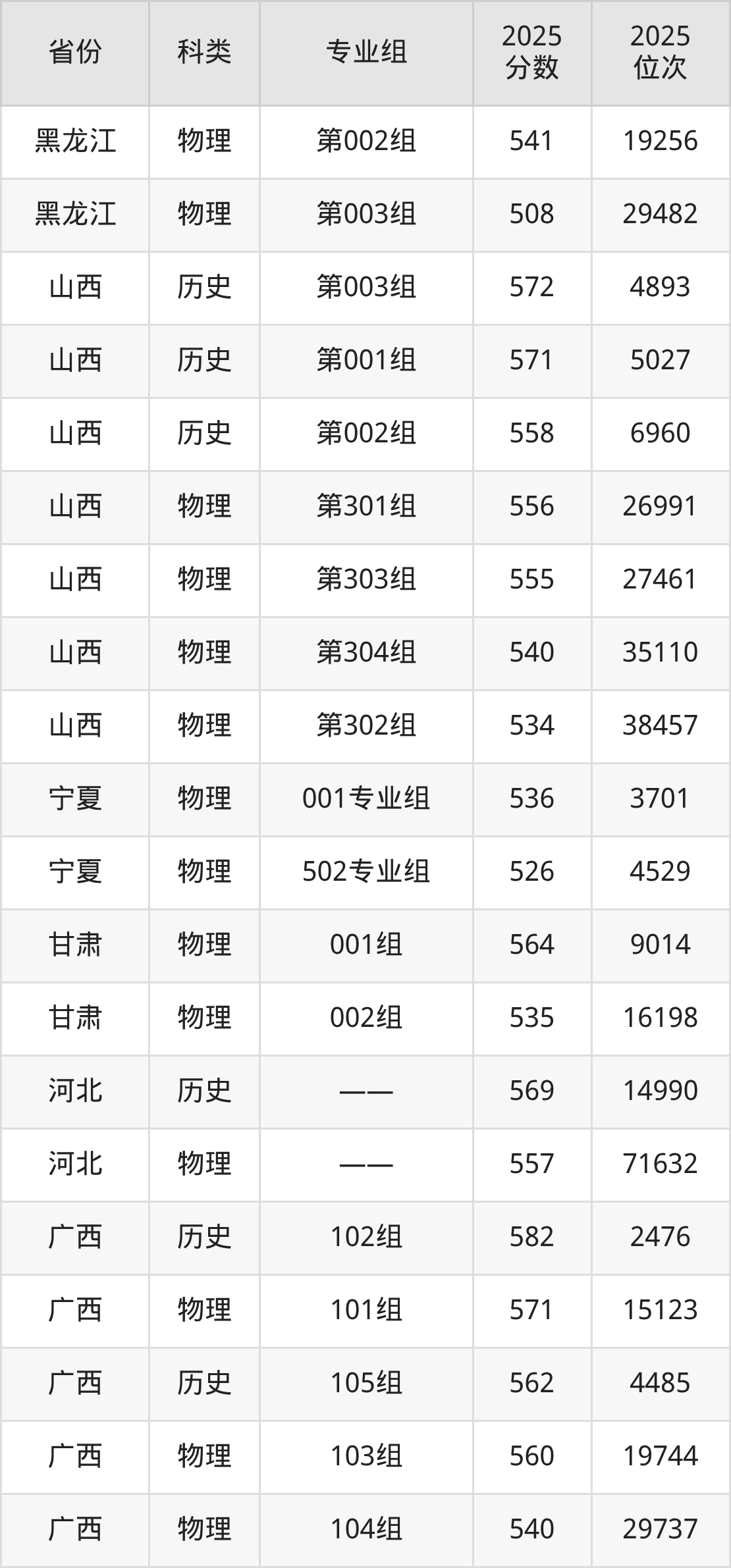 5、内蒙古:最低分532分,对应最低分专业组为物理类第004组,位次20815名;