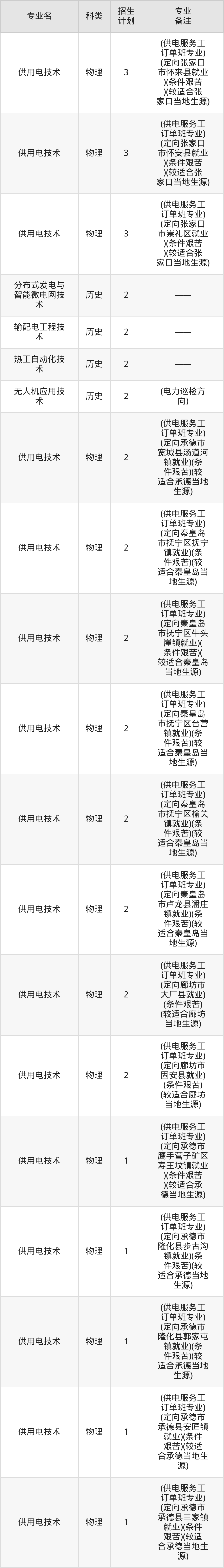 值得注意的是,保定电力职业技术学院在专科批招生,招生类型为物理类、历史类。篇幅有限,这里仅附上保定电力职业技术学院在河北省内招生计划详情: