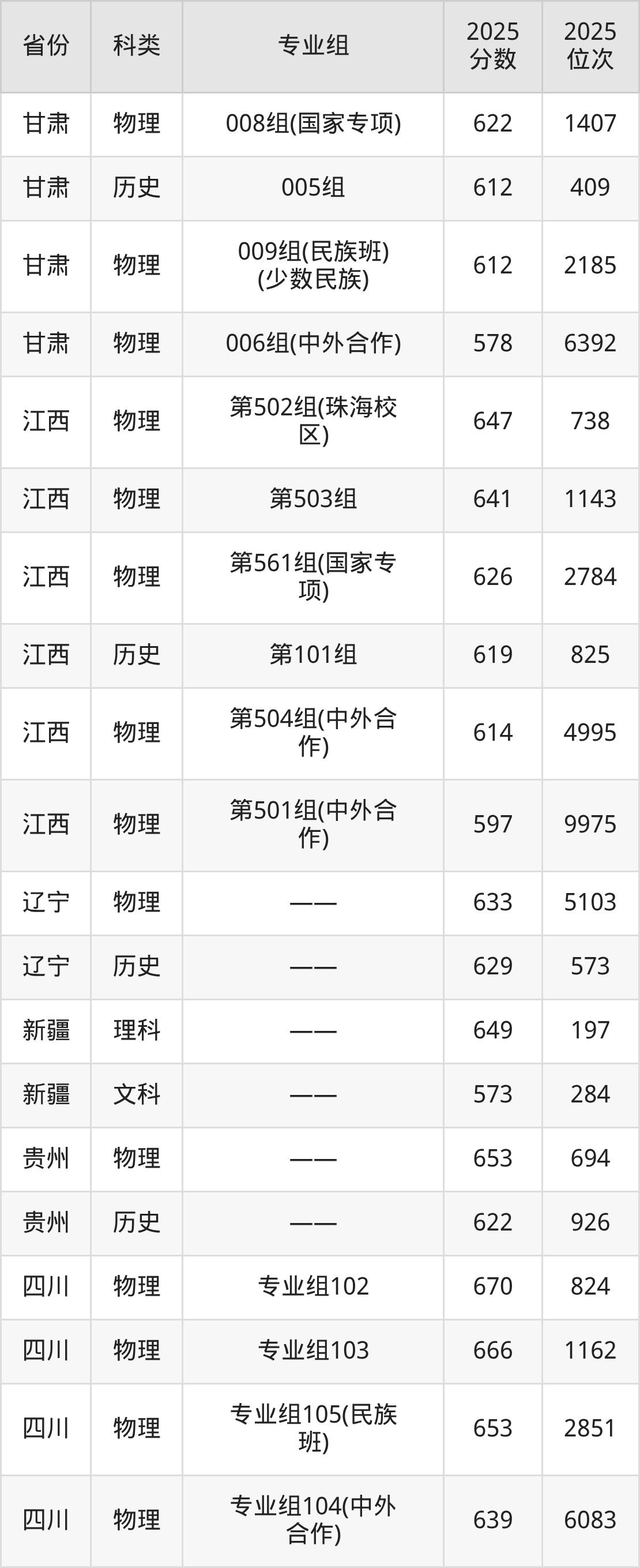 5、江西:最低分597分,对应最低分专业组为物理类第501组(中外合作),位次9975名;