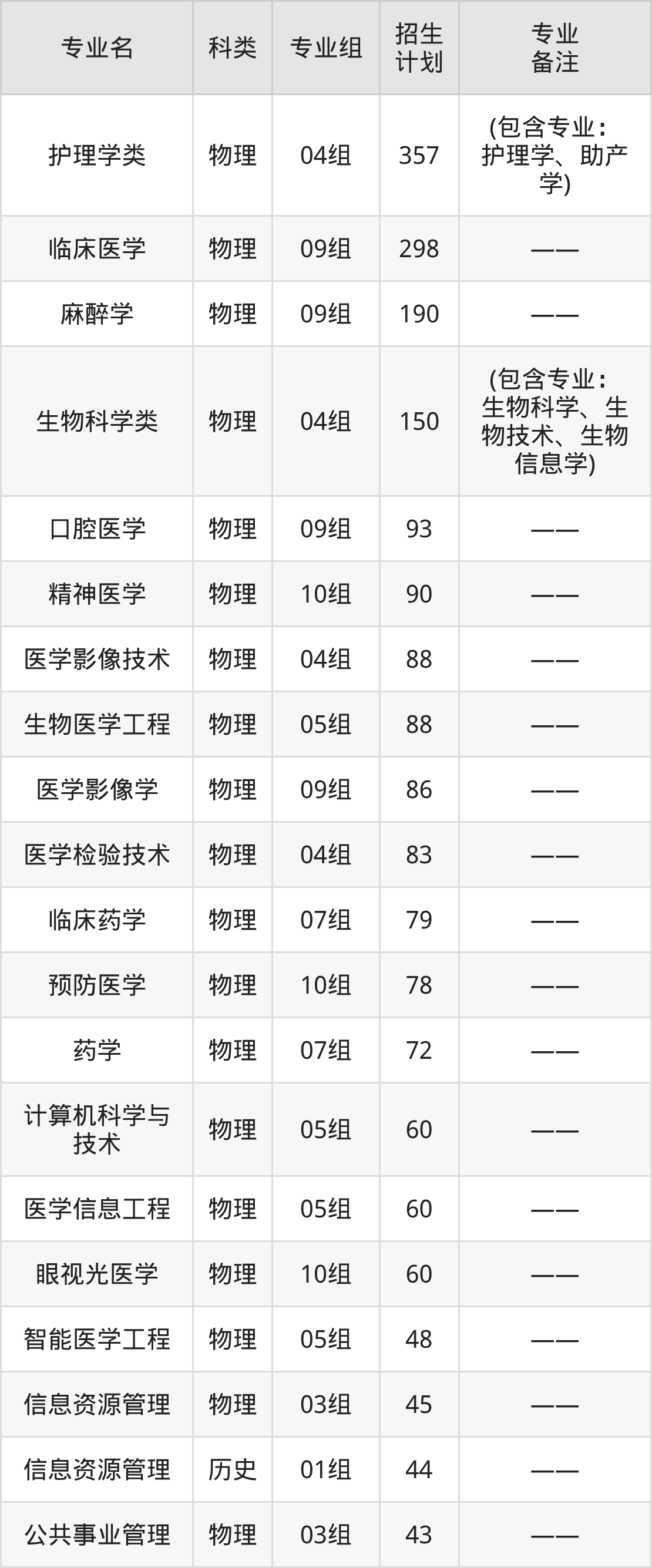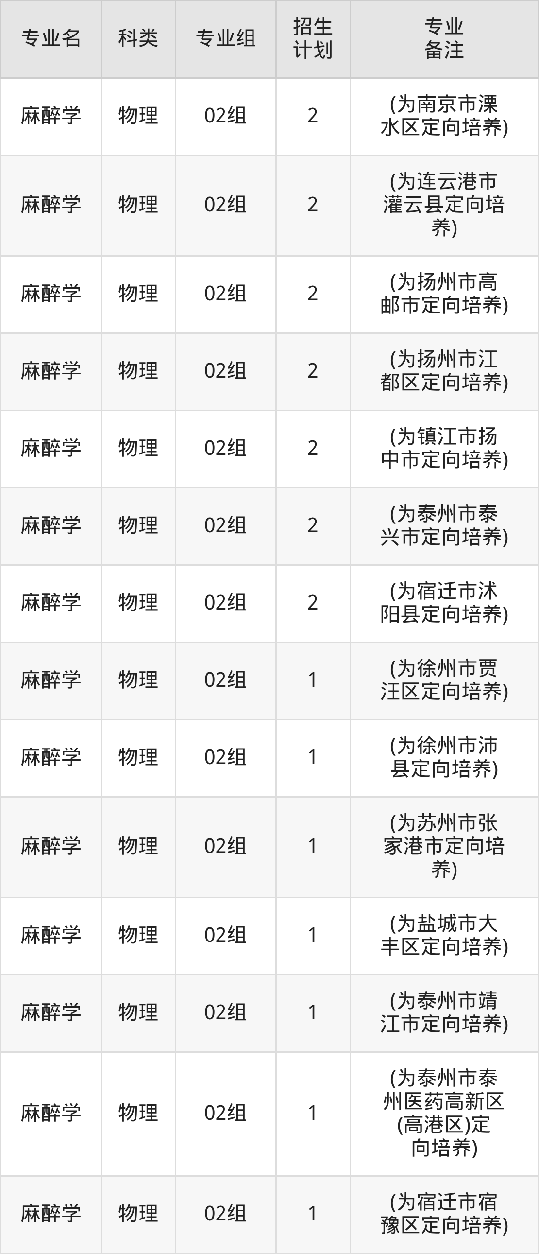 值得注意的是,徐州医科大学在本科批、本科提前批招生,招生类型为物理类、历史类。篇幅有限,这里仅附上徐州医科大学在江苏省内招生计划详情: