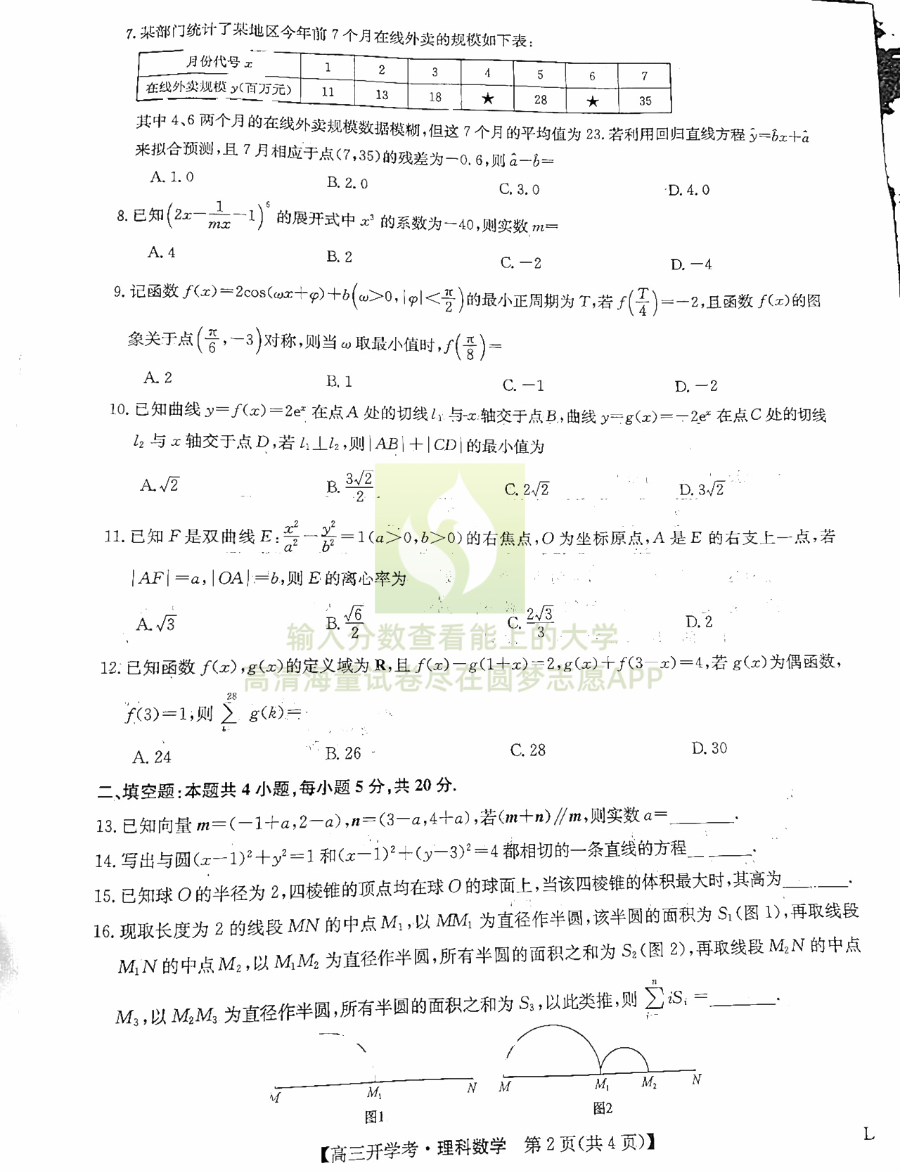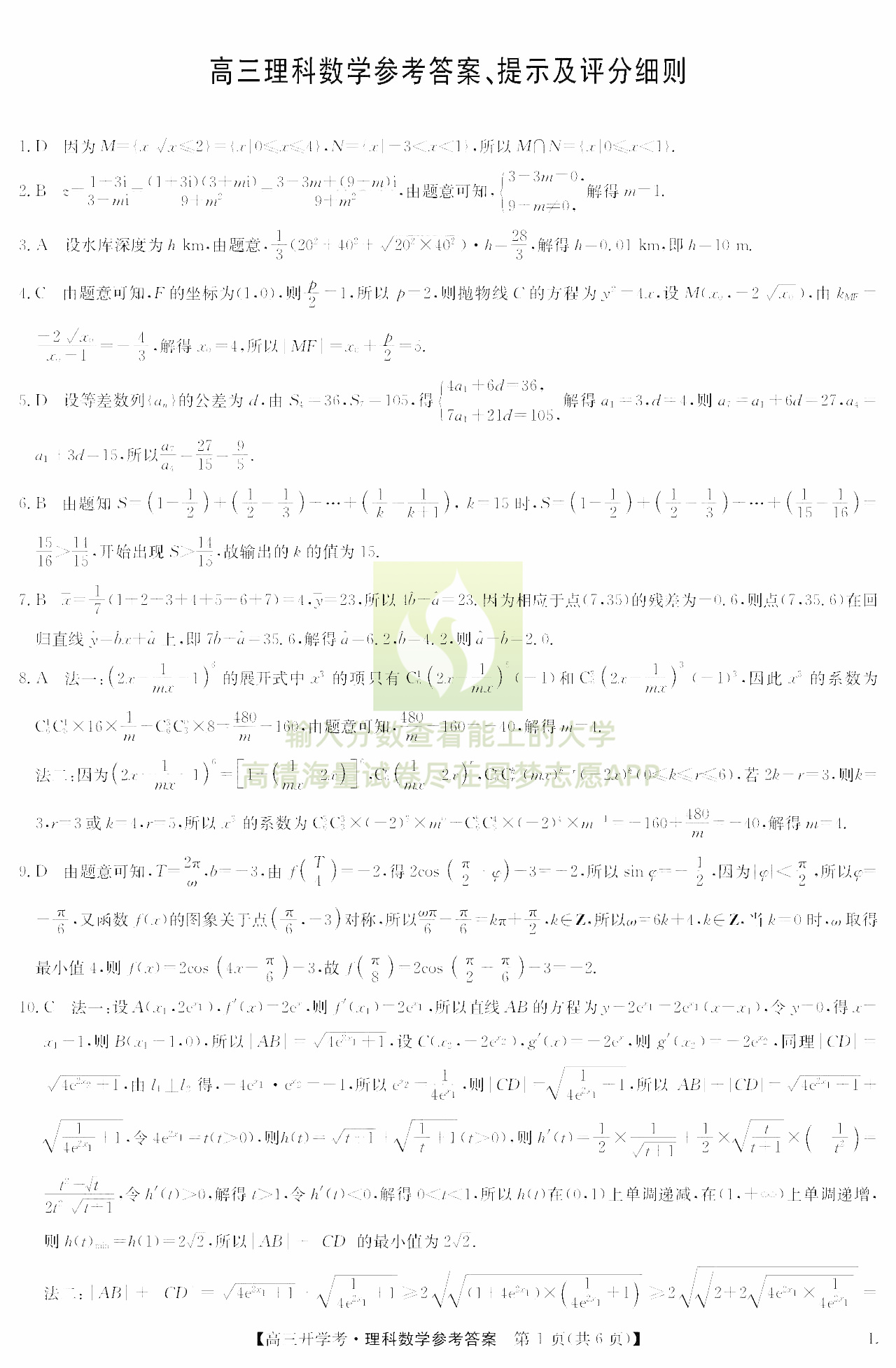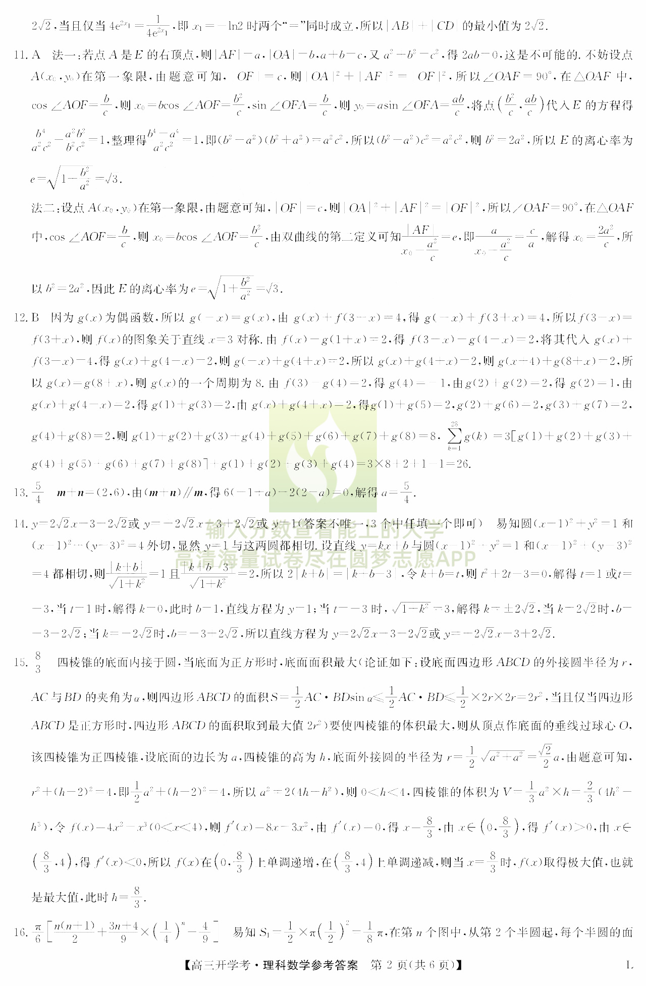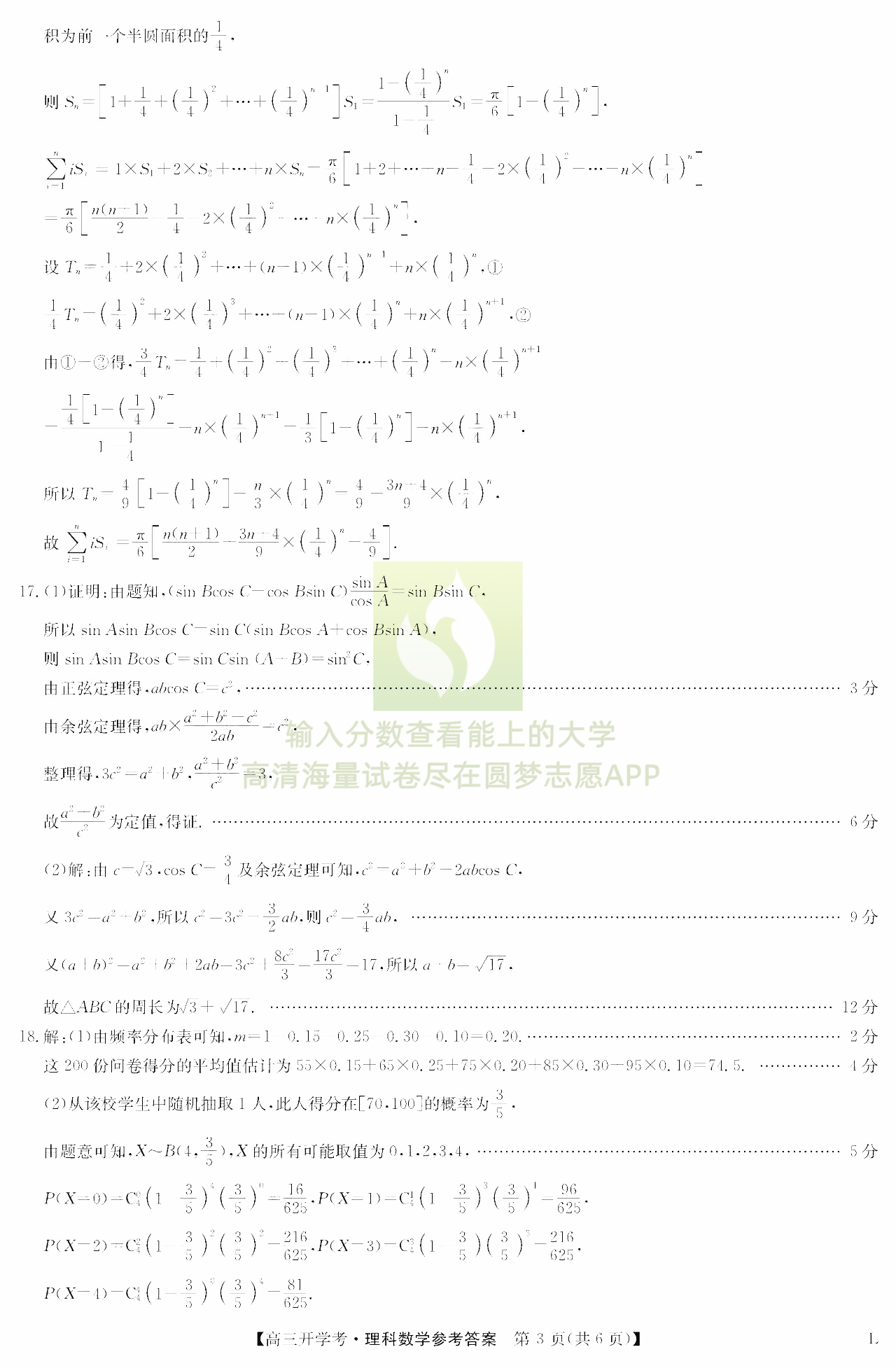 三、理科数学试卷答案汇总