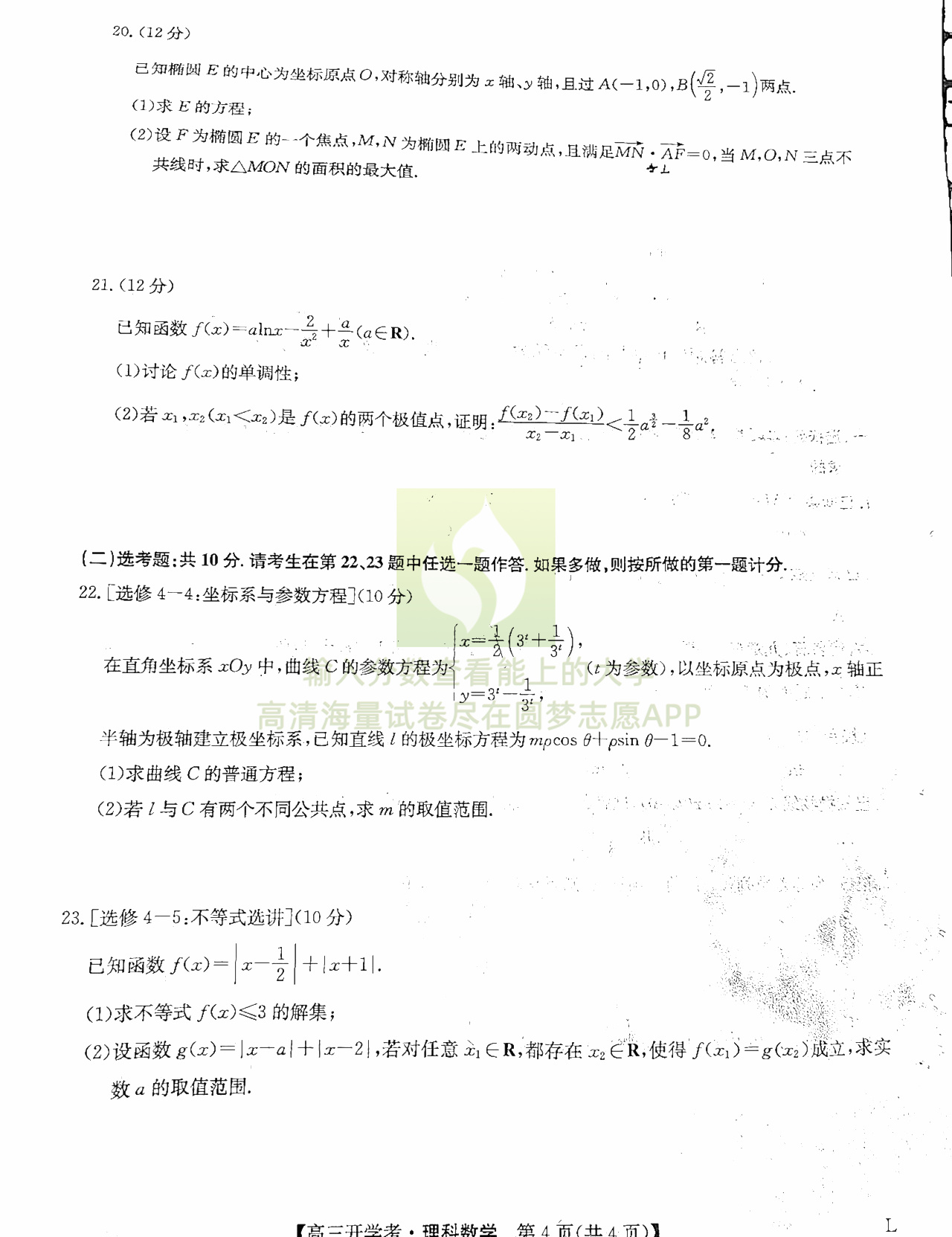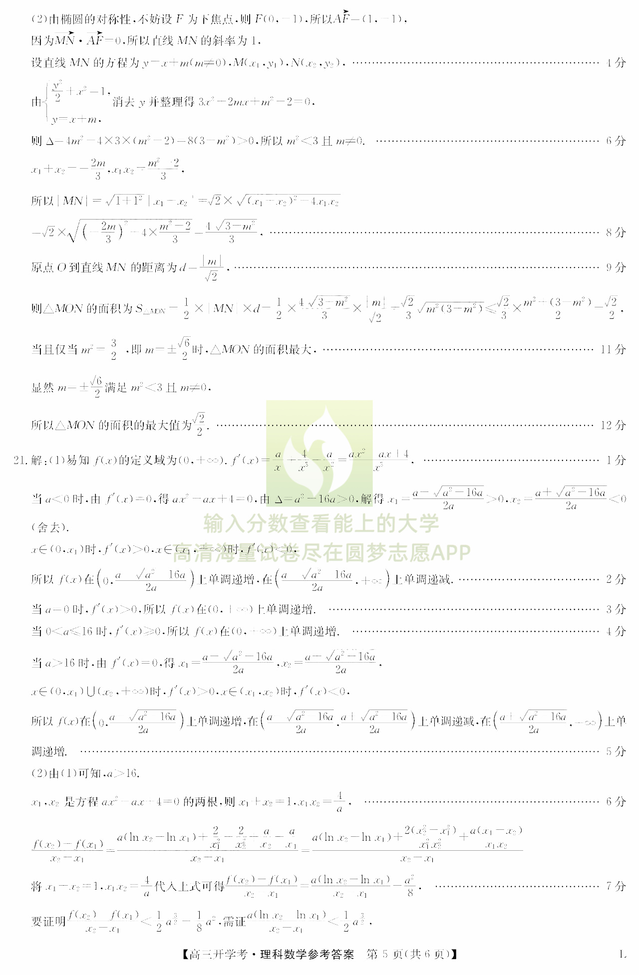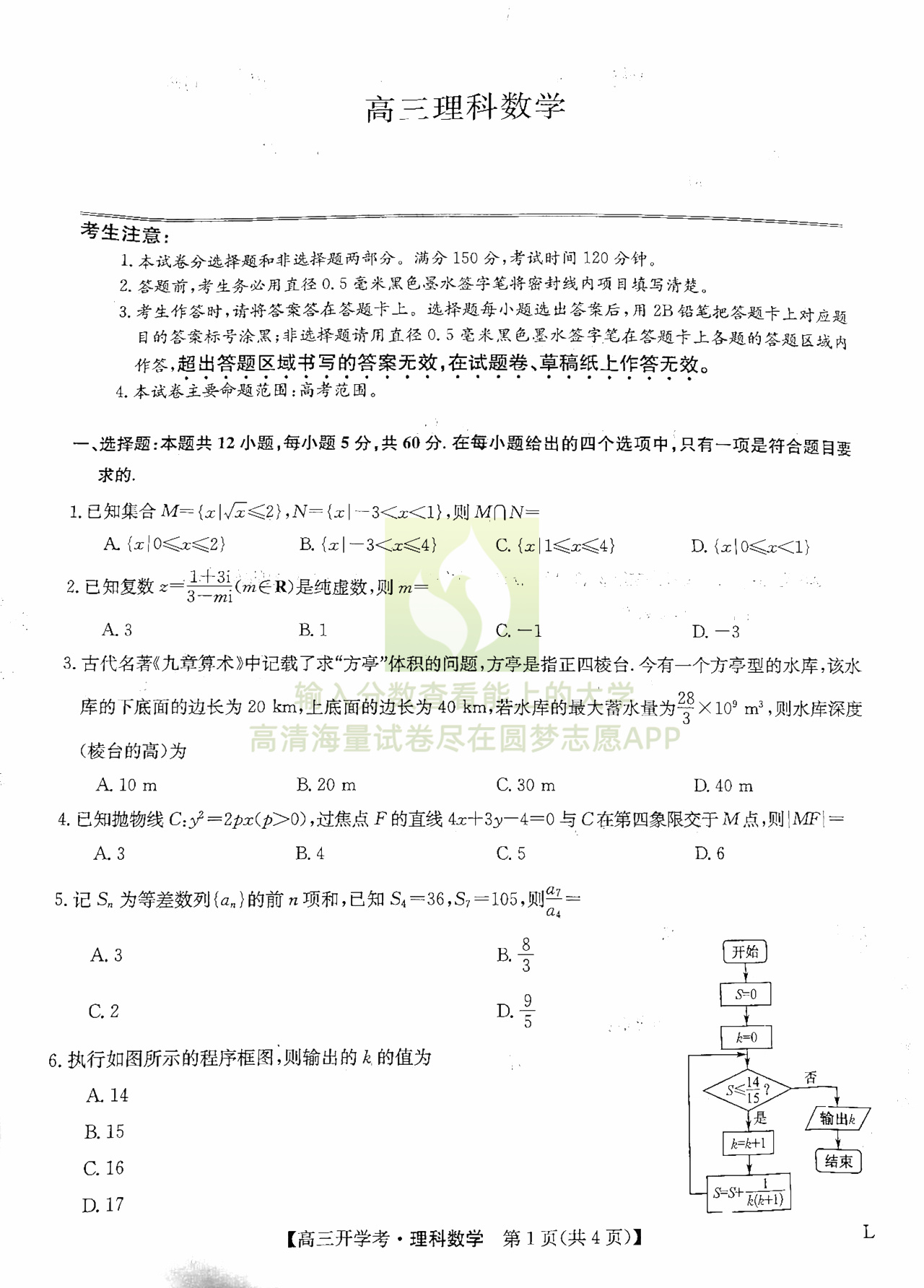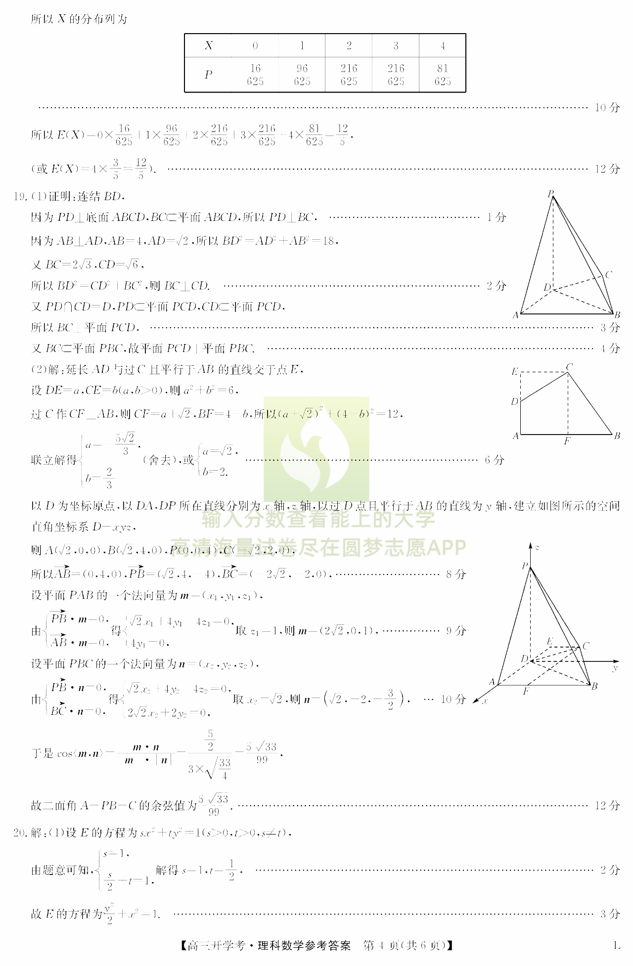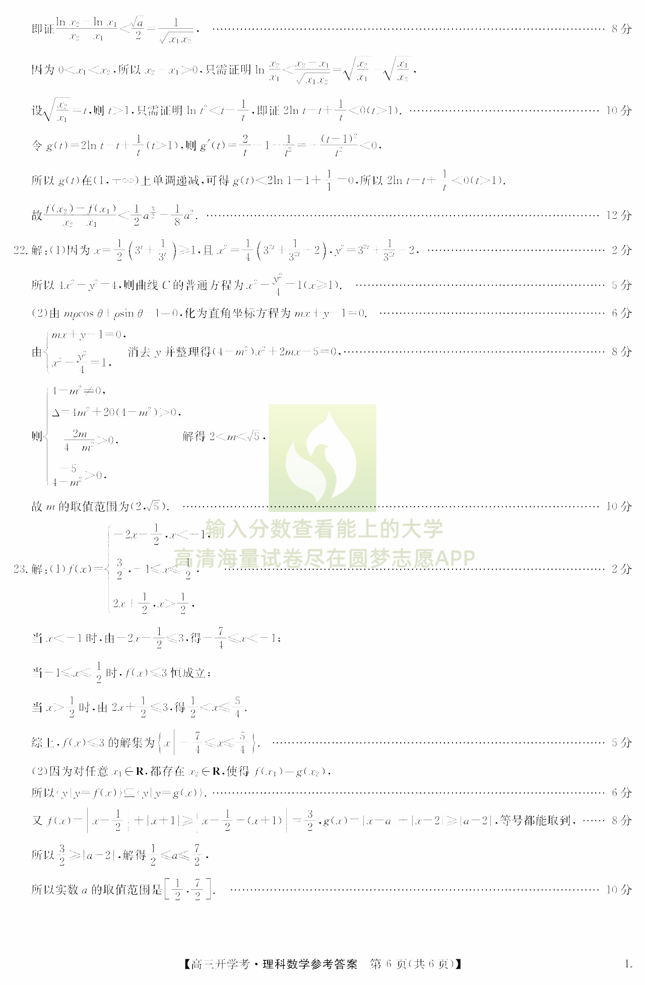 三、理科数学试卷答案汇总