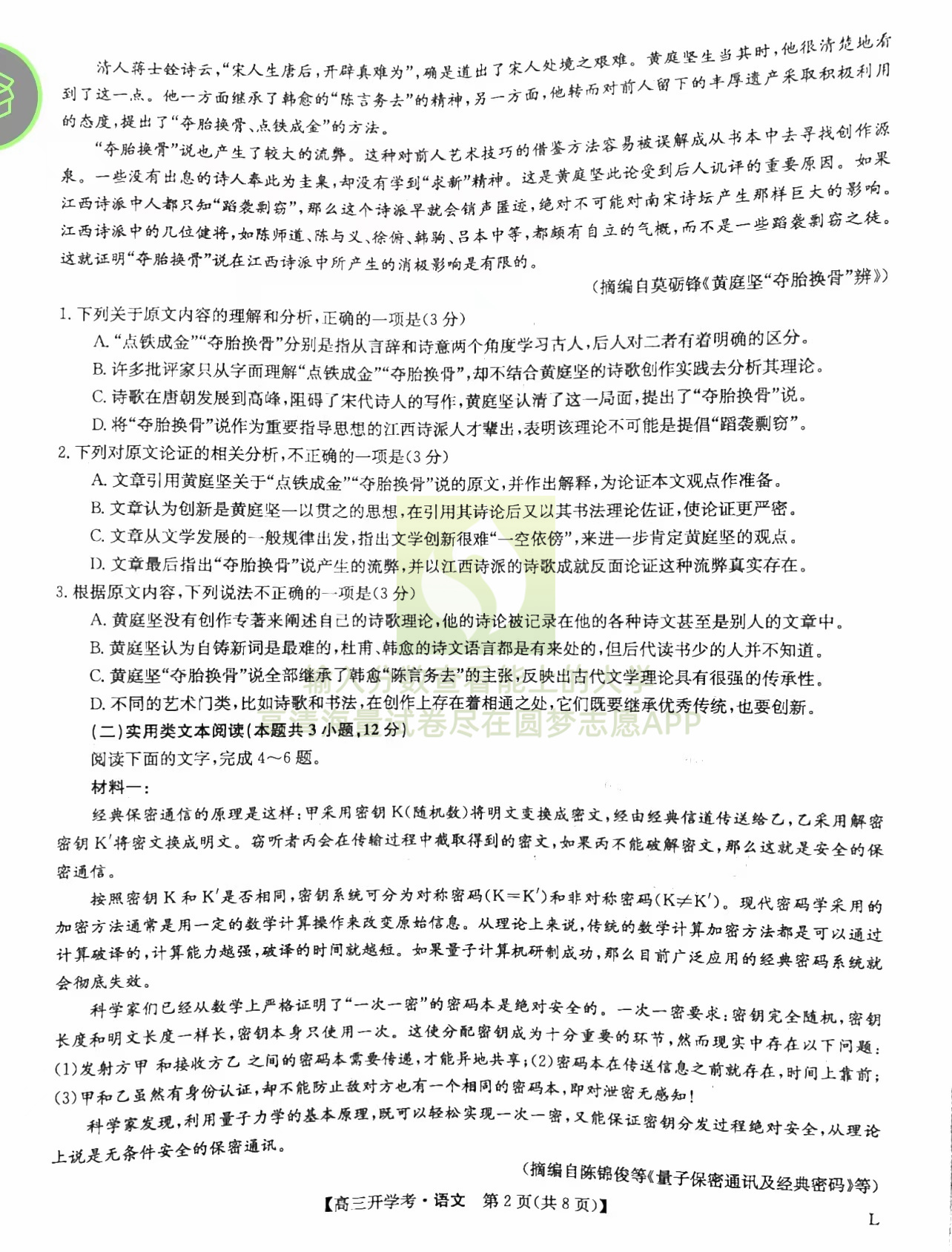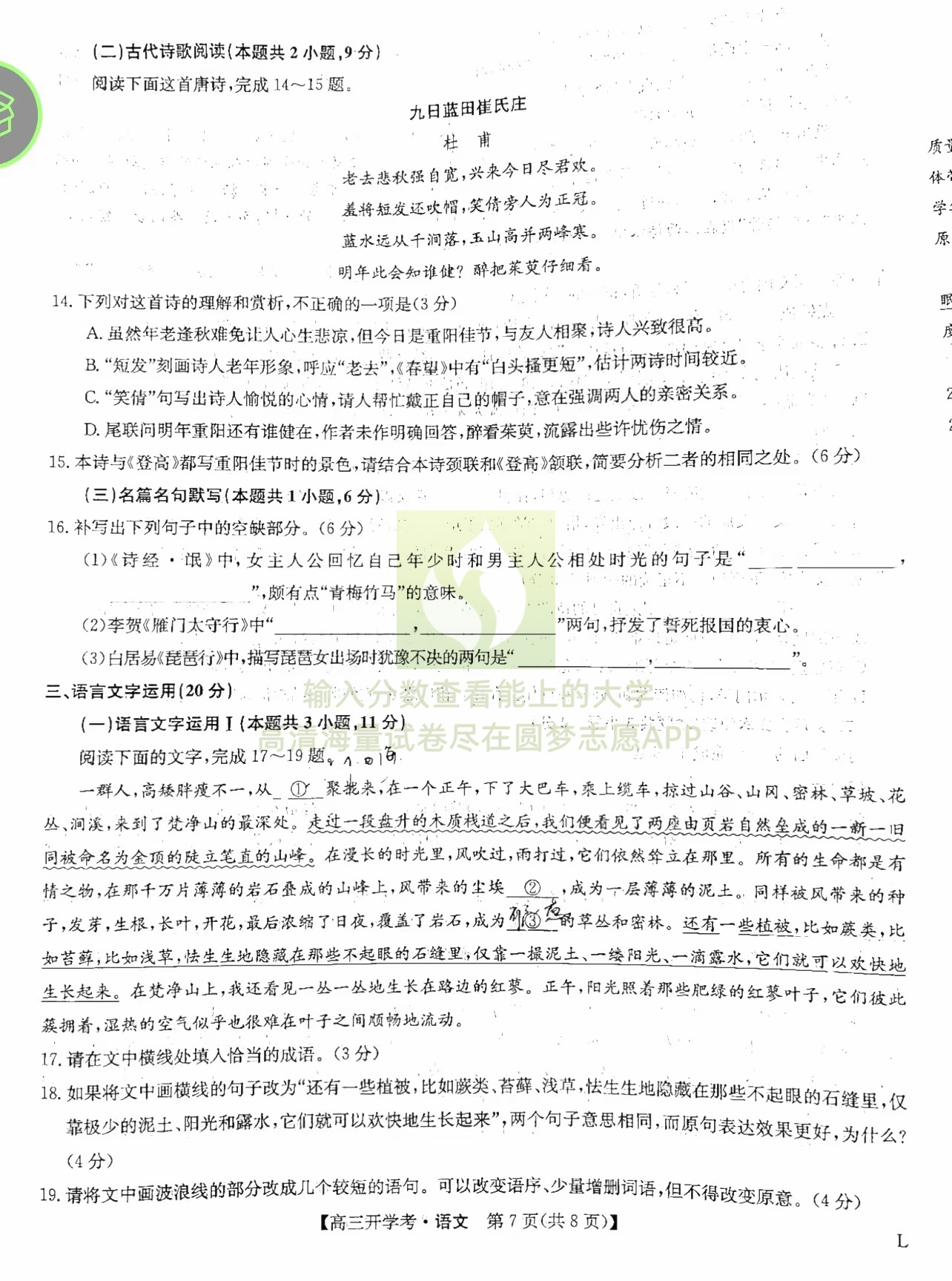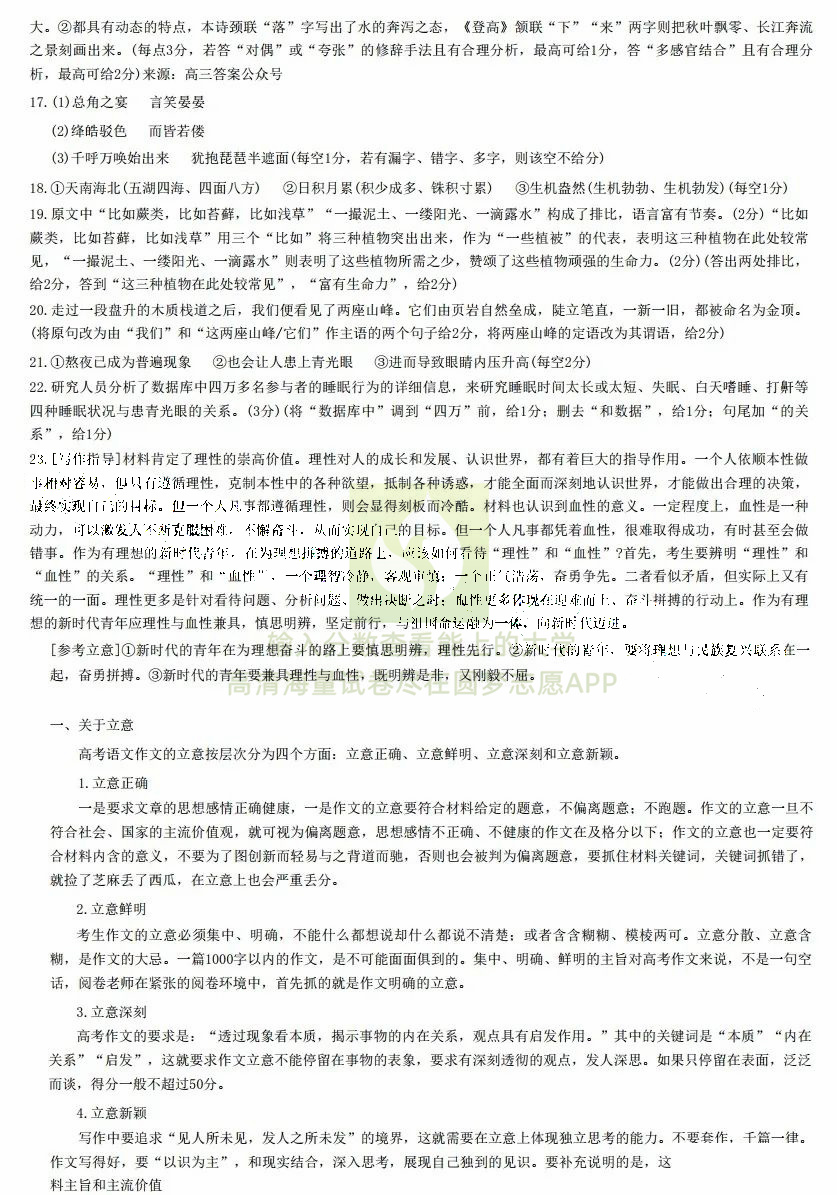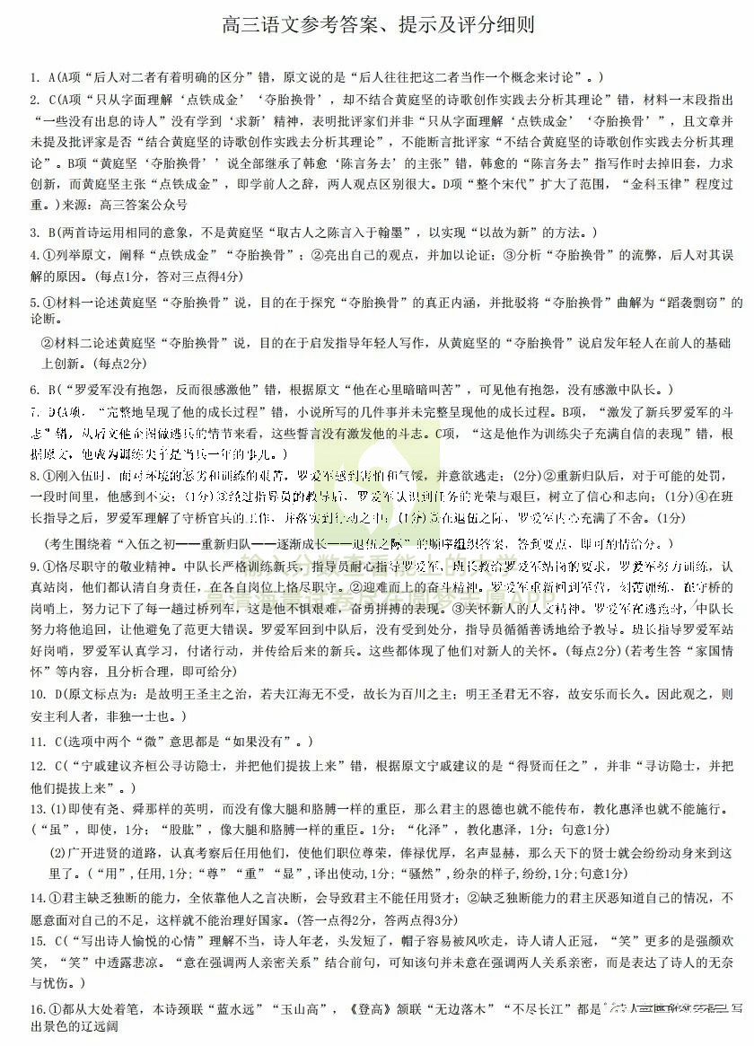 一、语文试卷答案汇总