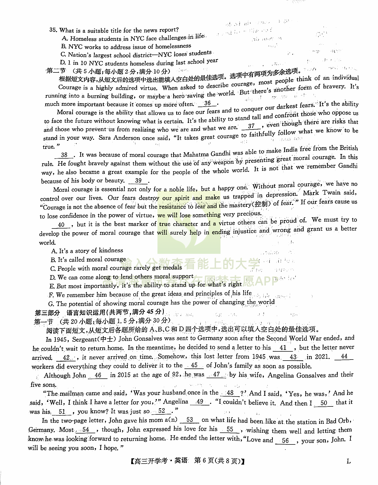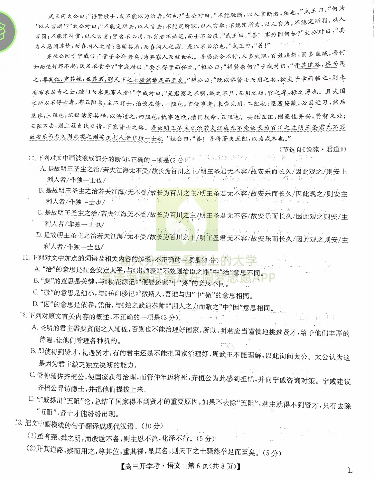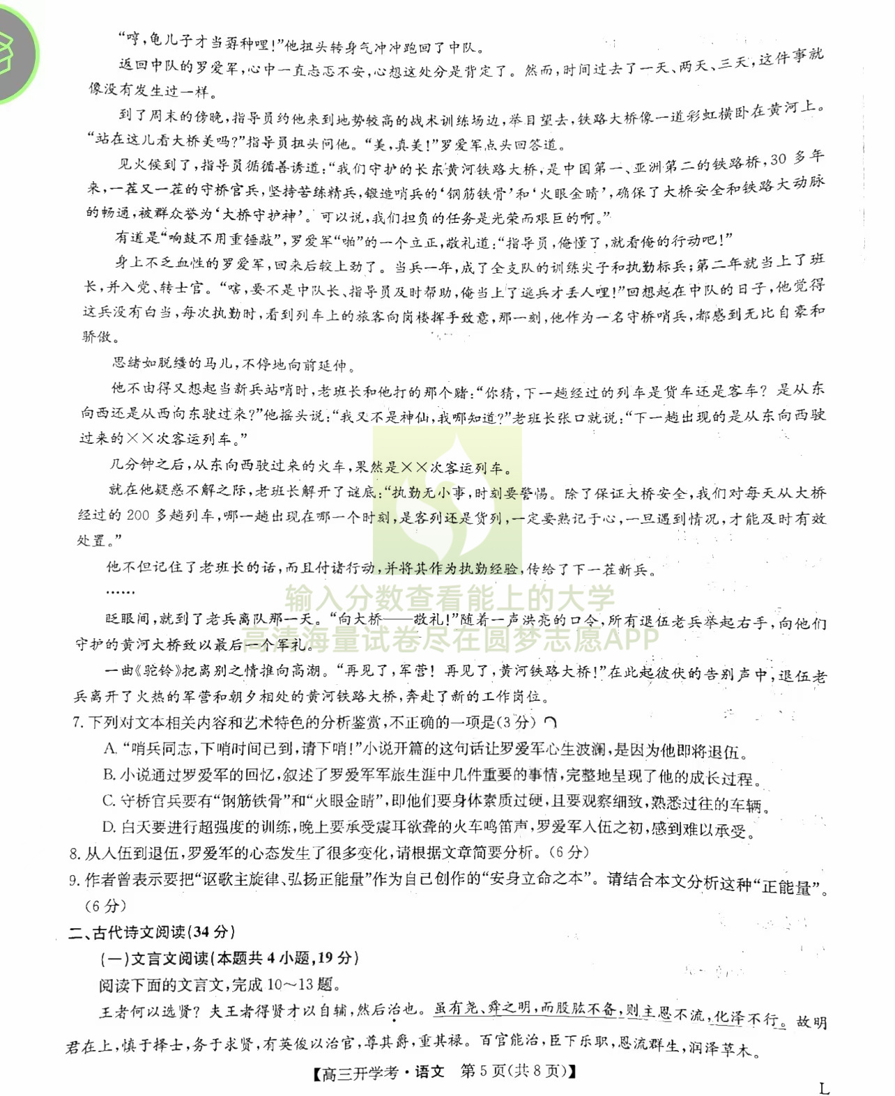 一、语文试卷答案汇总