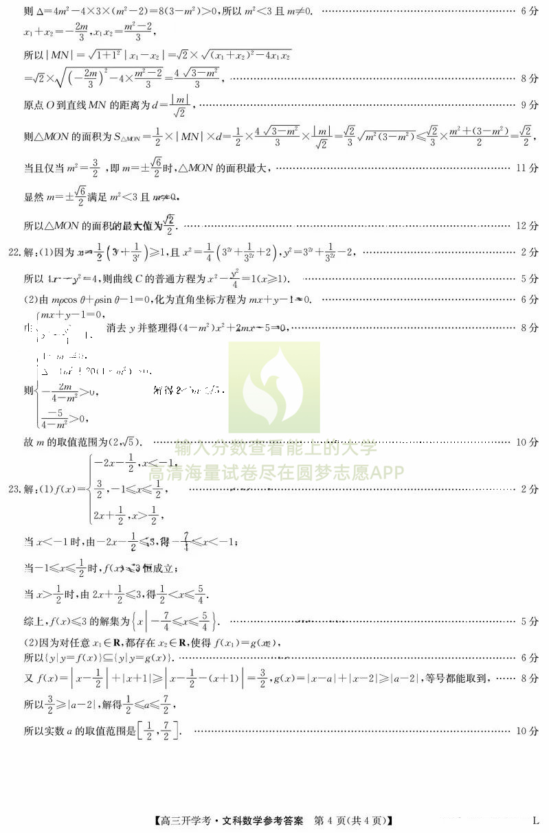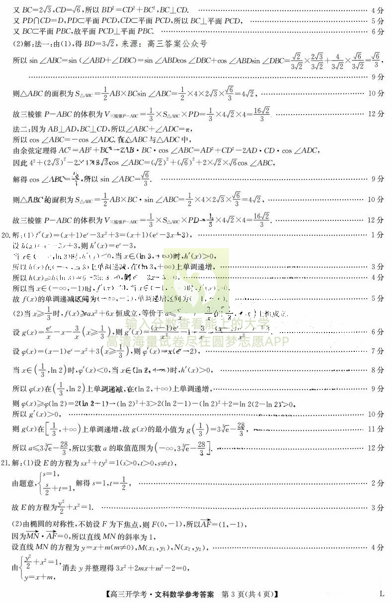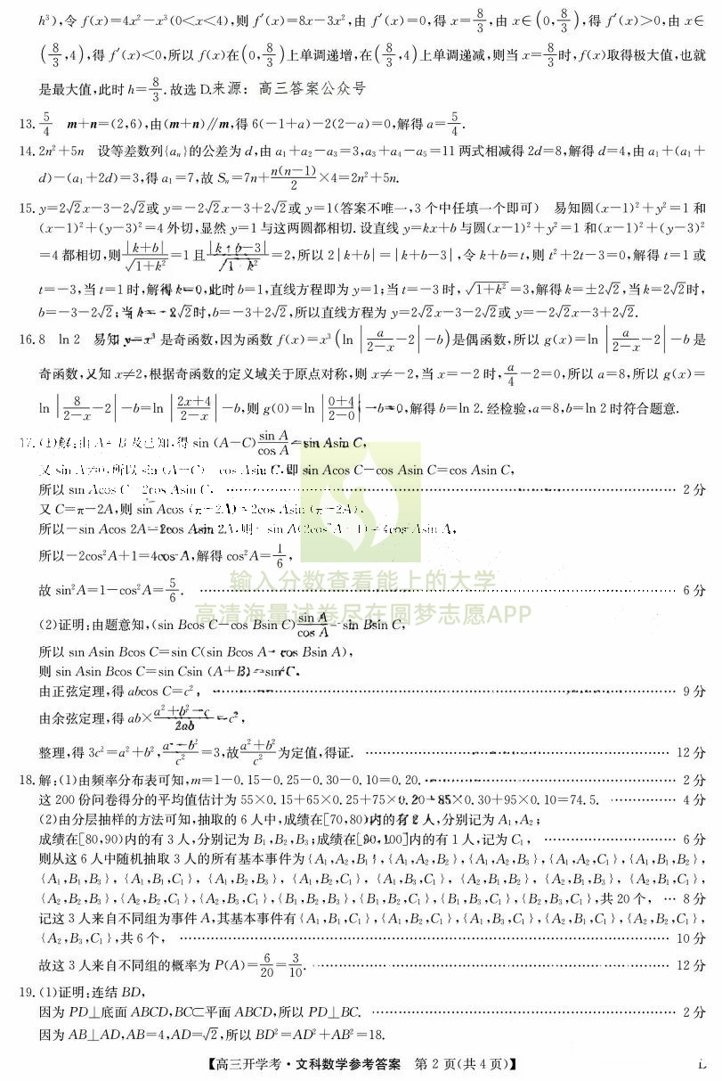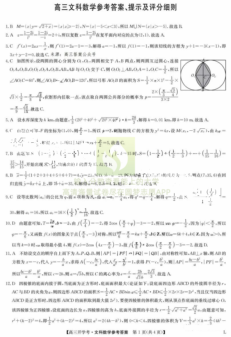 二、文科数学试卷答案汇总