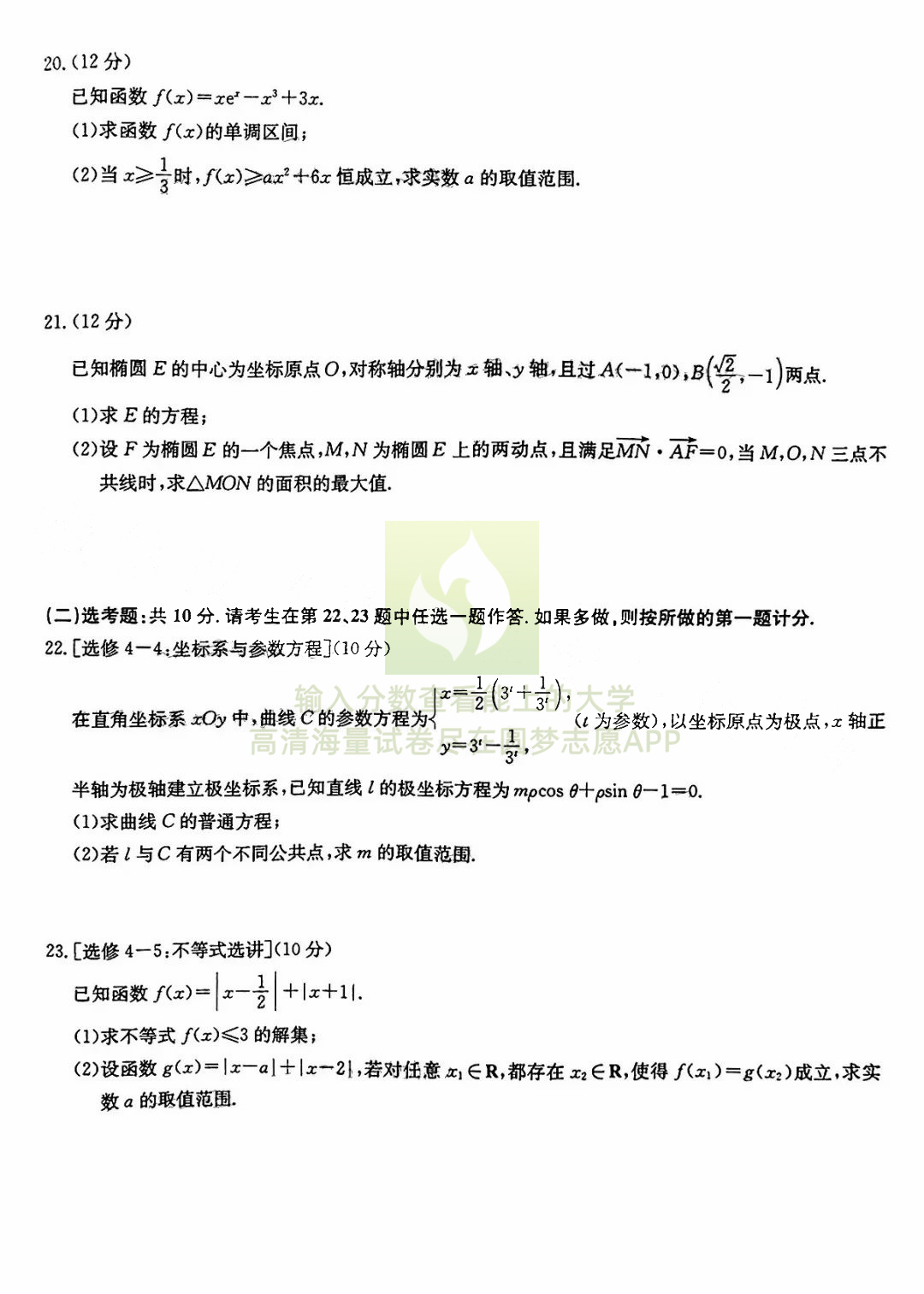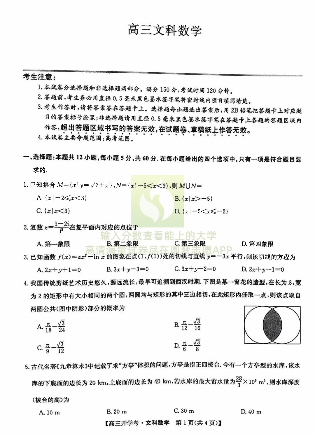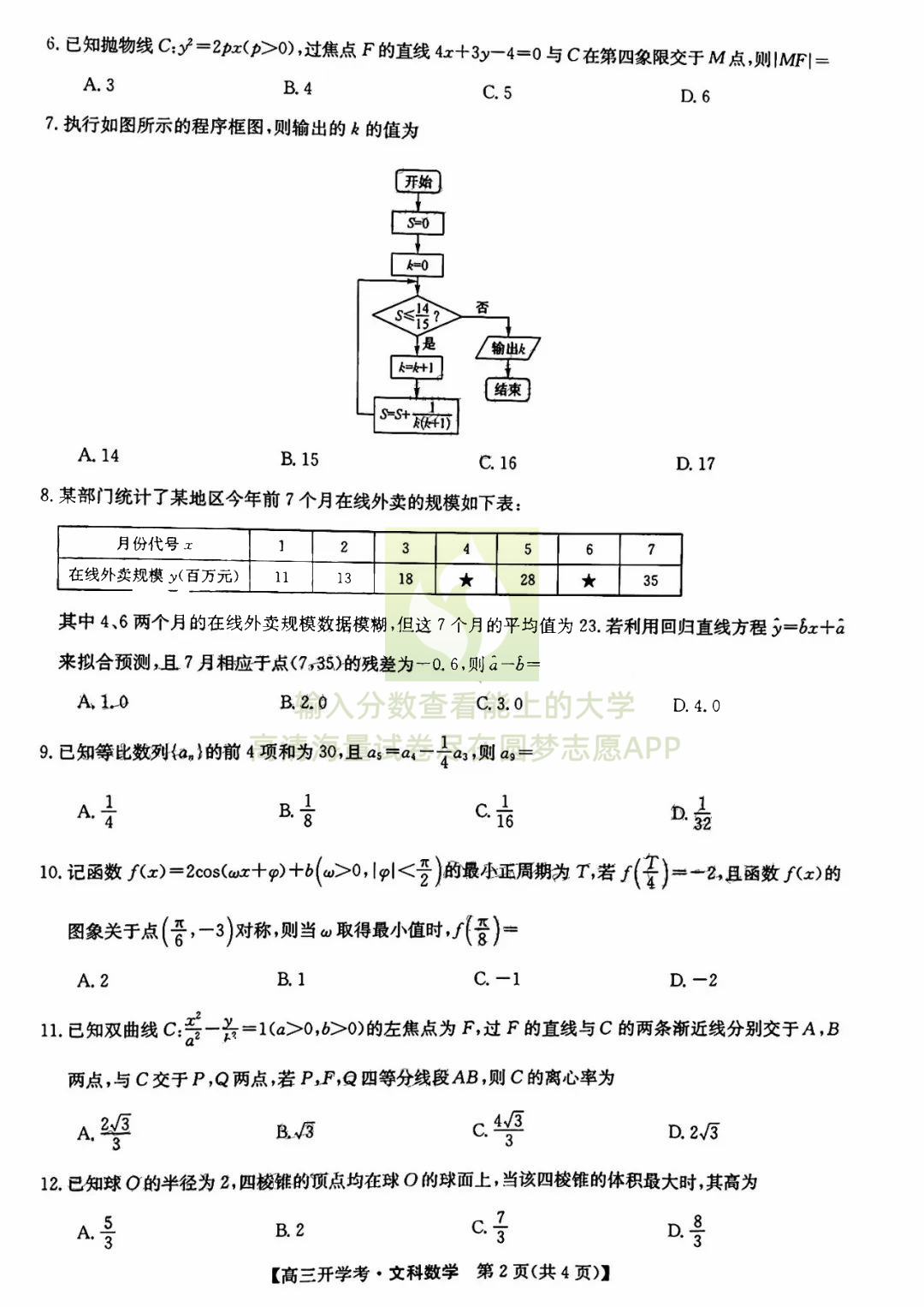 二、文科数学试卷答案汇总