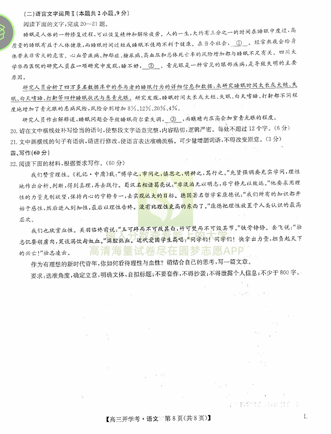 六、理科综合试卷答案汇总