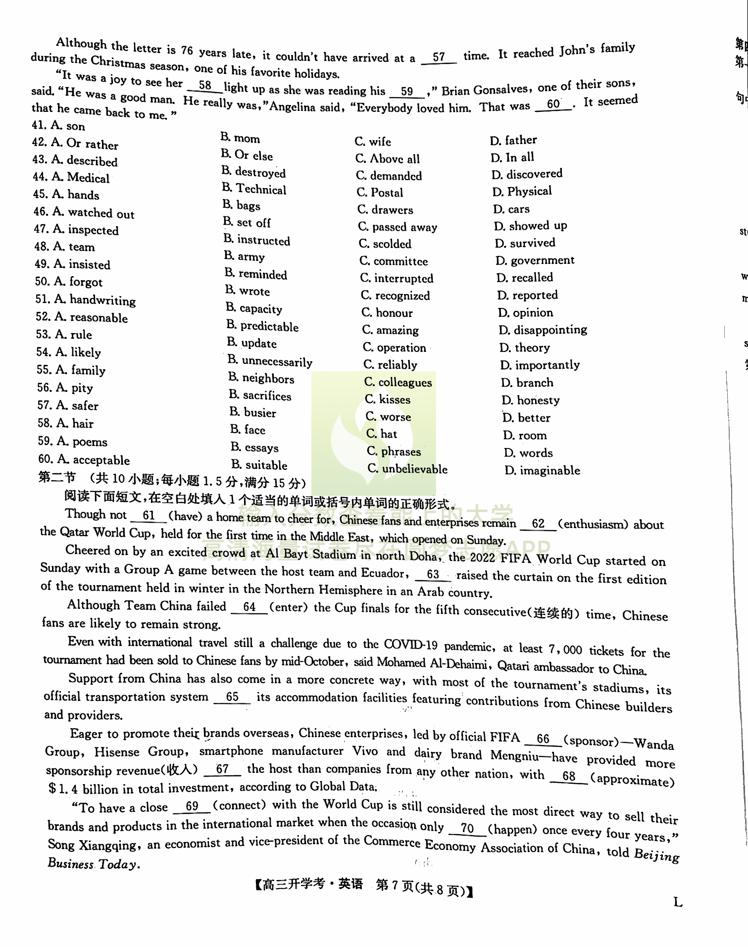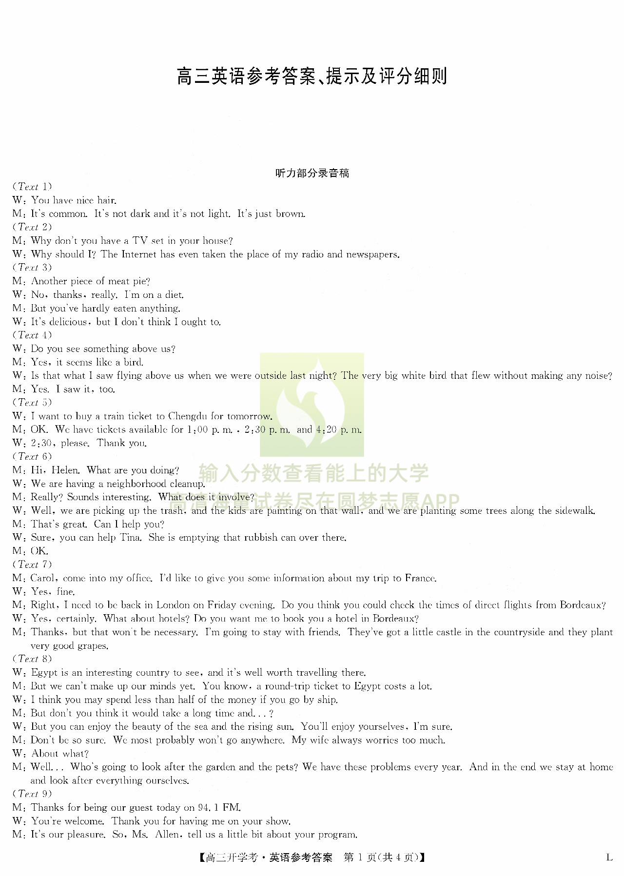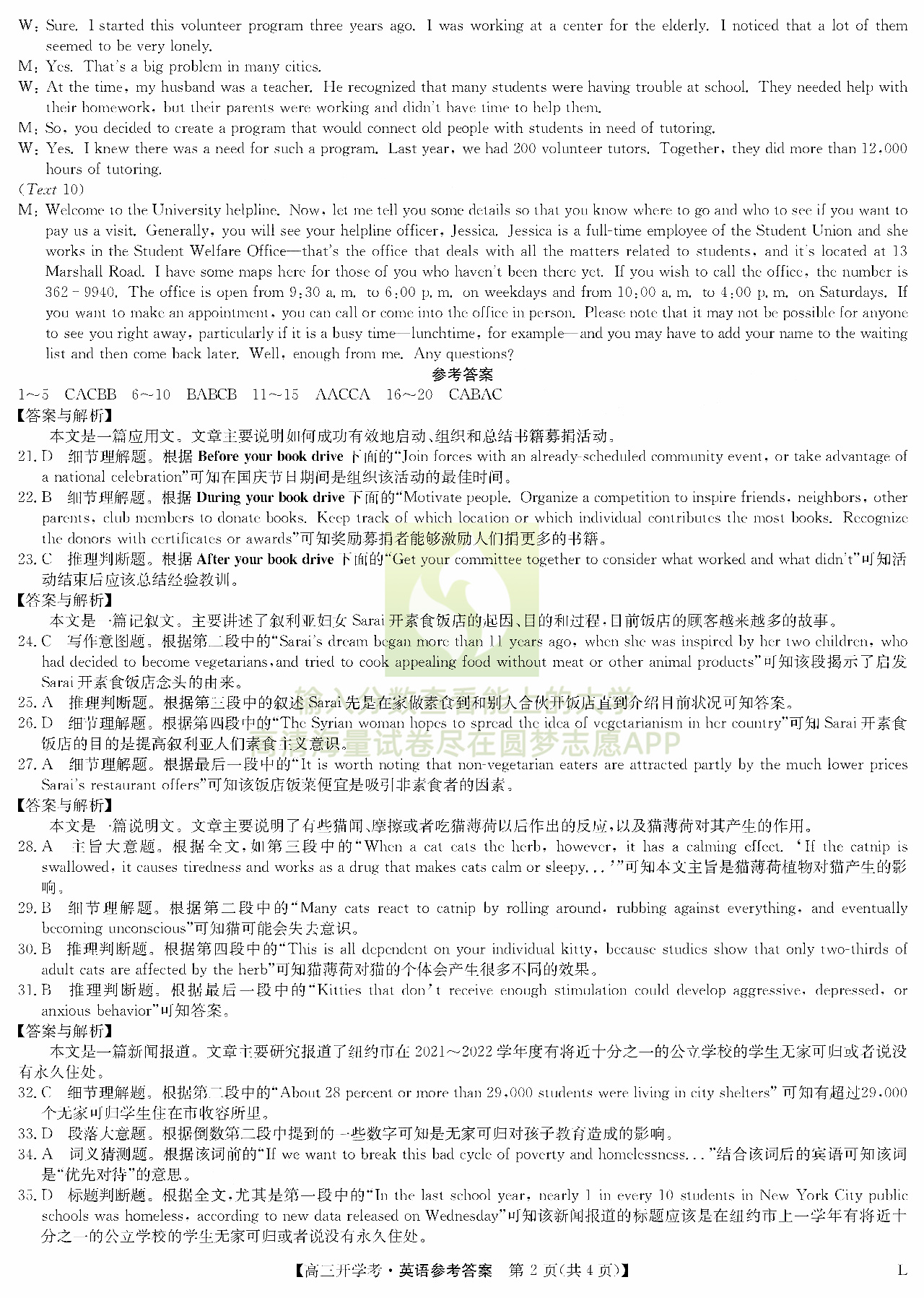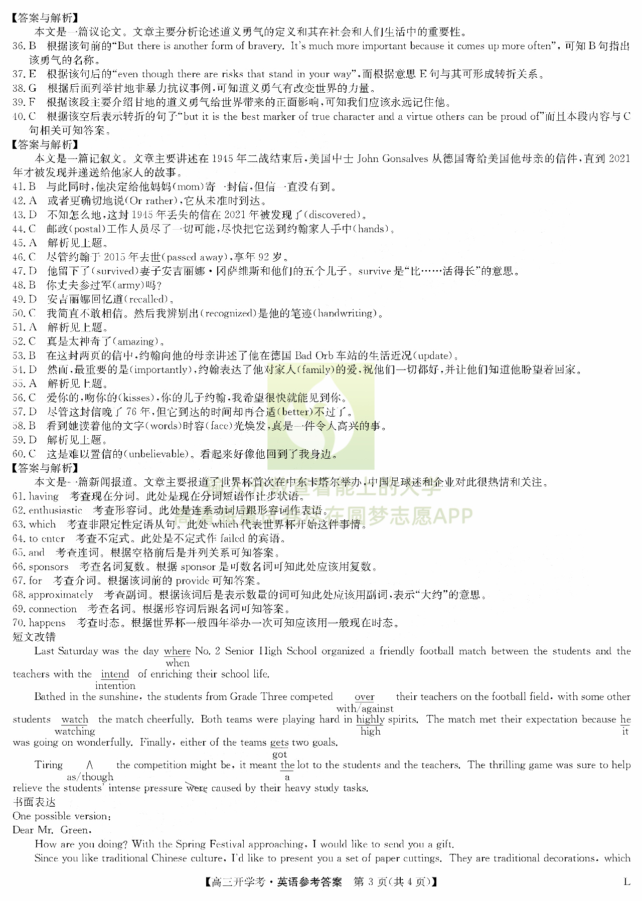 四、英语试卷答案汇总