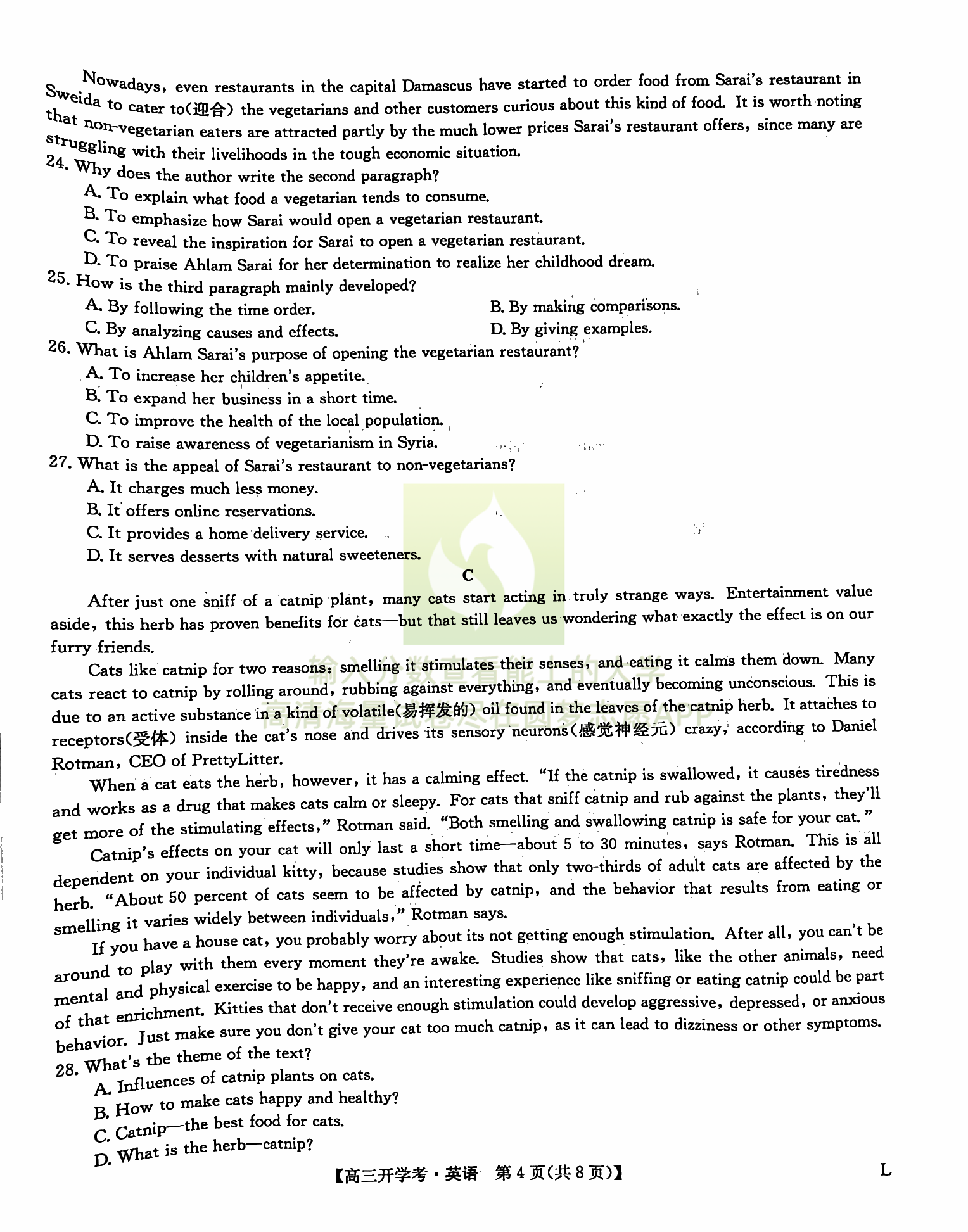 五、文科综合试卷答案汇总