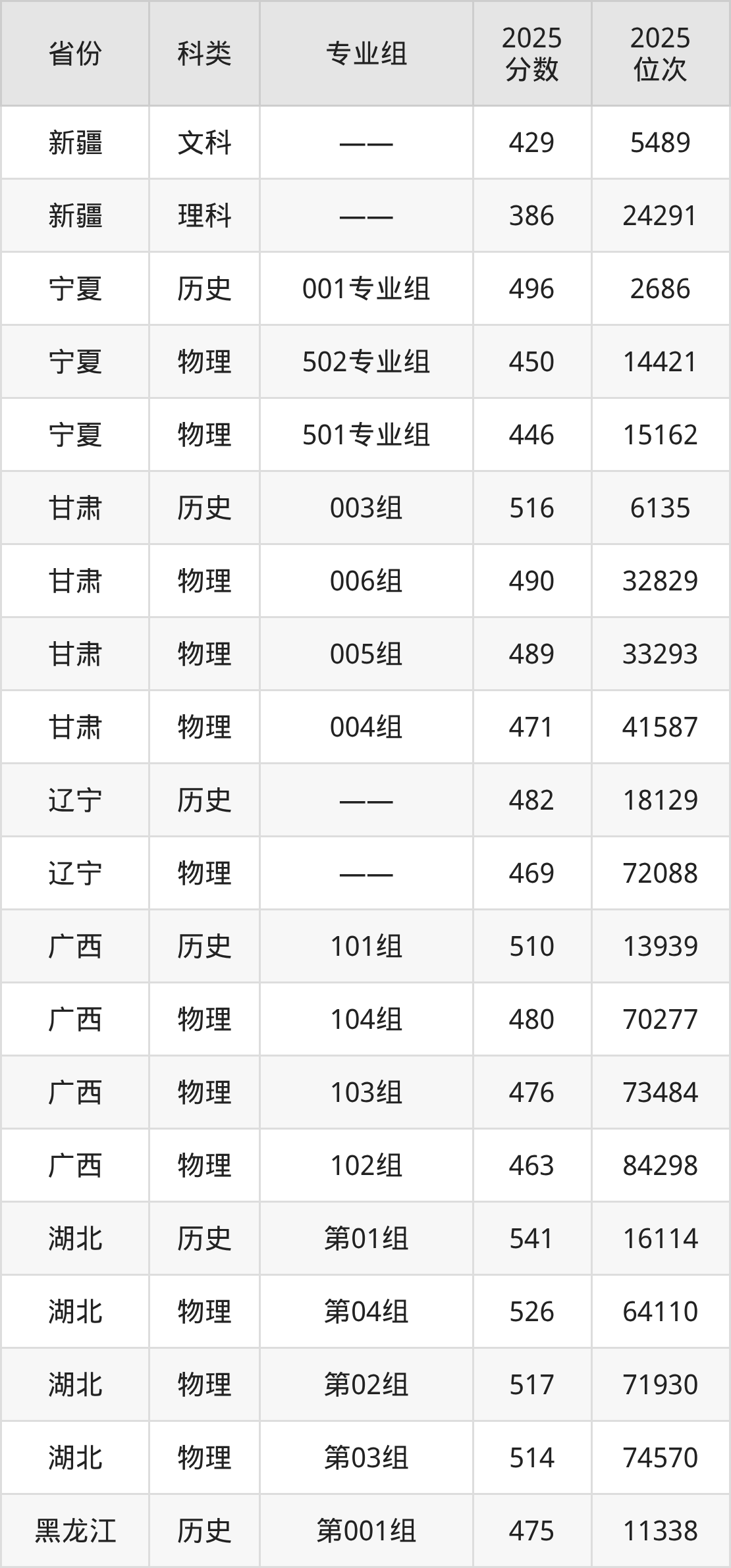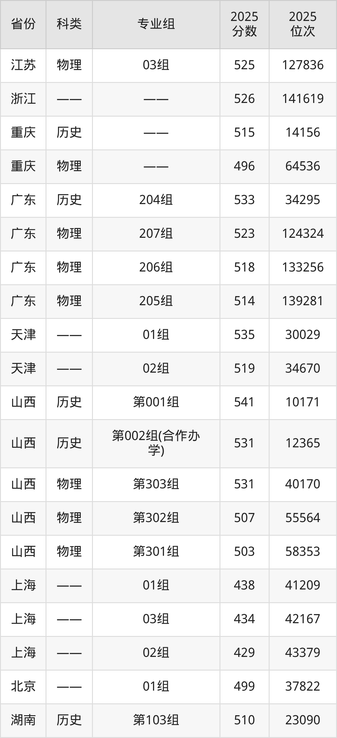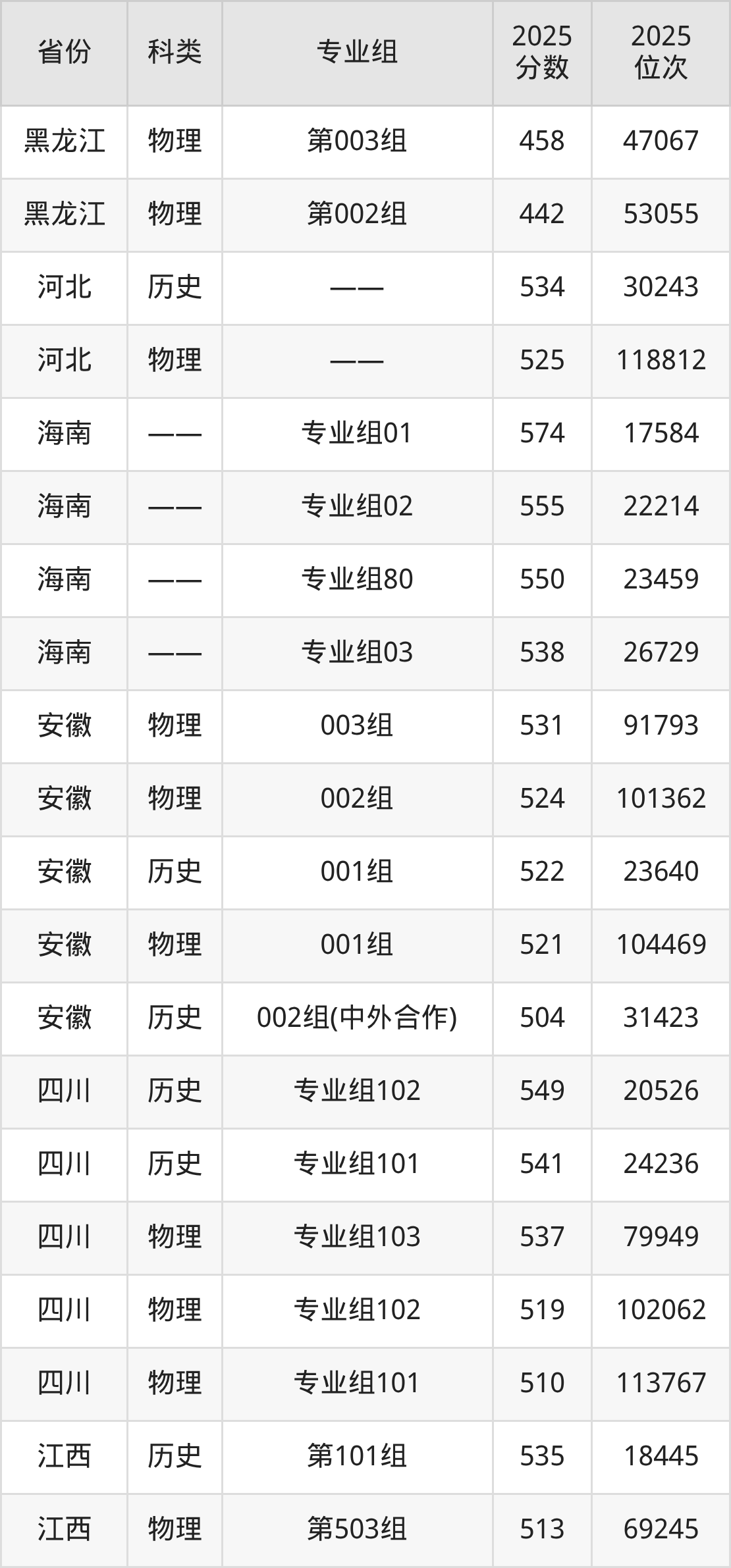 除上述省份外,河北地质大学2025各省录取最低分详情见下: