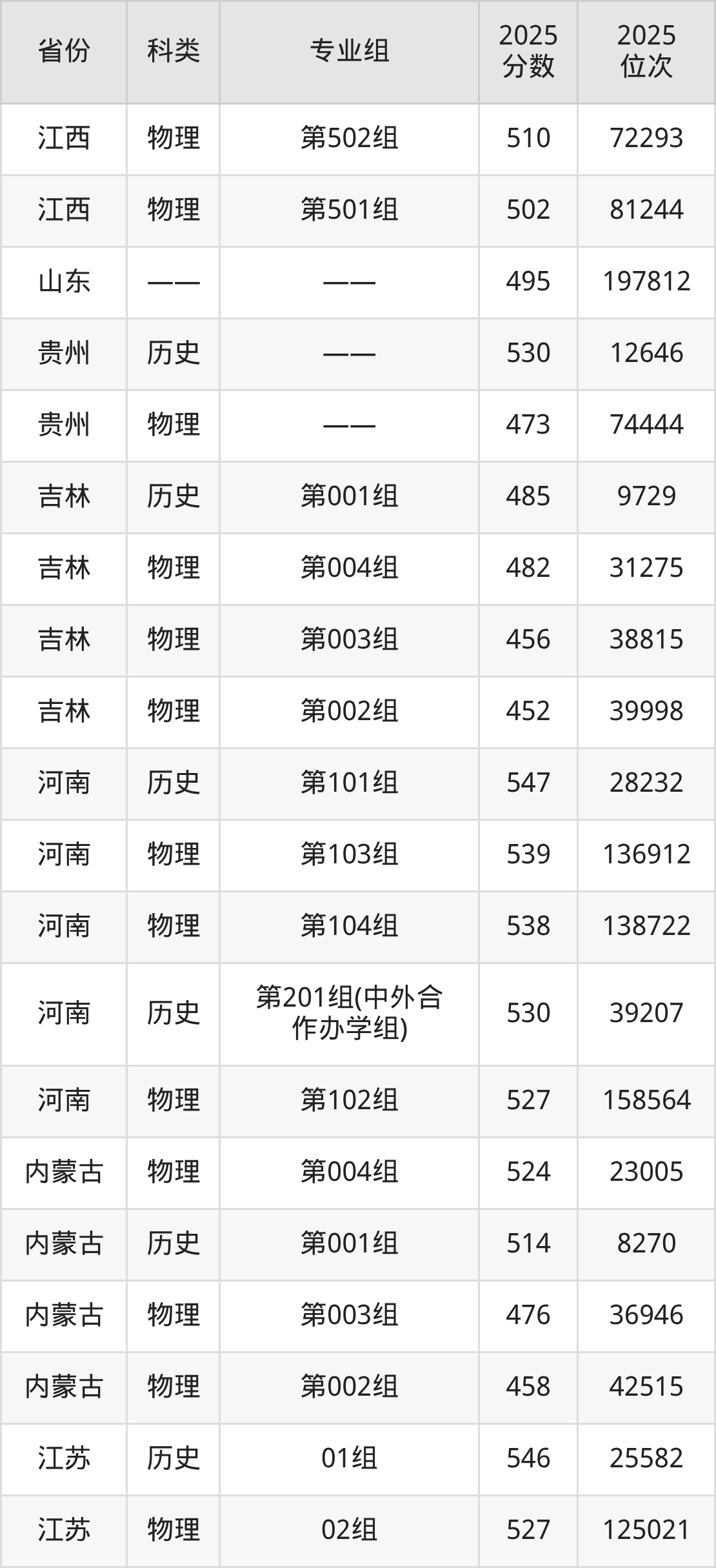 5、吉林:最低分452分,对应最低分专业组为物理类第002组,位次39998名;