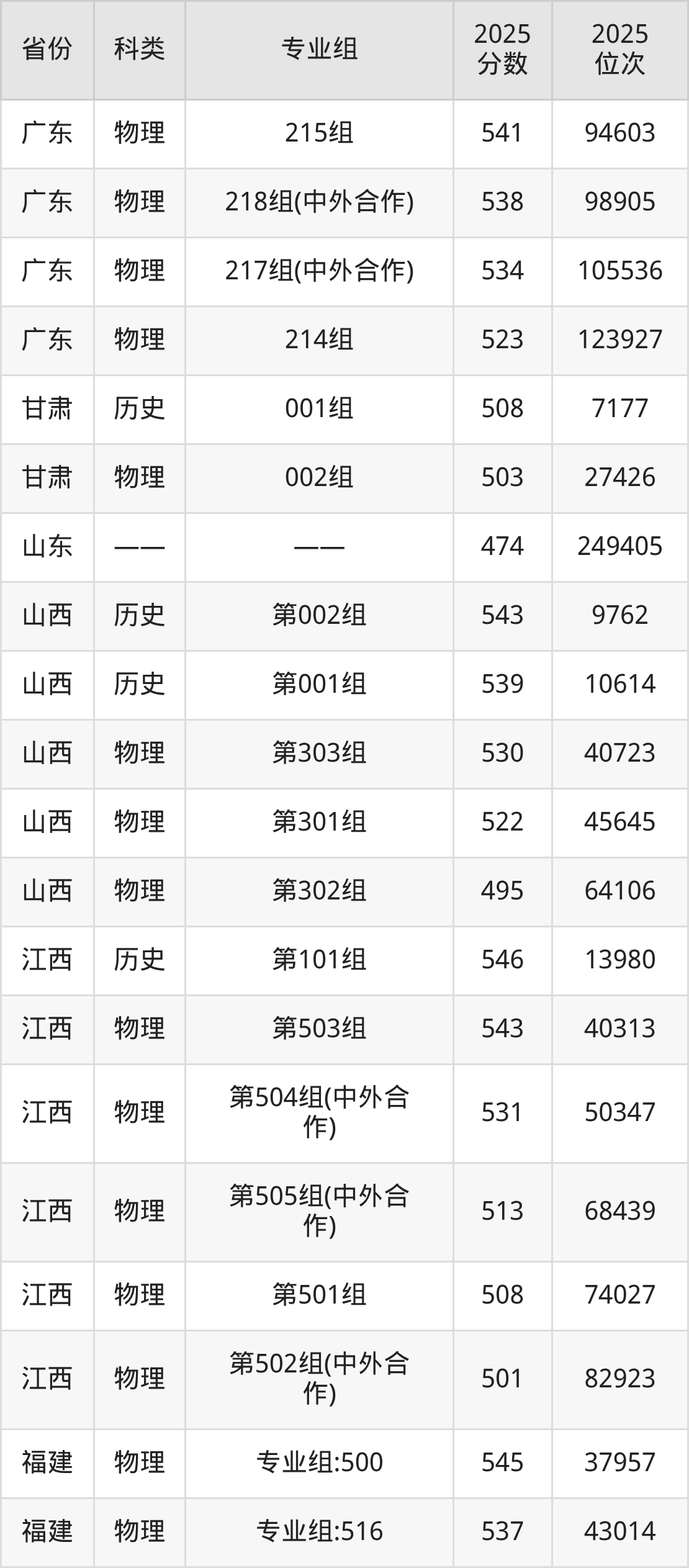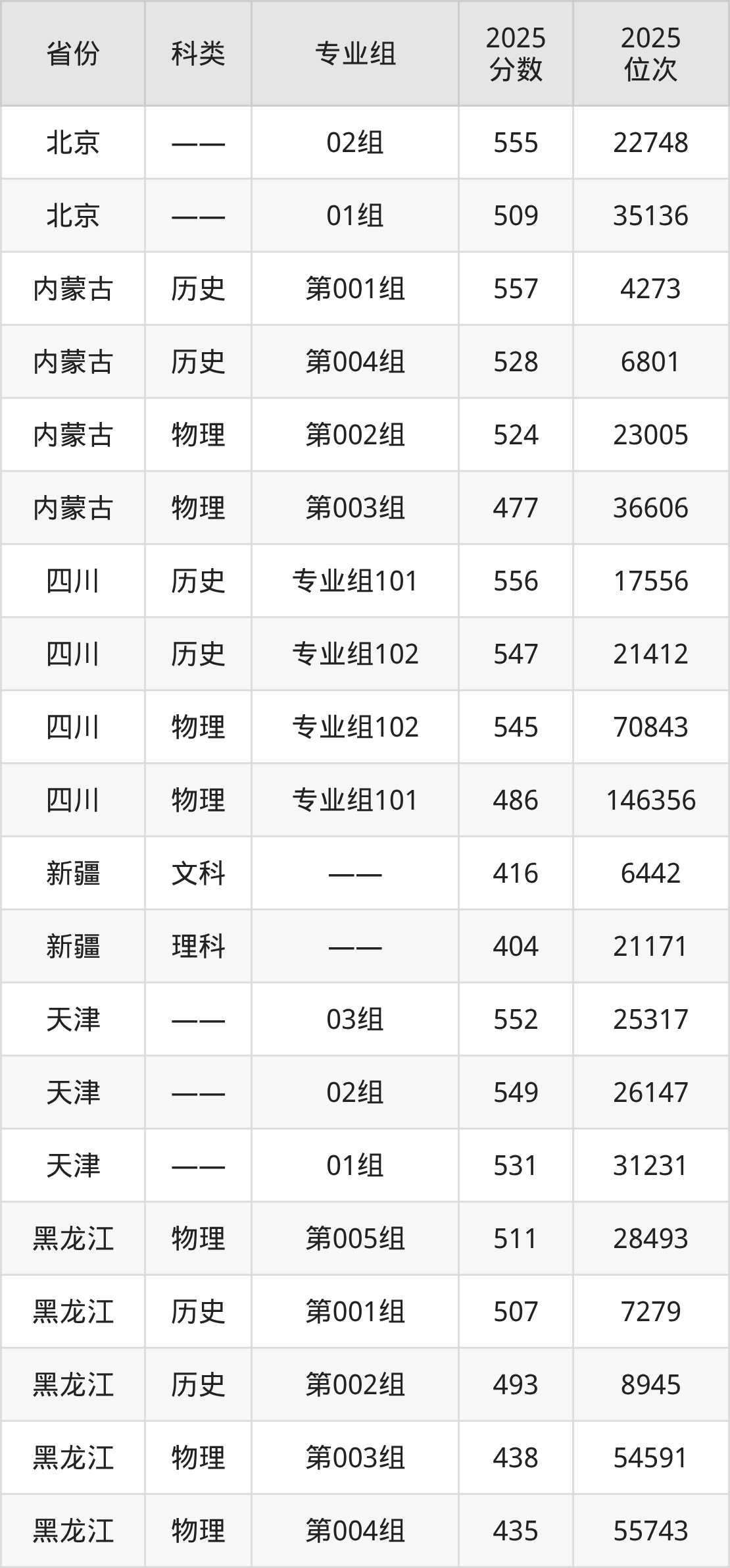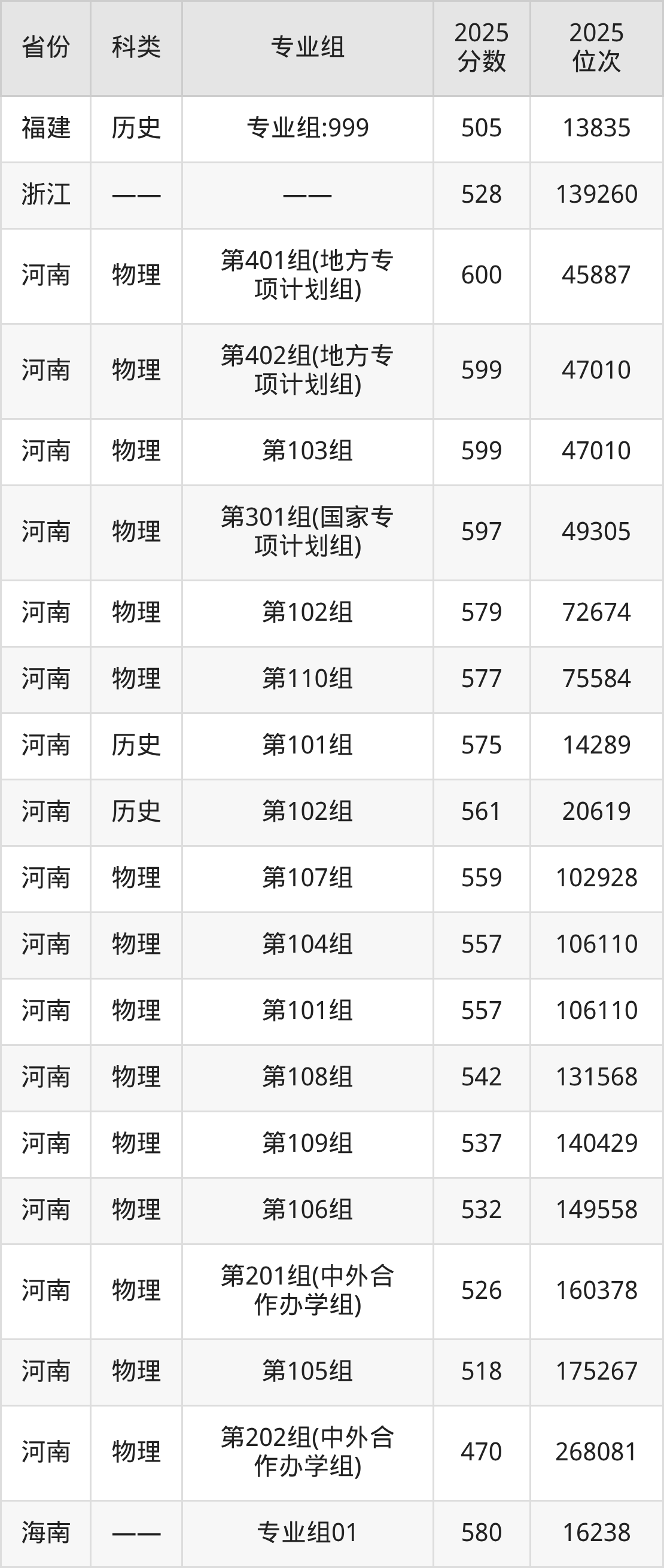 除上述省份外,河南科技大学2025各省录取最低分详情见下: