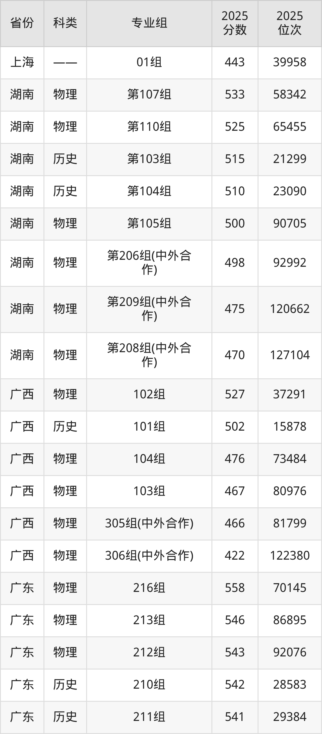 2、广西:最低分422分,对应最低分专业组为物理类306组(中外合作),位次122380名;