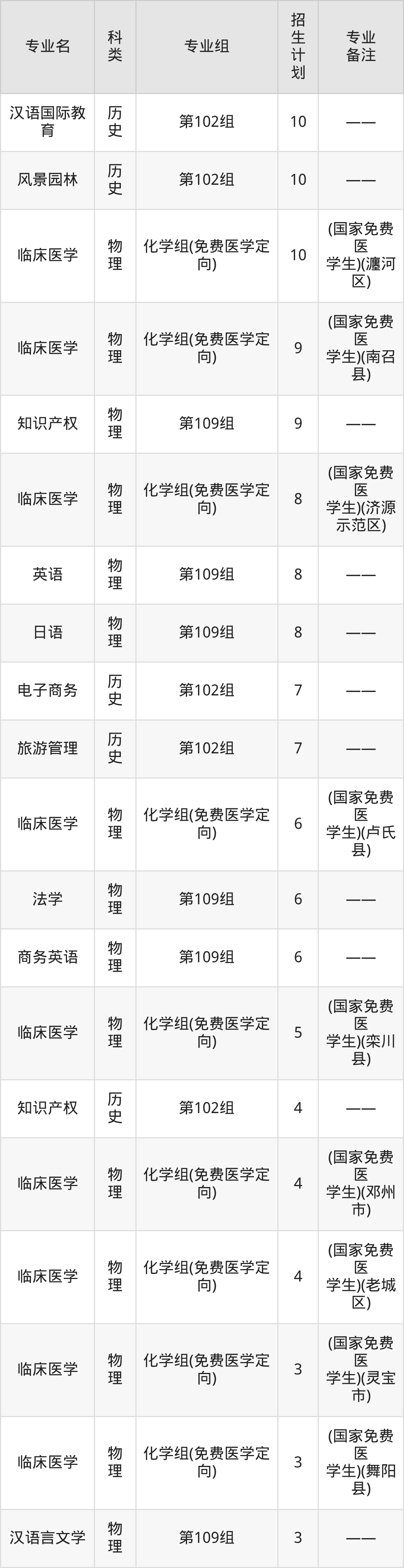 值得注意的是,河南科技大学在本科批、本科提前批招生,招生类型为物理类、历史类。篇幅有限,这里仅附上河南科技大学在河南省内招生计划详情: