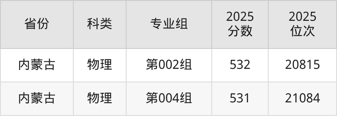 3、内蒙古:最低分531分,对应最低分专业组为物理类第004组,位次21084名;