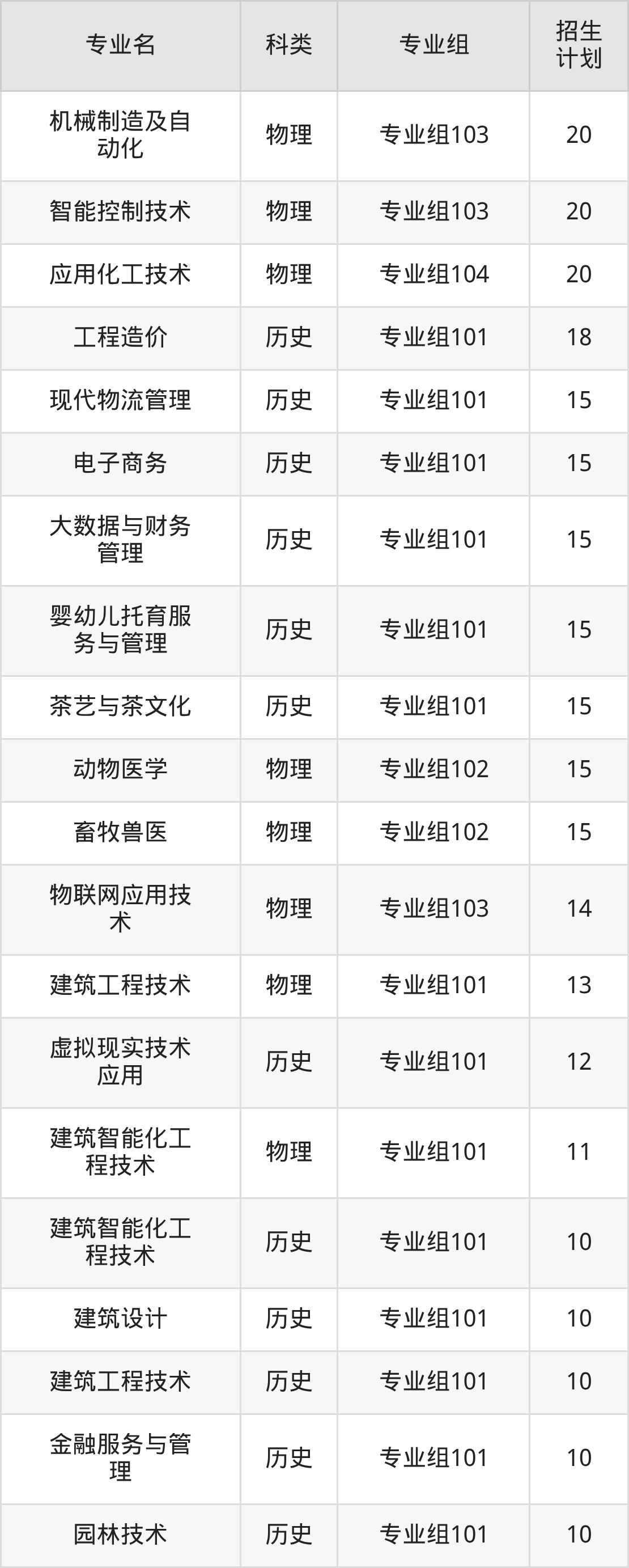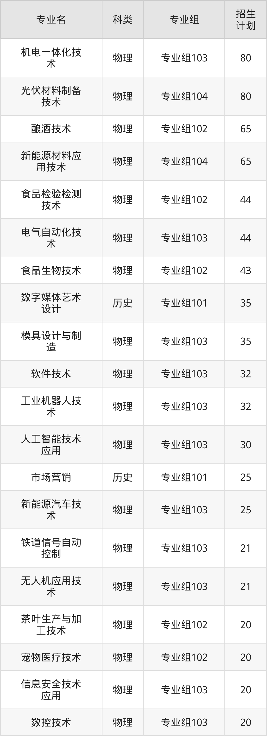 值得注意的是,宜宾职业技术学院在专科批招生,招生类型为物理类、历史类。篇幅有限,这里仅附上宜宾职业技术学院在四川省内招生计划详情: