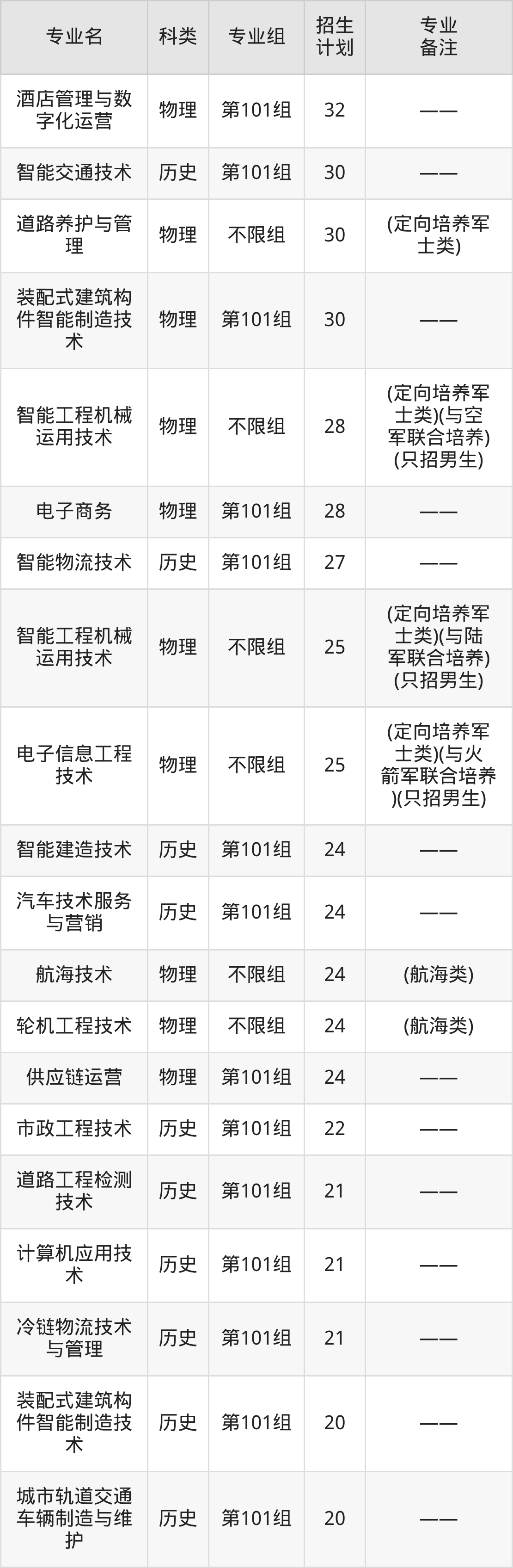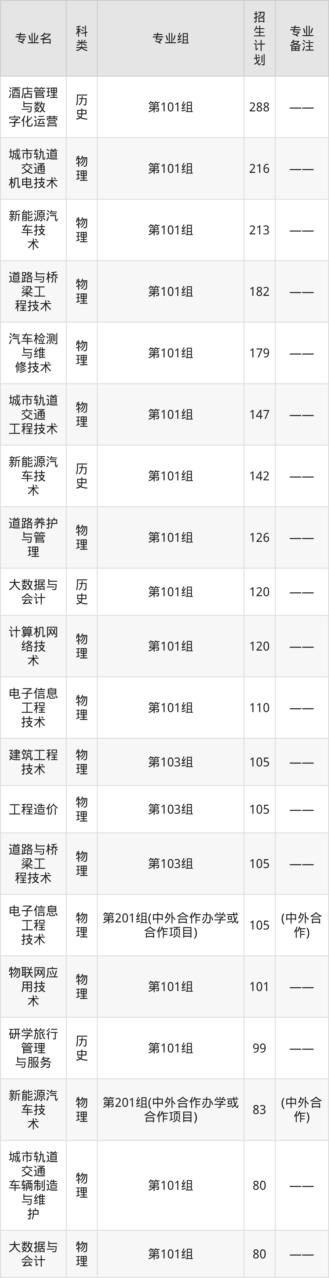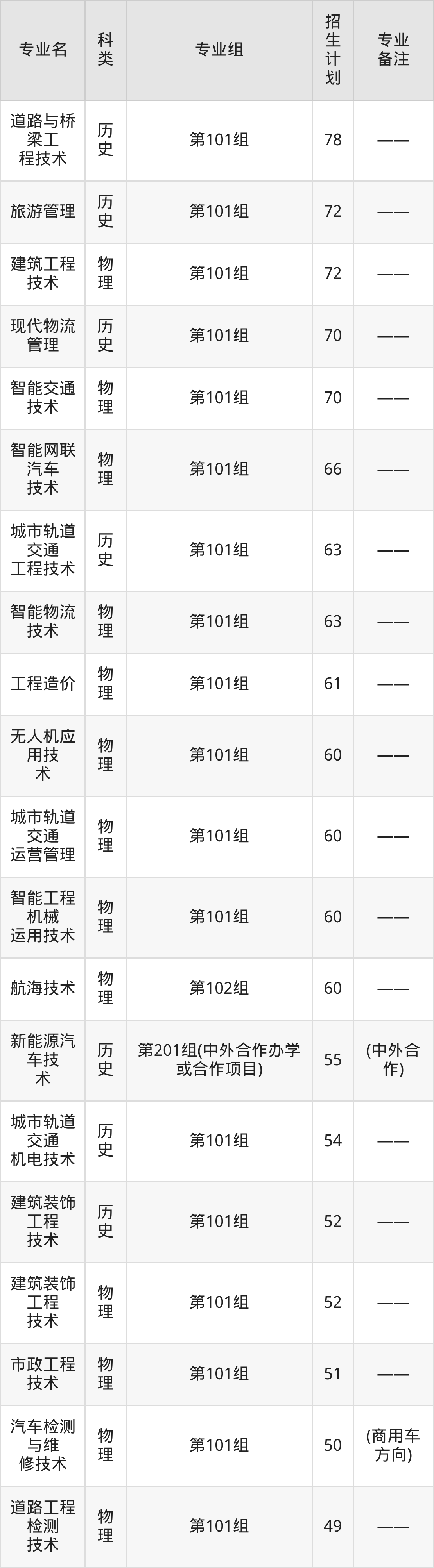 河南交通职业技术学院2025全国各省招生计划详情见下: