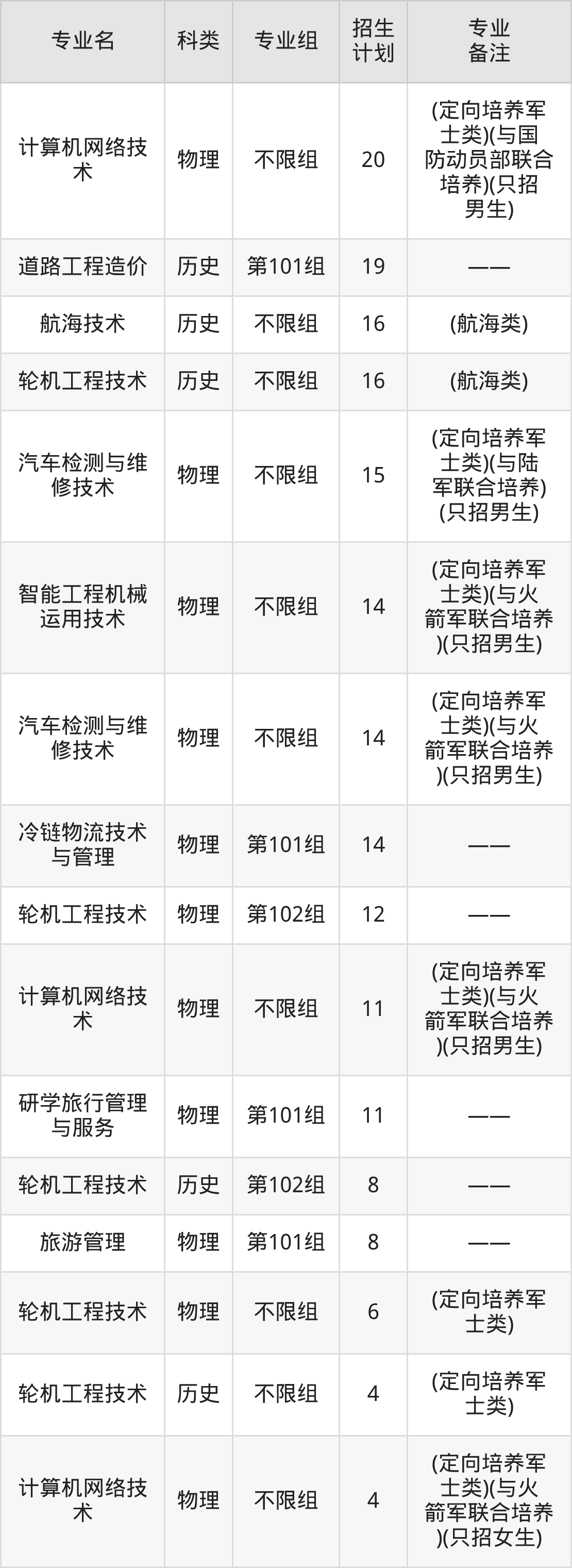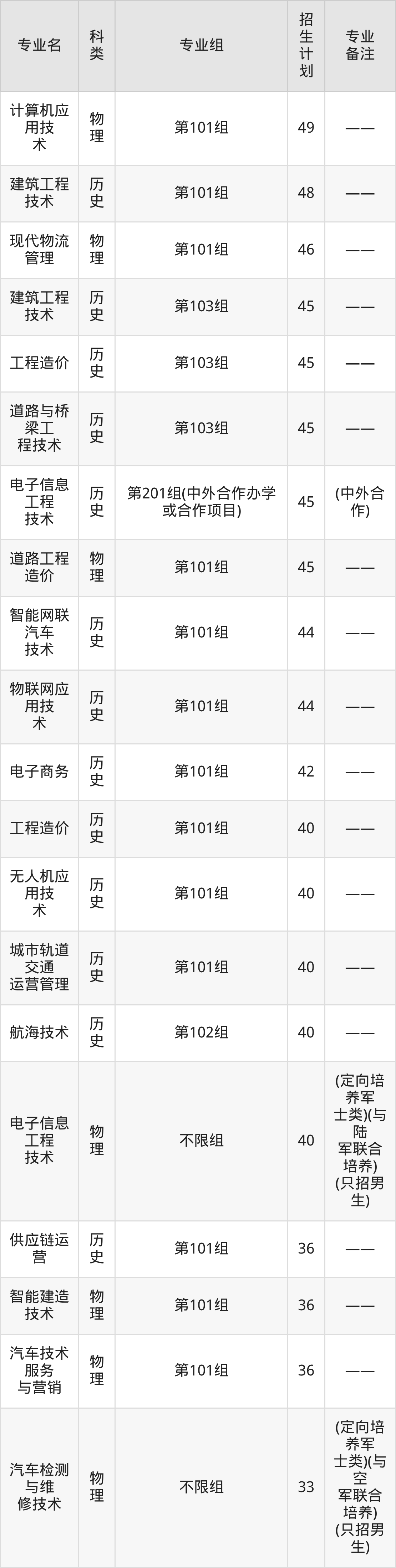 值得注意的是,河南交通职业技术学院在专科批、专科提前批招生,招生类型为历史类、物理类。篇幅有限,这里仅附上河南交通职业技术学院在河南省内招生计划详情: