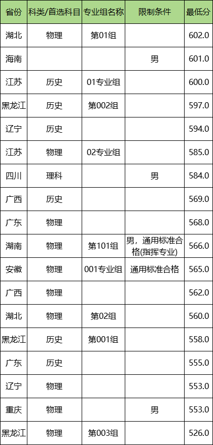 2024年陆军边海防学院在各省的招录分数都不一样,具体如下: