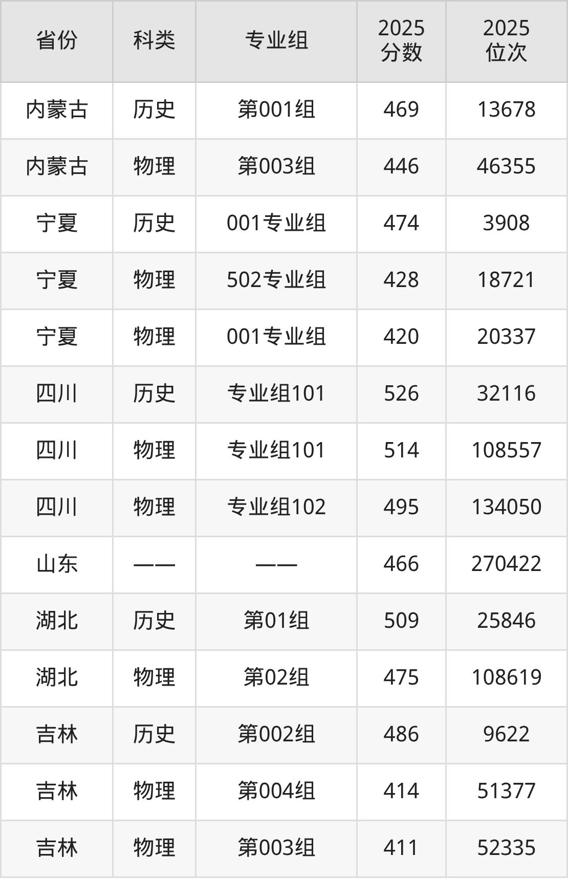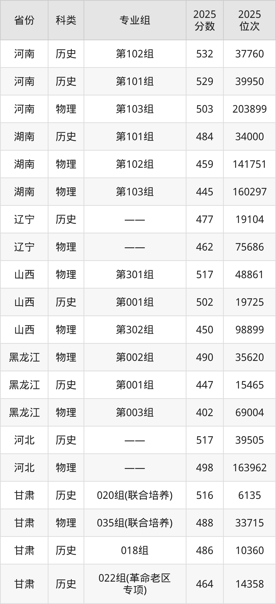 除上述省份外,河西学院2025各省录取最低分详情见下: