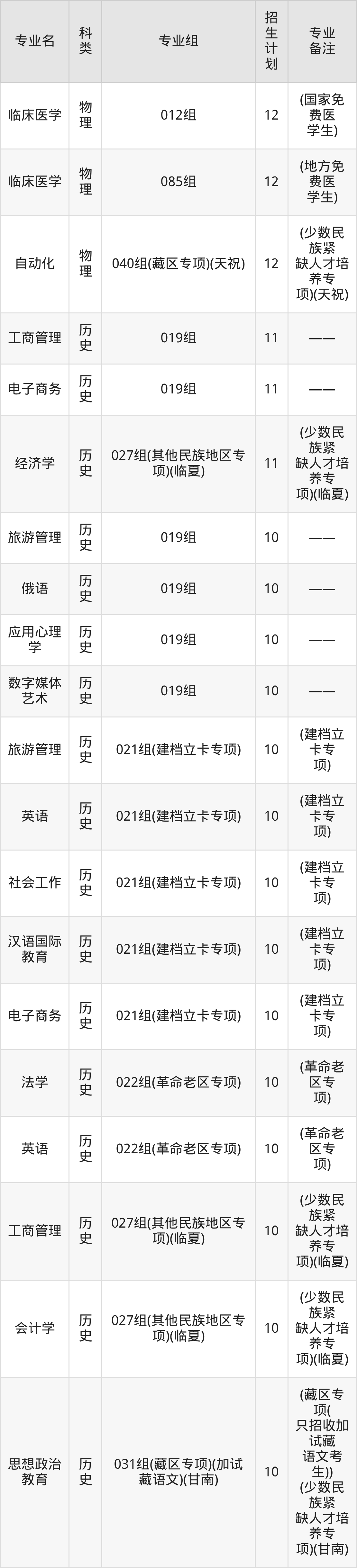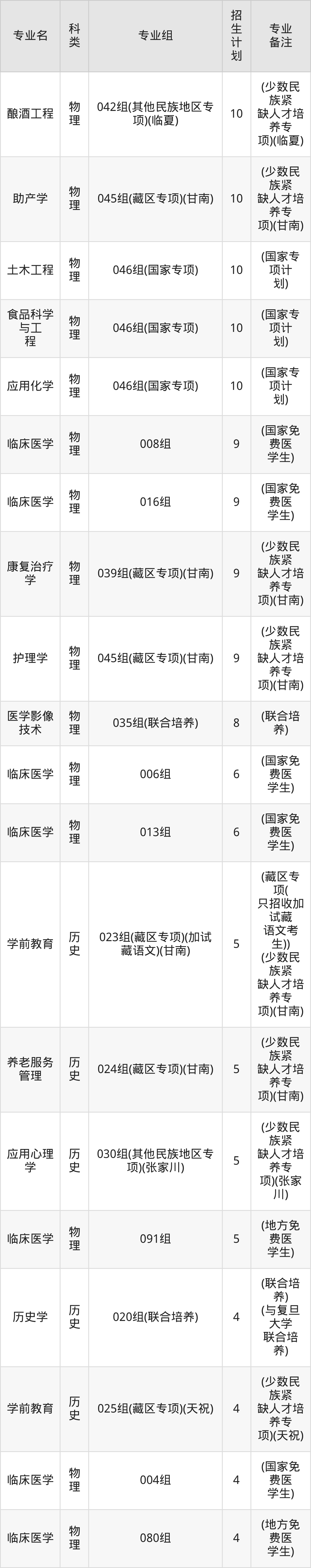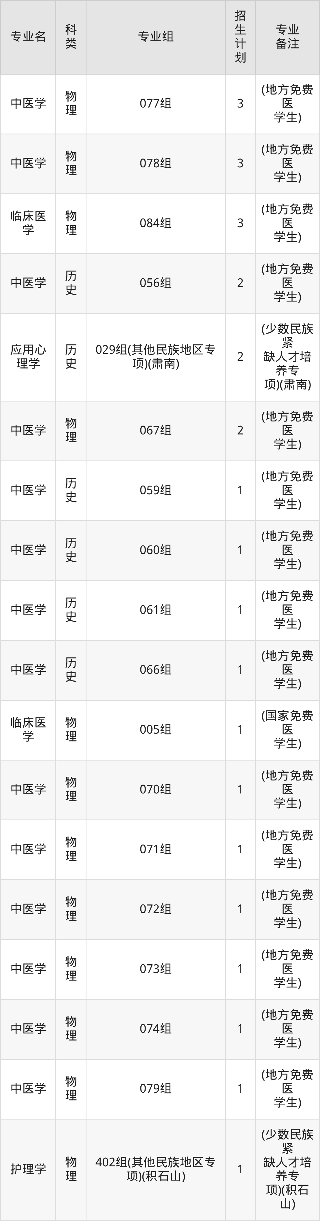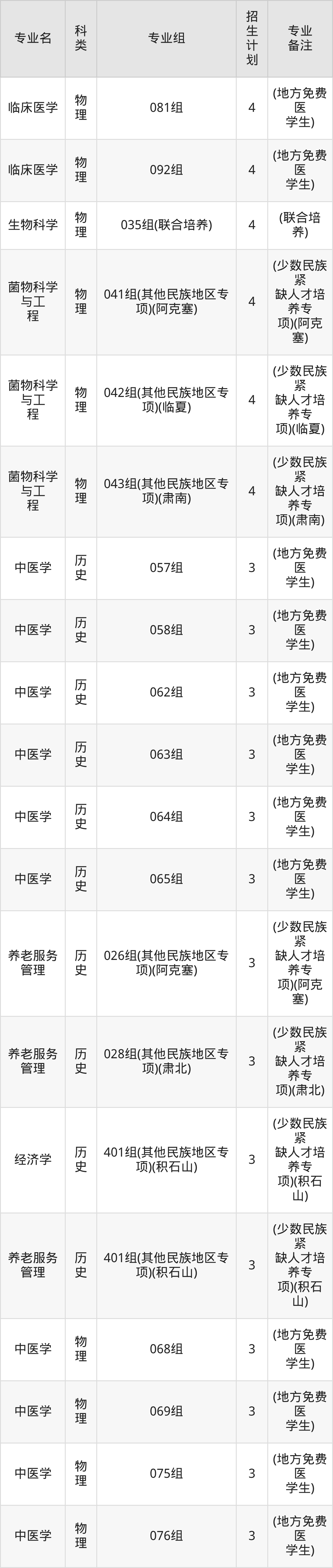 值得注意的是,河西学院在本科批、本科提前批、专科提前批、专科批招生,招生类型为物理类、历史类。篇幅有限,这里仅附上河西学院在甘肃省内招生计划详情: