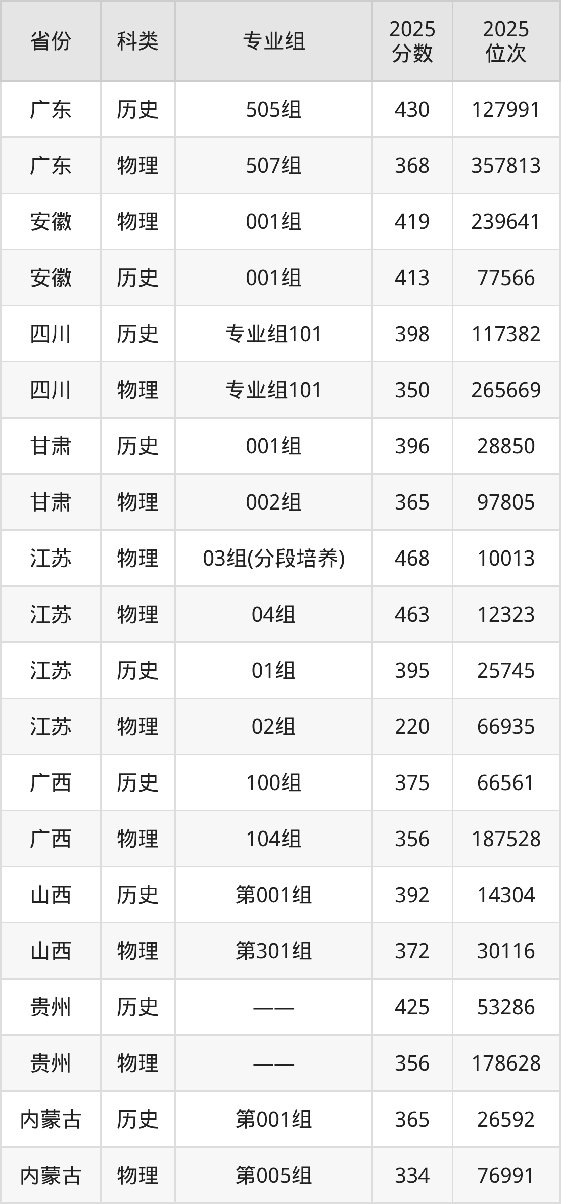 除上述省份外,泰州职业技术学院2025各省录取最低分详情见下: