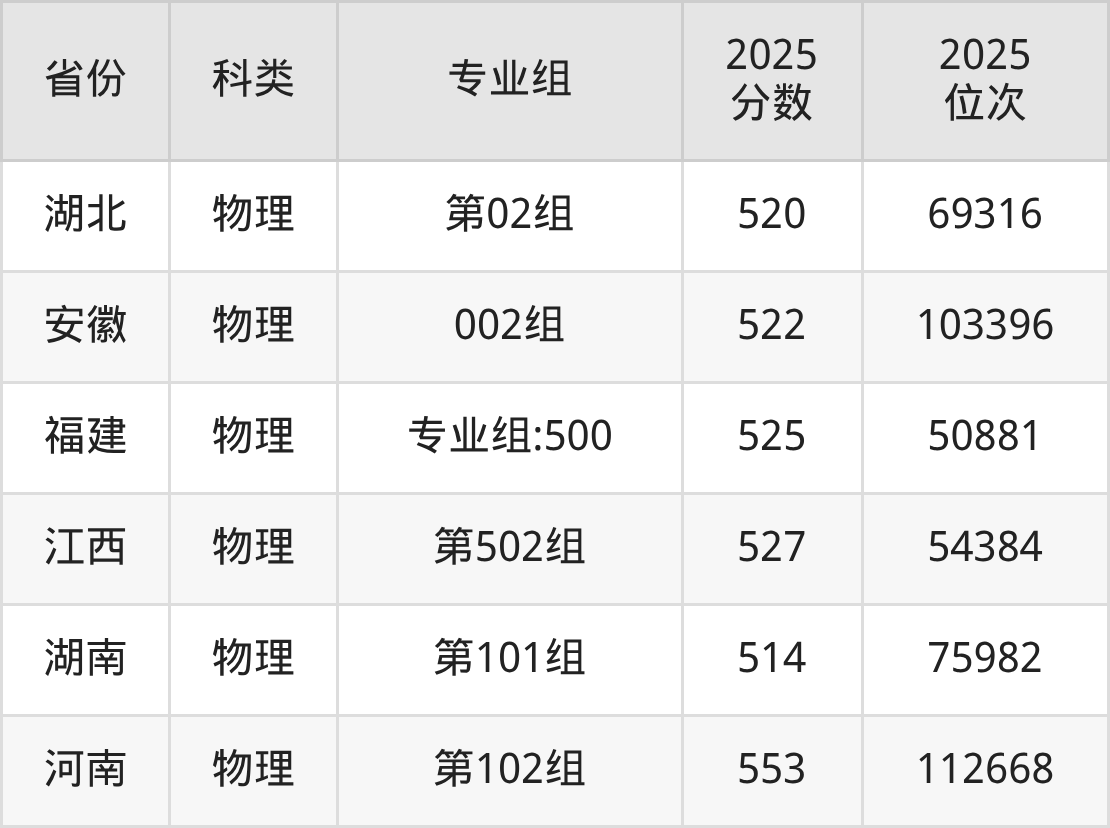 5、湖南:最低分514分,对应最低分专业组为物理类第101组,位次75982名;