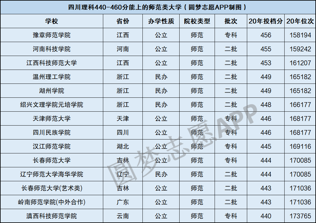 由于各个省市的录取分数有所不同,小编就以四川省为例,根据2020年四川省教育考试院公布的具体招录数据,为大家整理出了450分可以考的师范大学,具体如下: