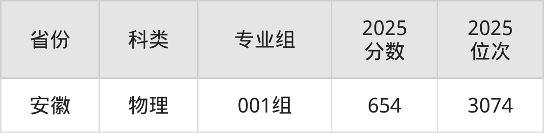 2025年上海科技大学在安徽省录取最低分为654分,对应最低分专业组为001组,位次在3074名及以内的物理类考生有机会被录取。而结合批次线来看,考生至少要超本科线193分才达院校收分门槛。