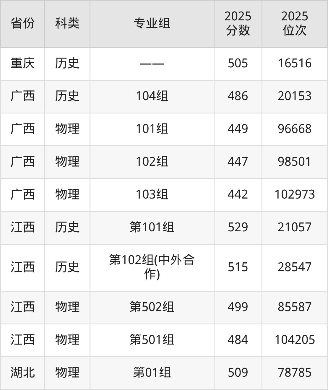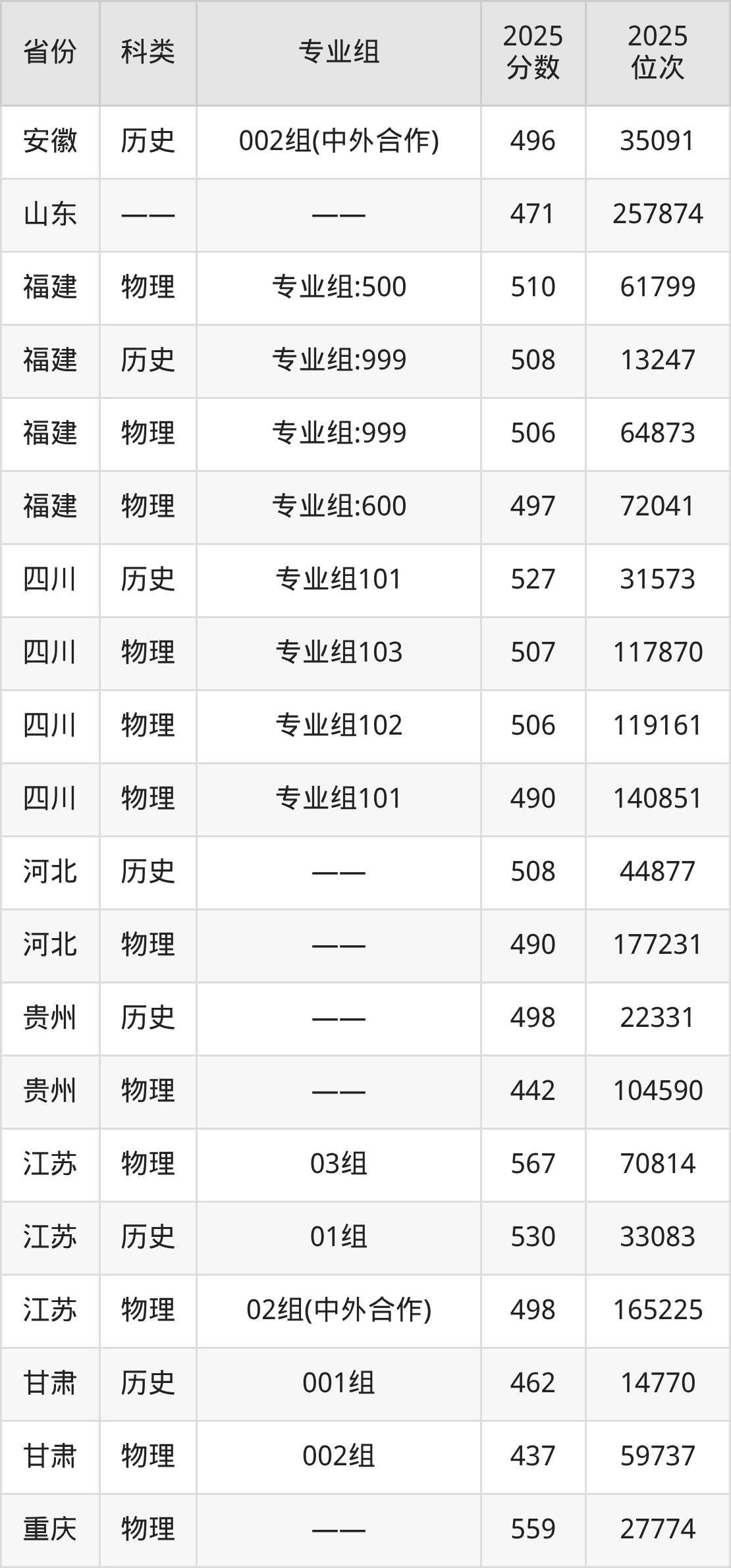 除上述省份外,莆田学院2025各省录取最低分详情见下: