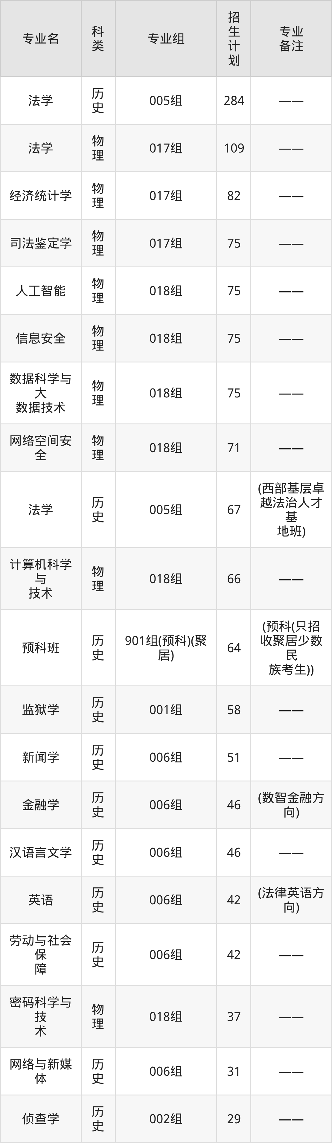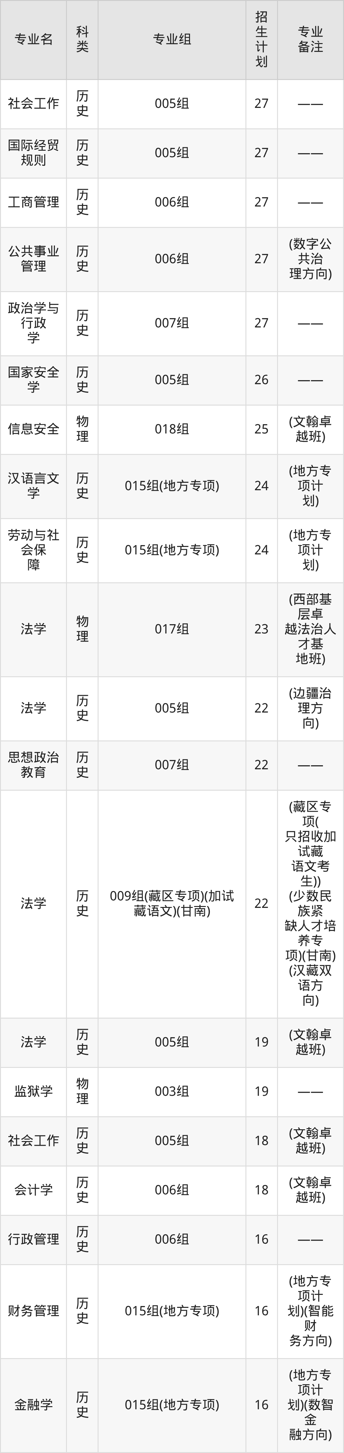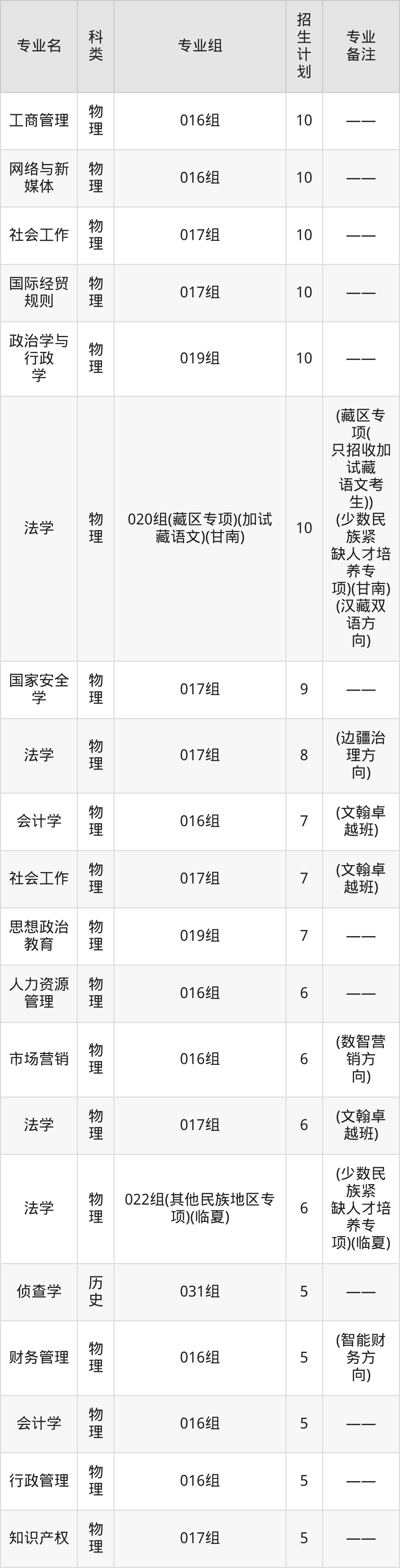 甘肃政法大学2025全国各省招生计划详情见下: