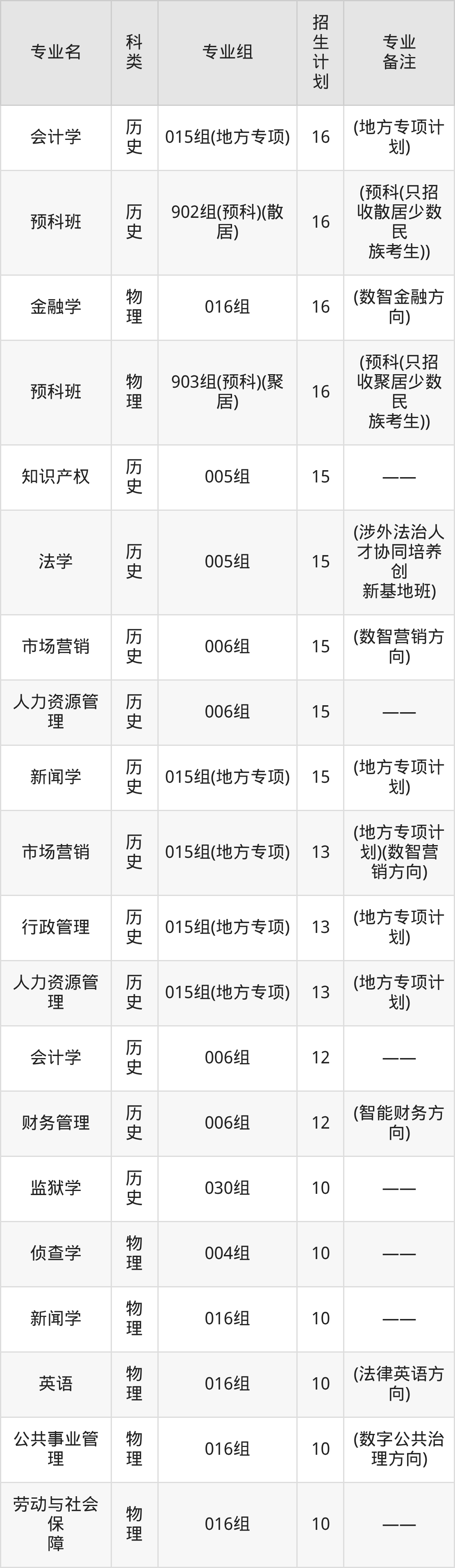第三名:河南(89人),招生人数最多的专业是法学(18人、历史类)。